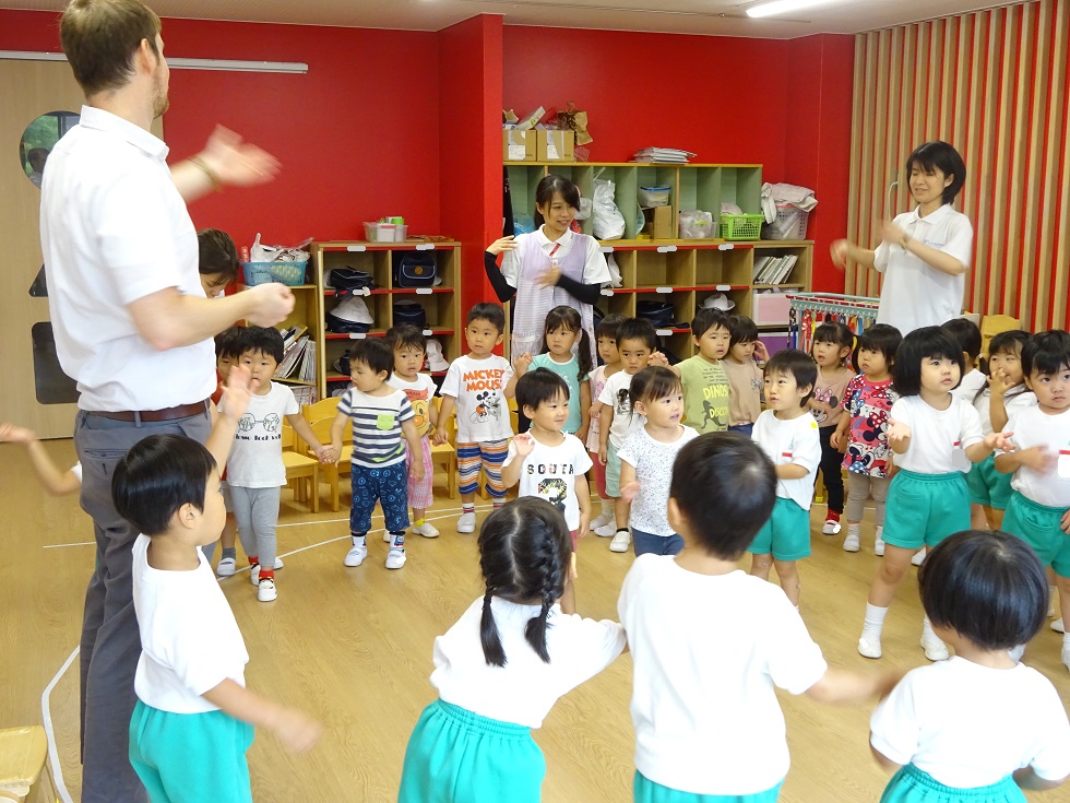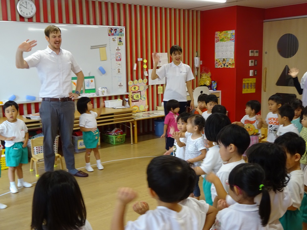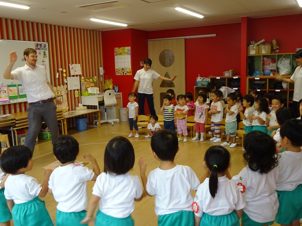 幼稚園の玄関で会ったのは英語教育の先生でした。