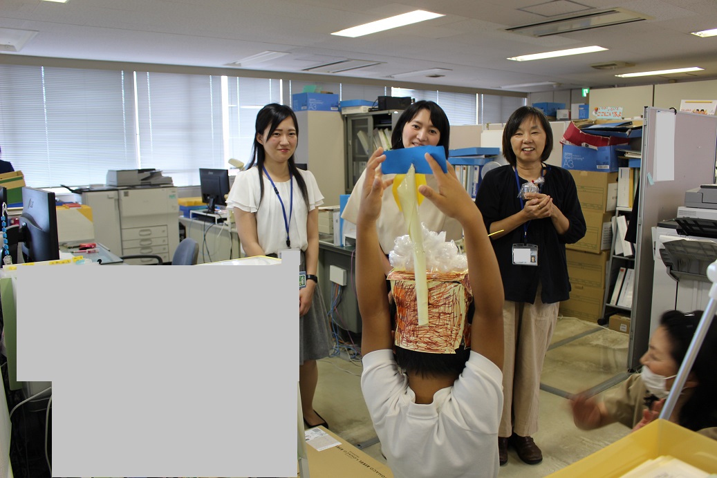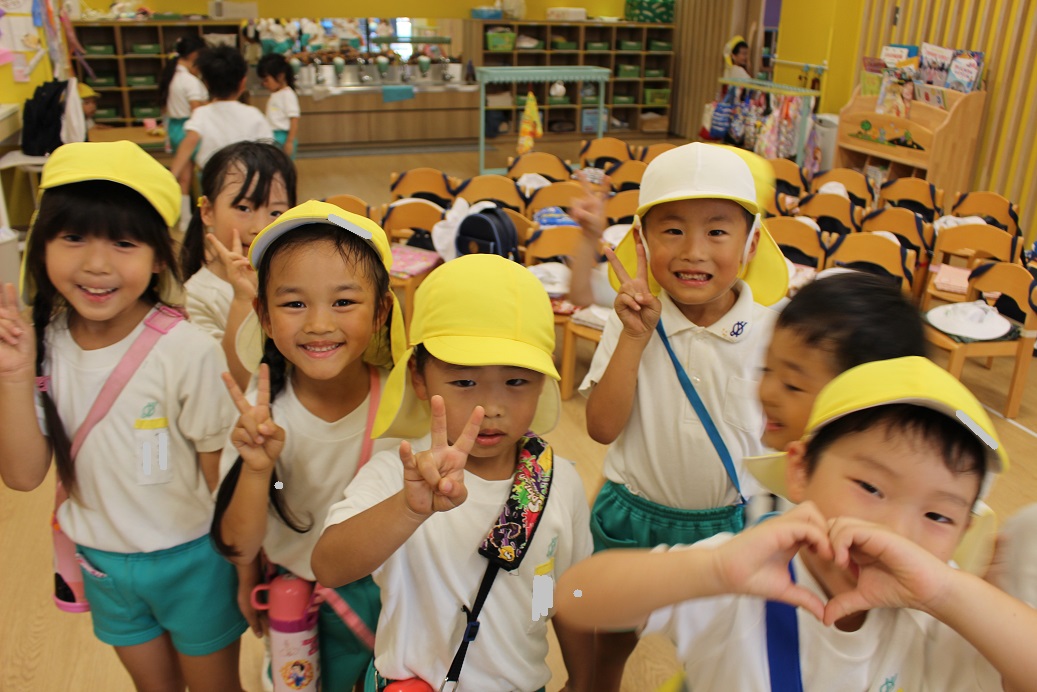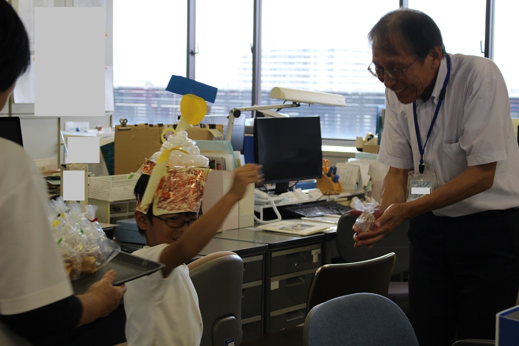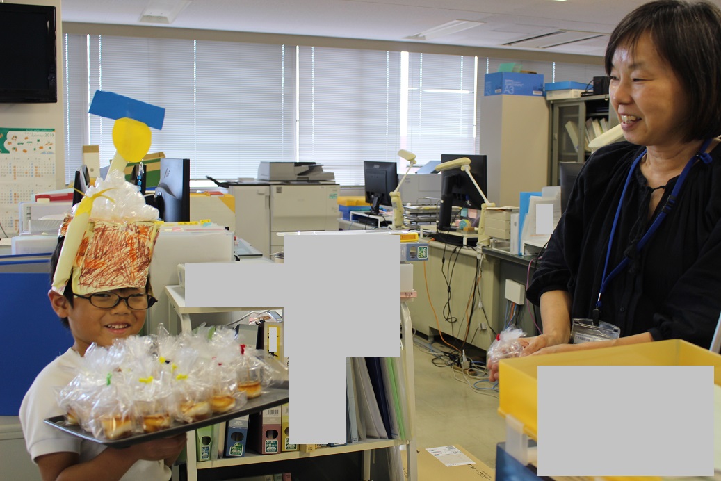 ひまわり組の子どもたちが満面の笑みで職員室に