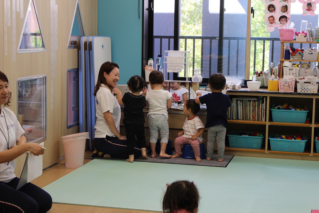 3号の子どもたちも泣かず、騒がず、先生の声かけをよく聞いて