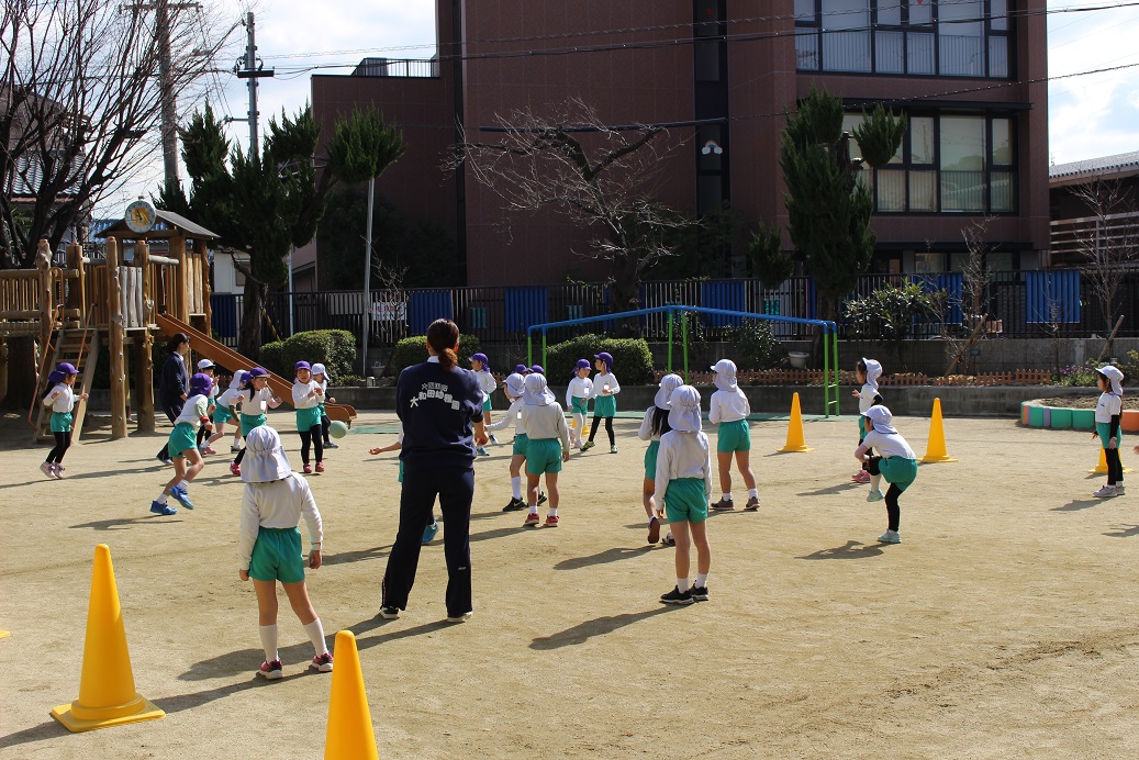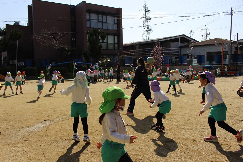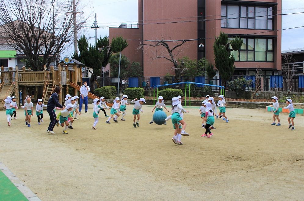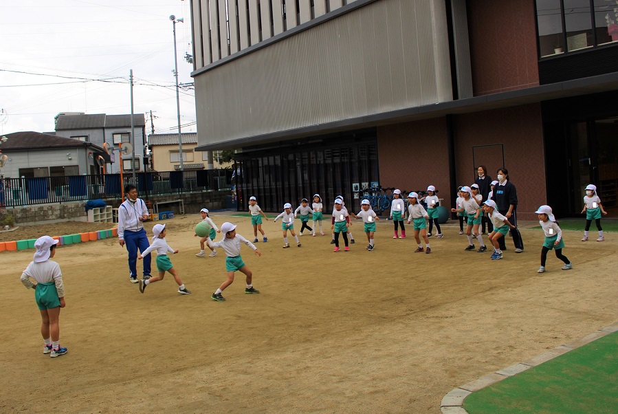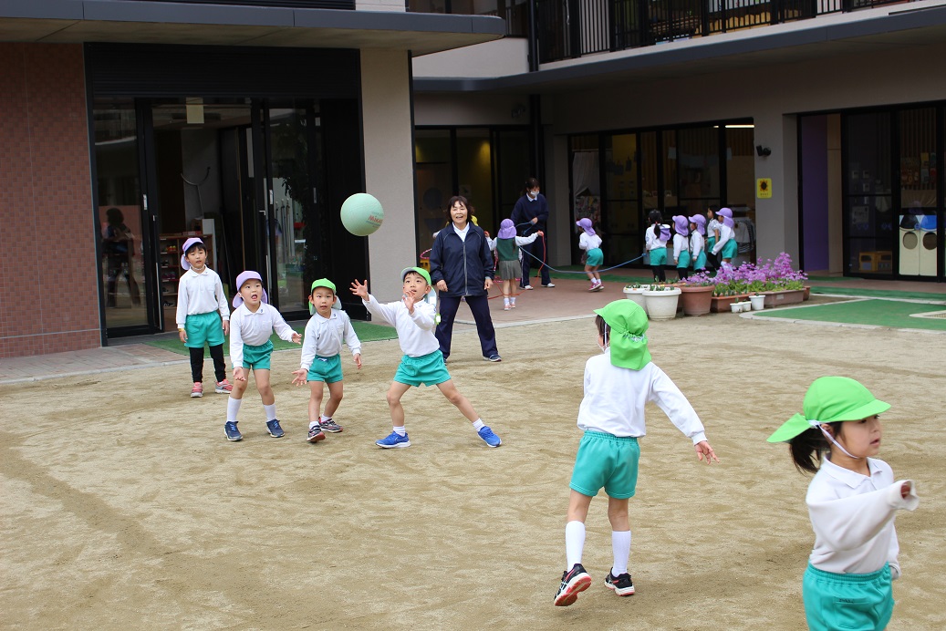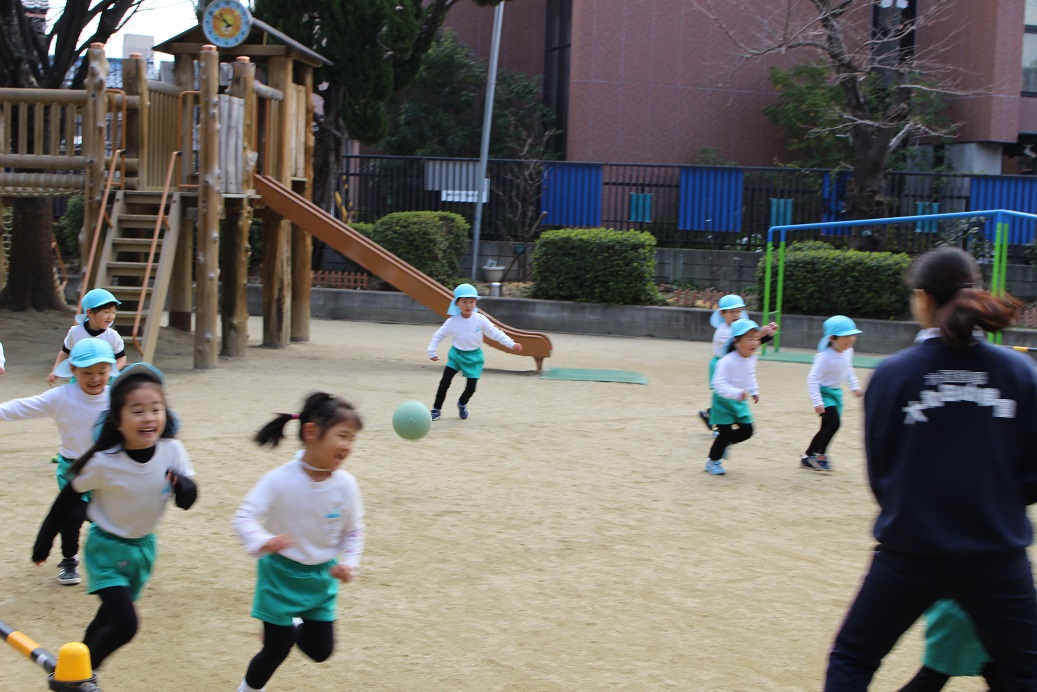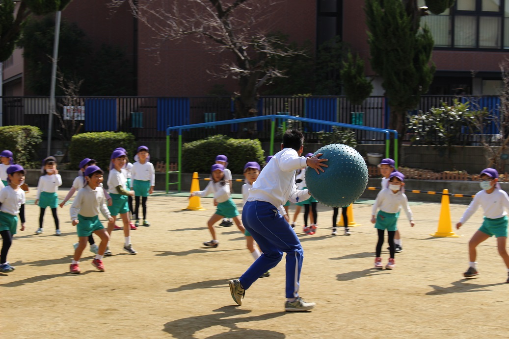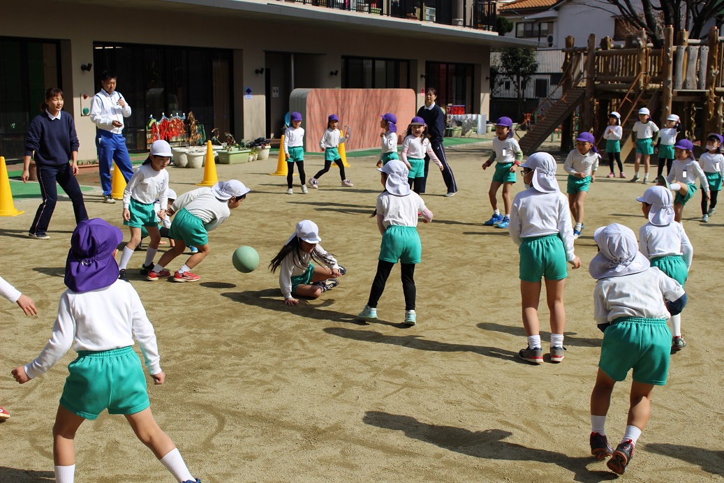 子どもたちと一緒に担任もドッジボールを楽しんでいました♪