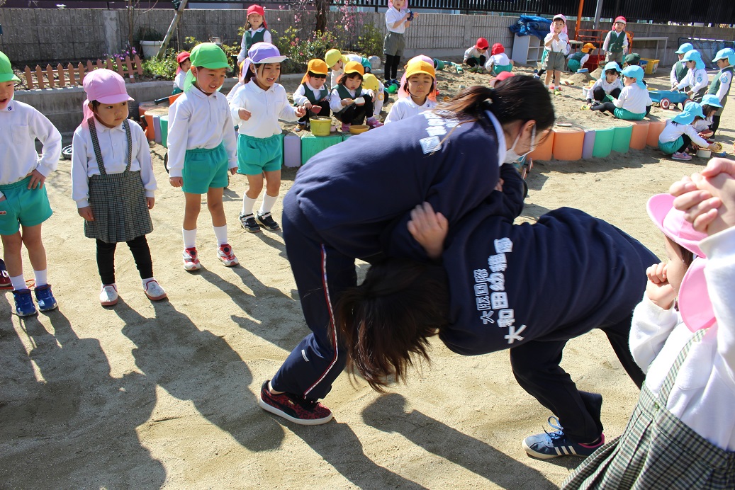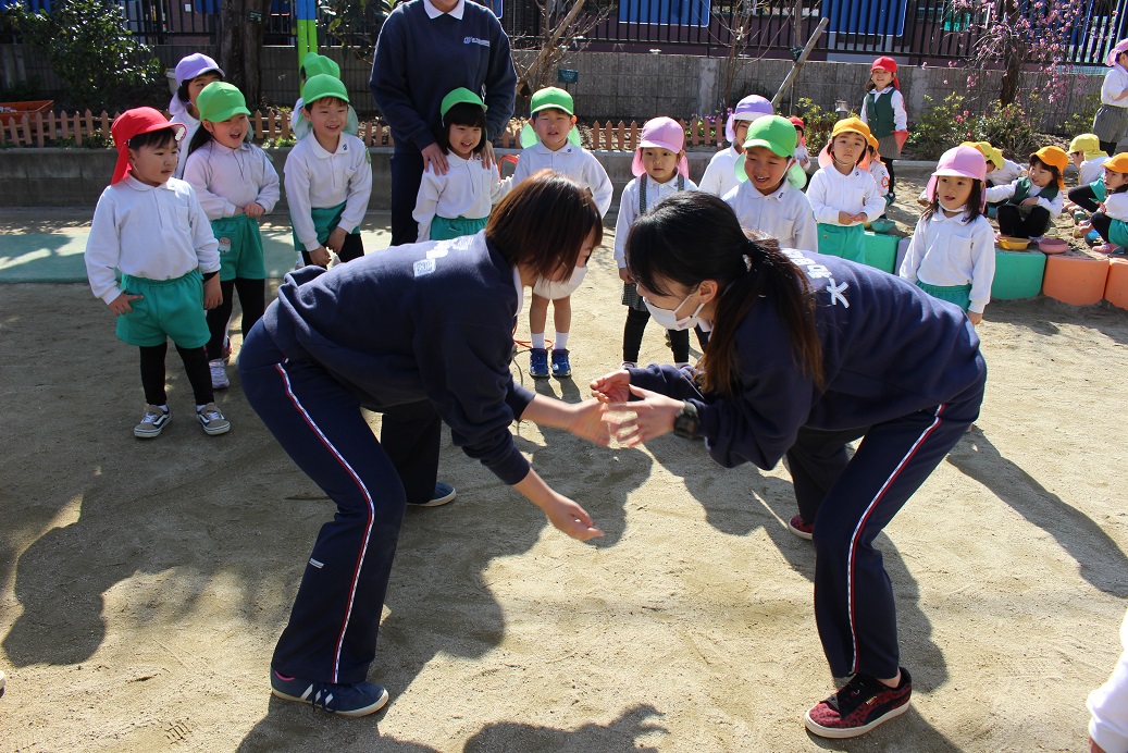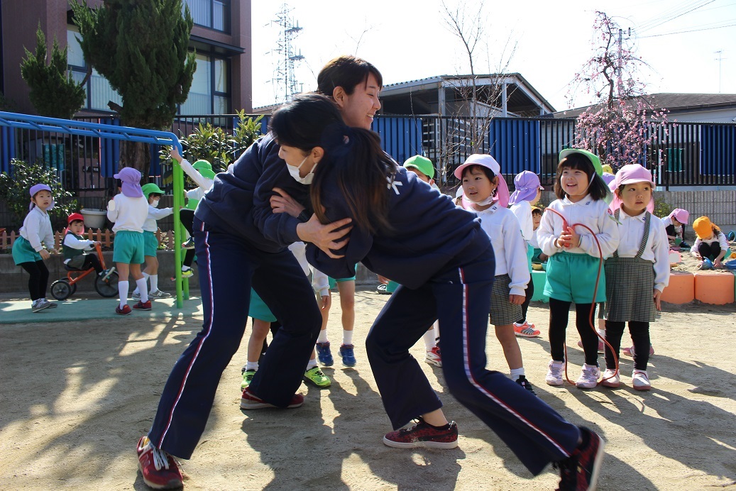 挑戦したのはたんぽぽ組担任とさくら組担任の先生!