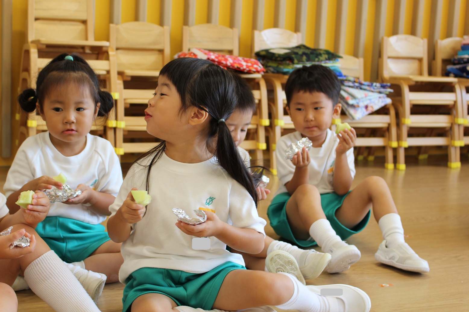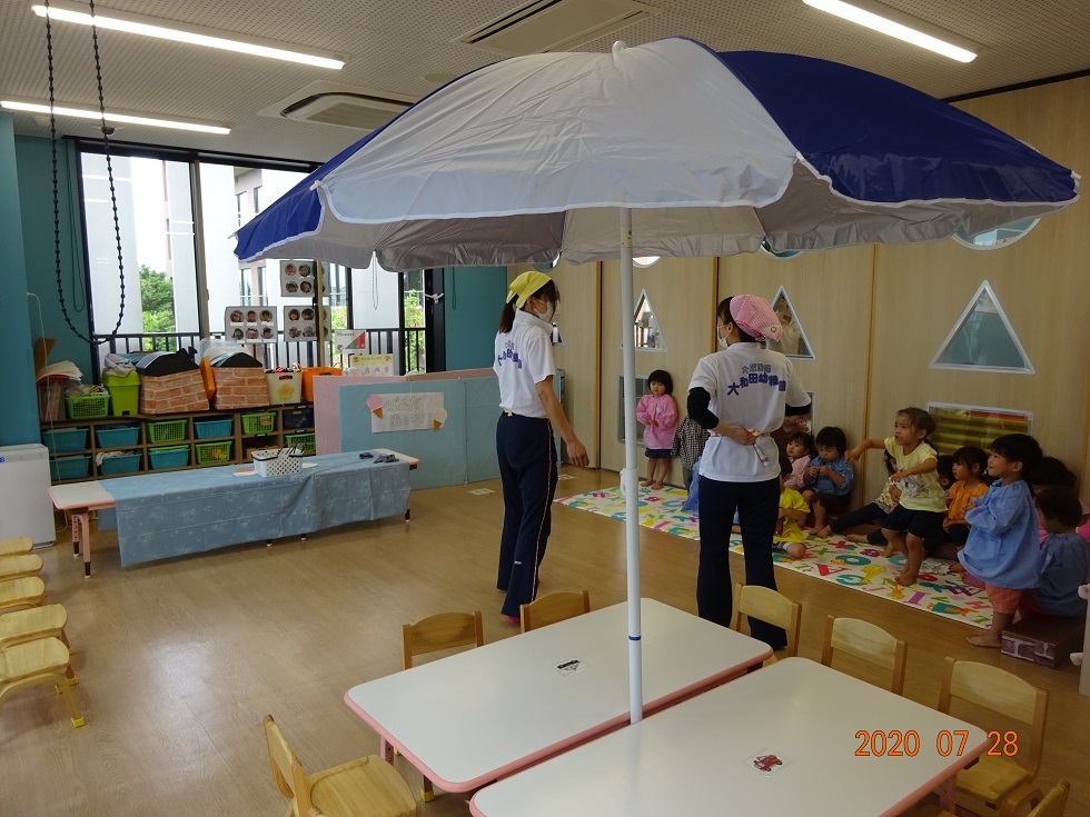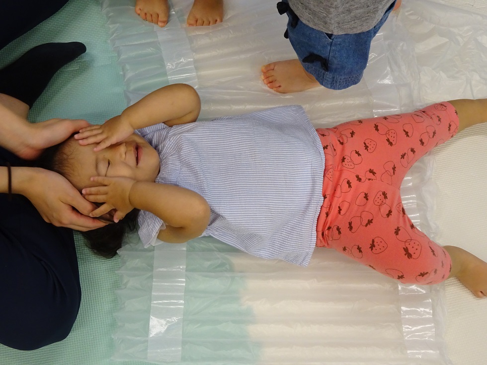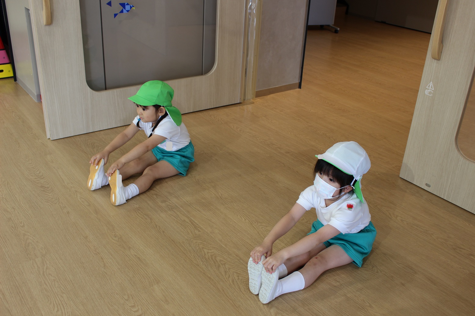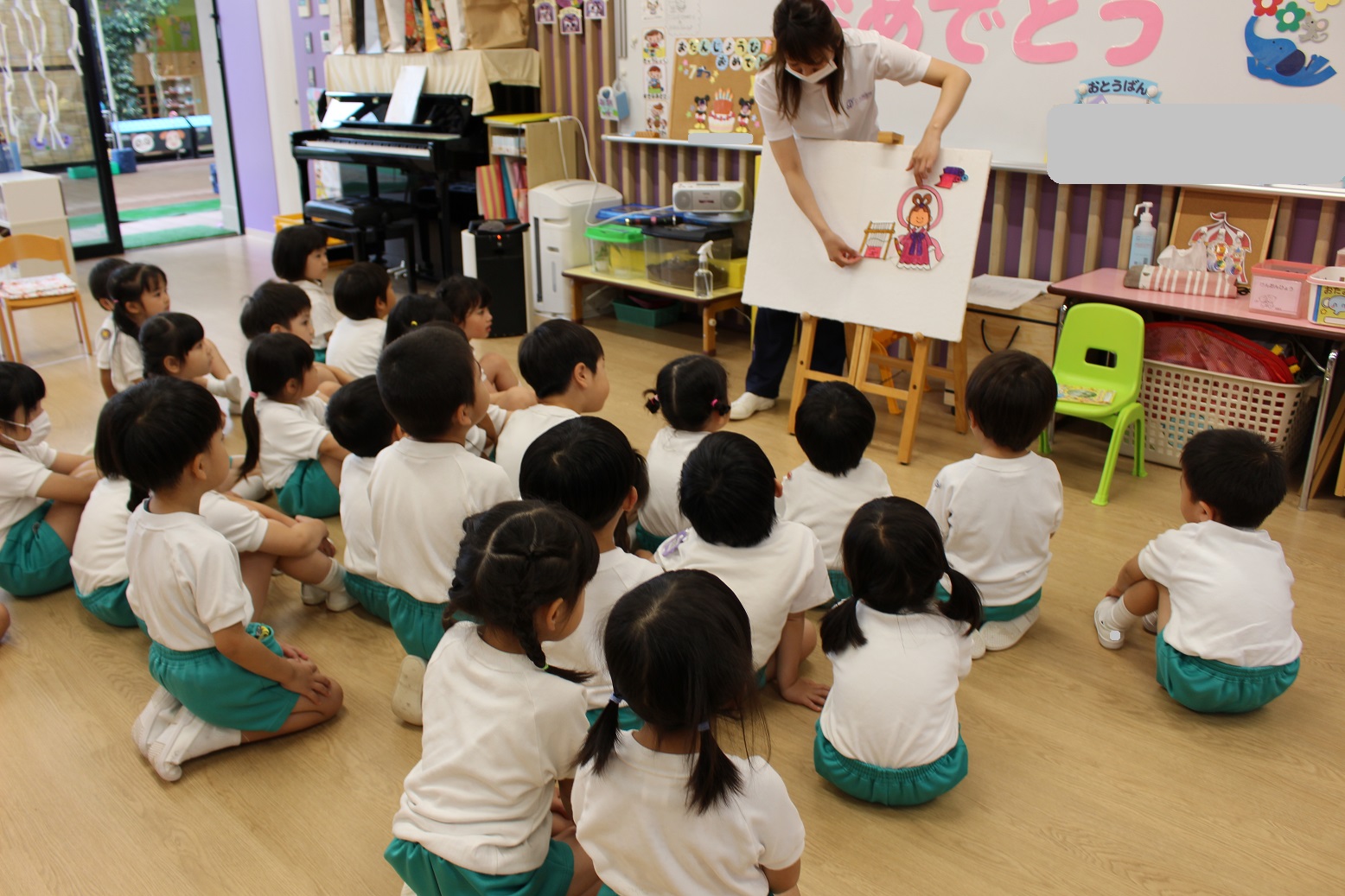 頭を隠したり、地震についての絵本を読んだりして、避難についての大切さを学んでいます。