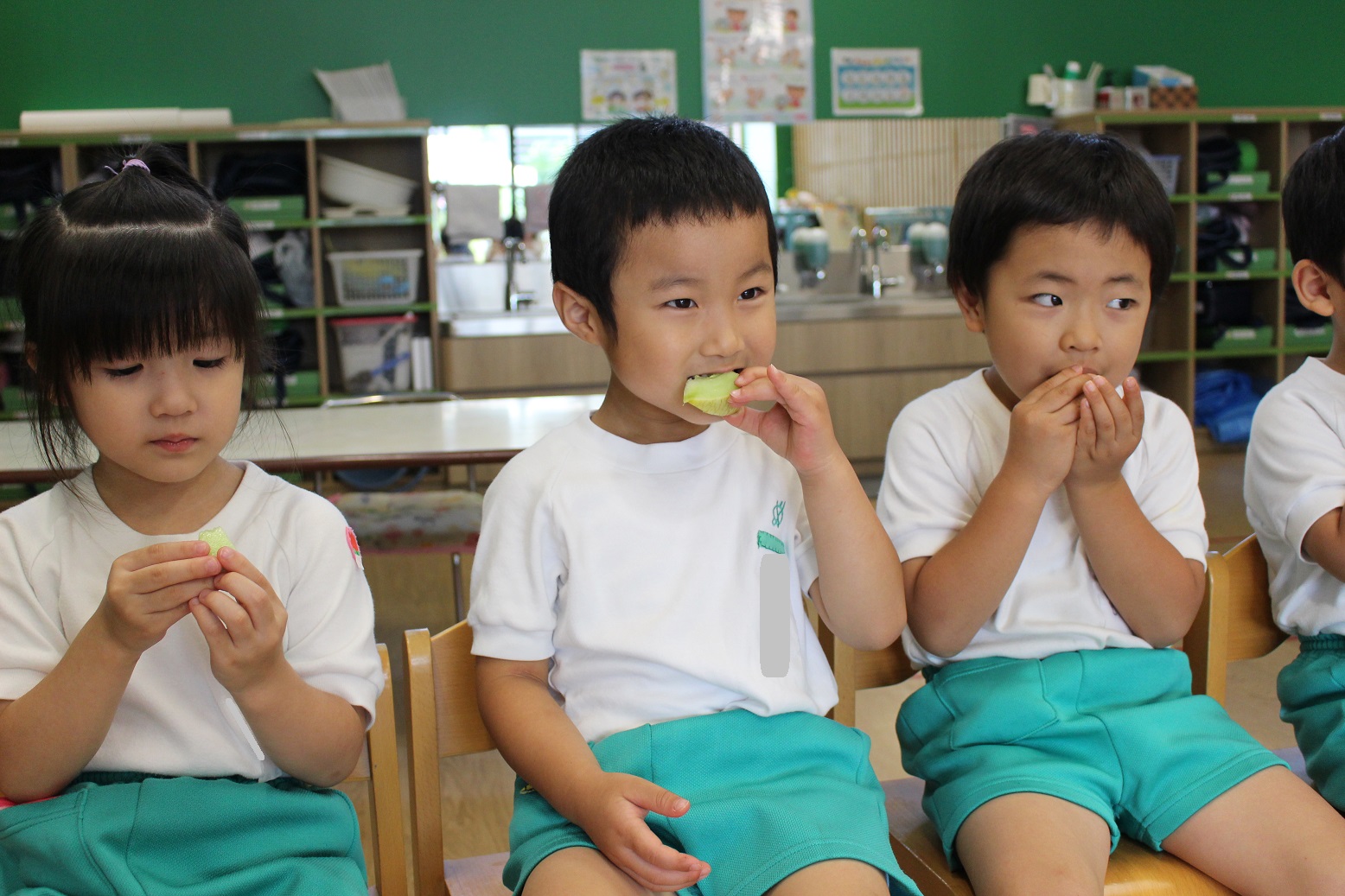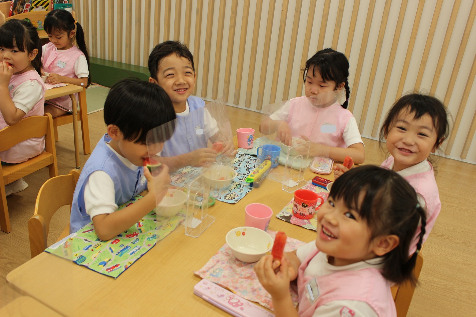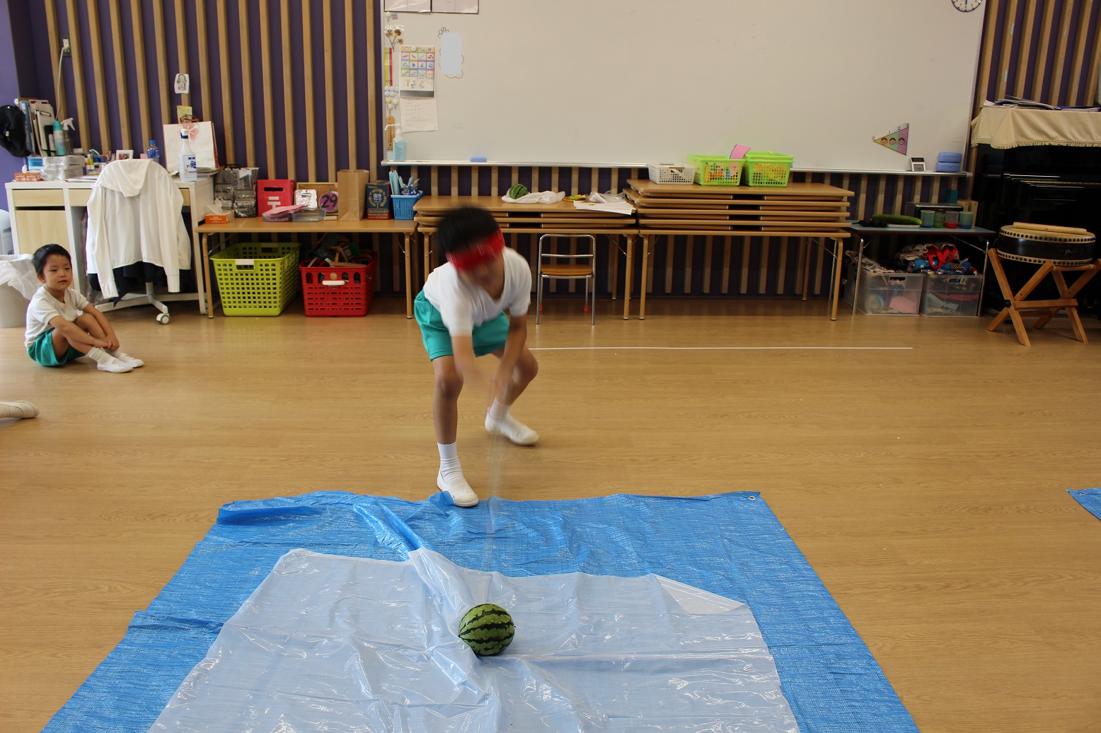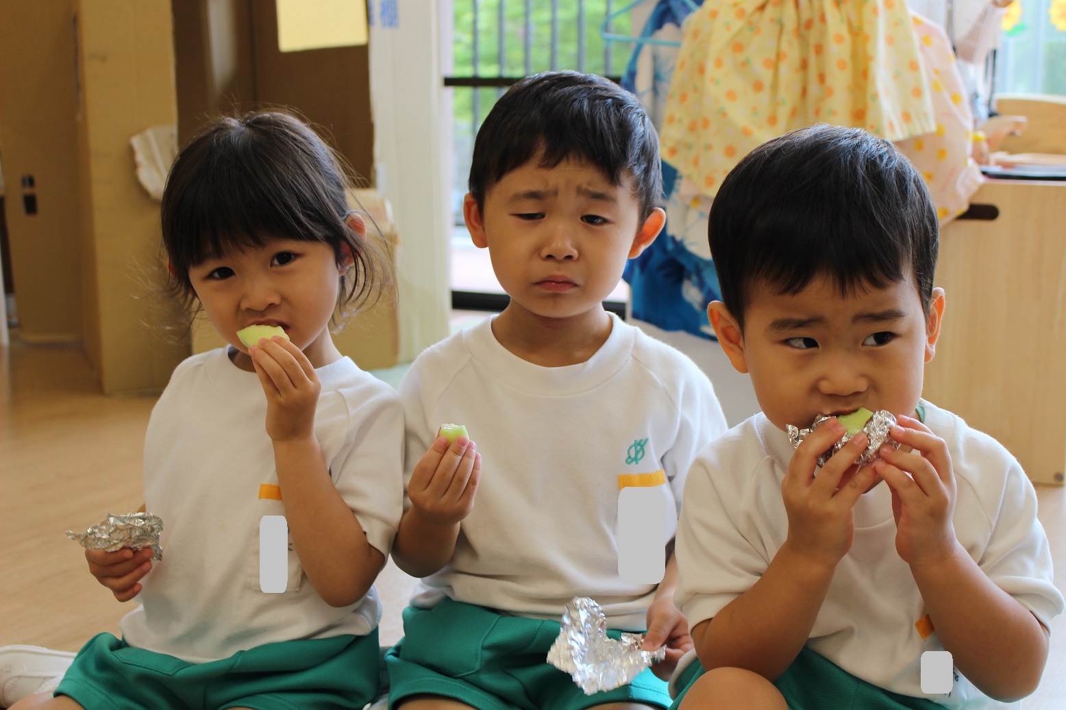 頭を隠したり、地震についての絵本を読んだりして、避難についての大切さを学んでいます。