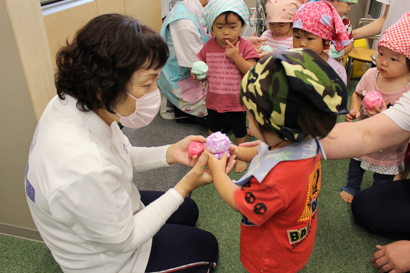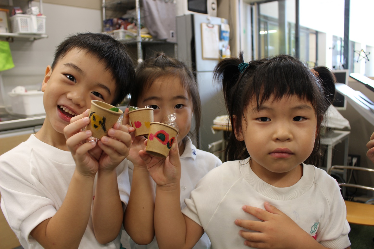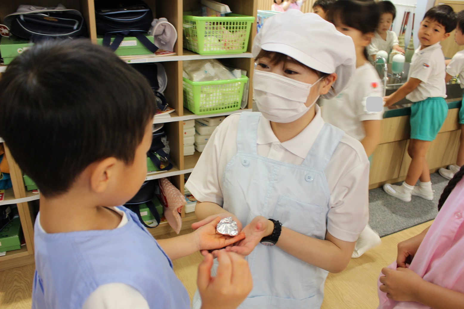 嬉しすぎて、手のひらにタマゴを乗せてゆり組さんへ・・・