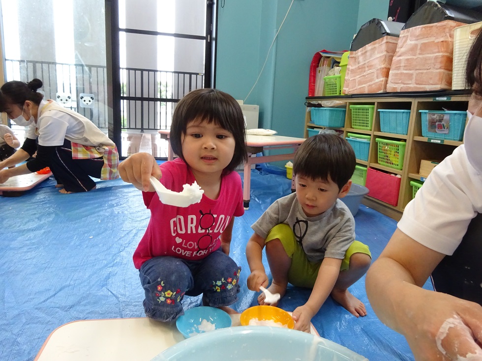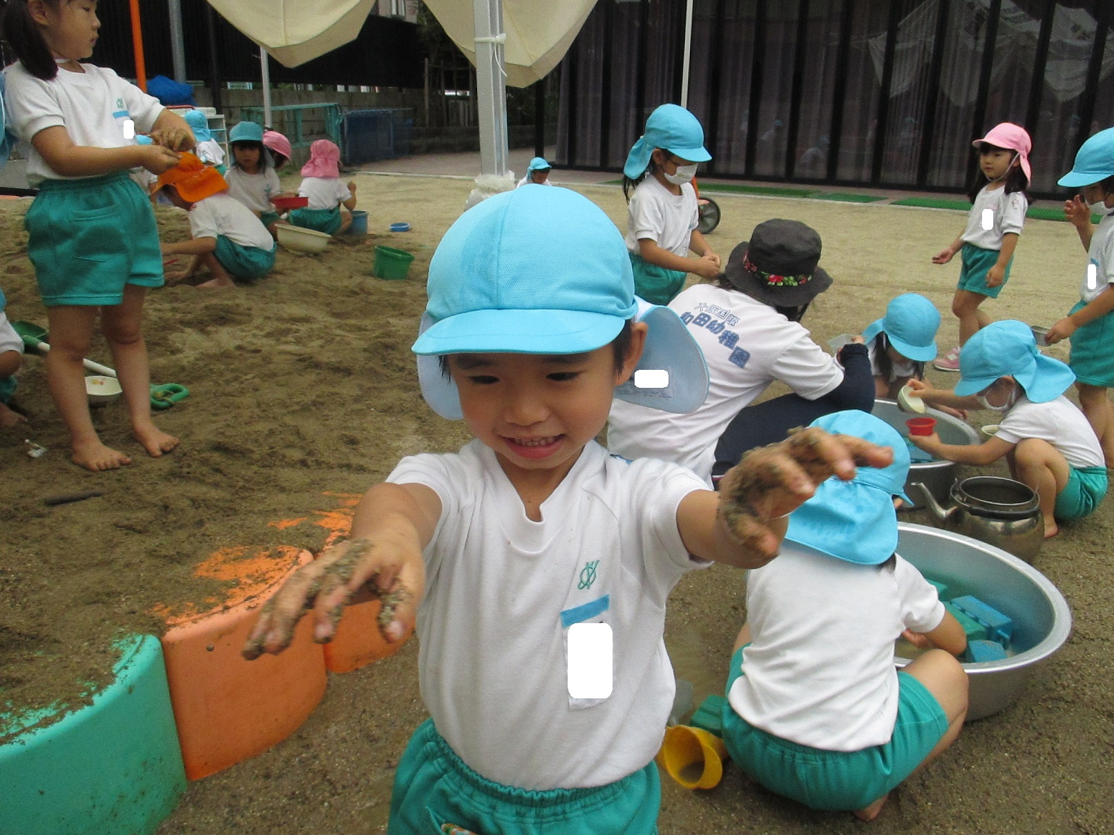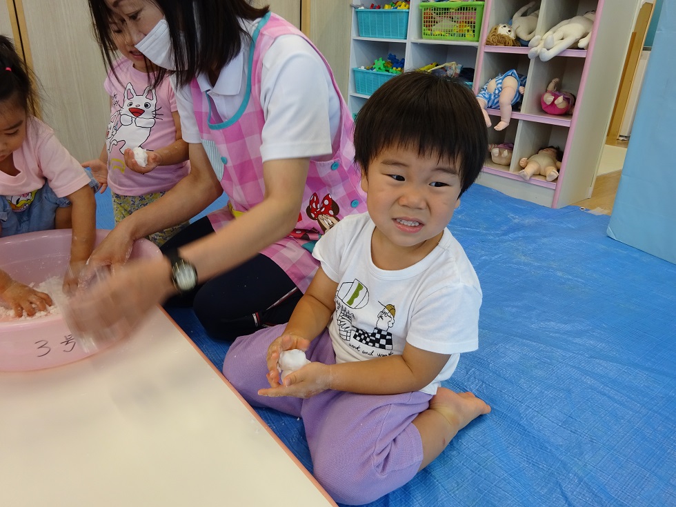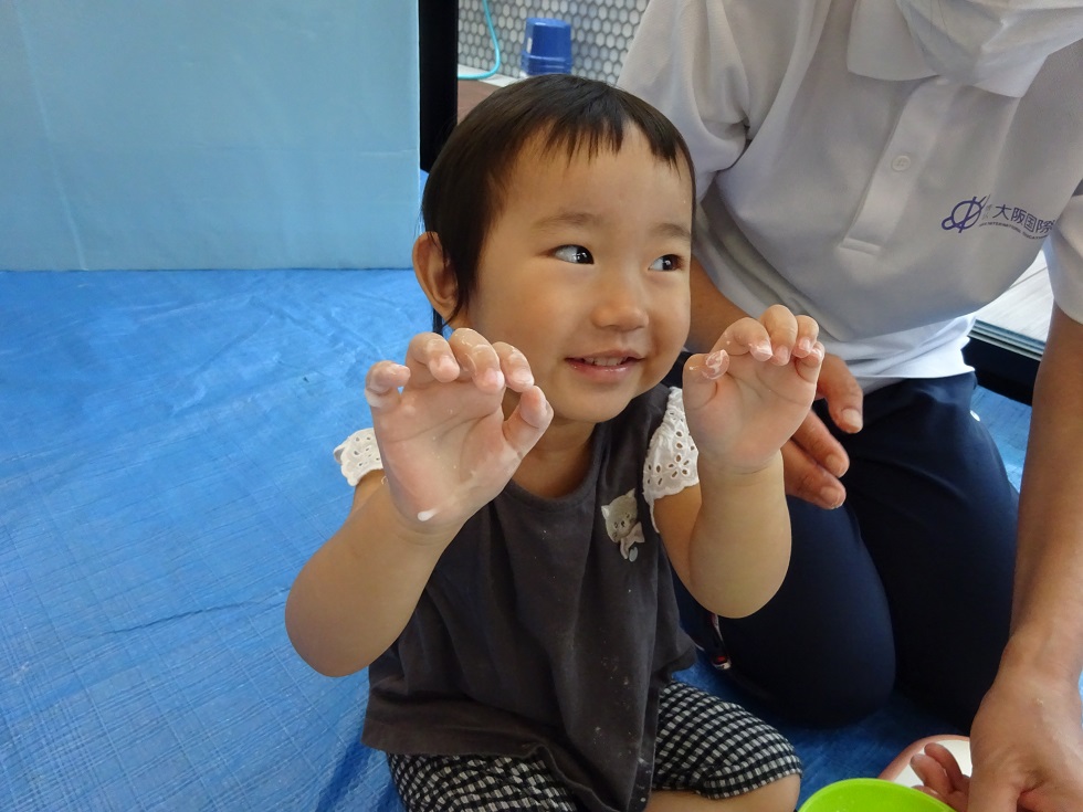 顔にも付くので、嬉しそうに見せてくれました!(ちょっと照れています♪)