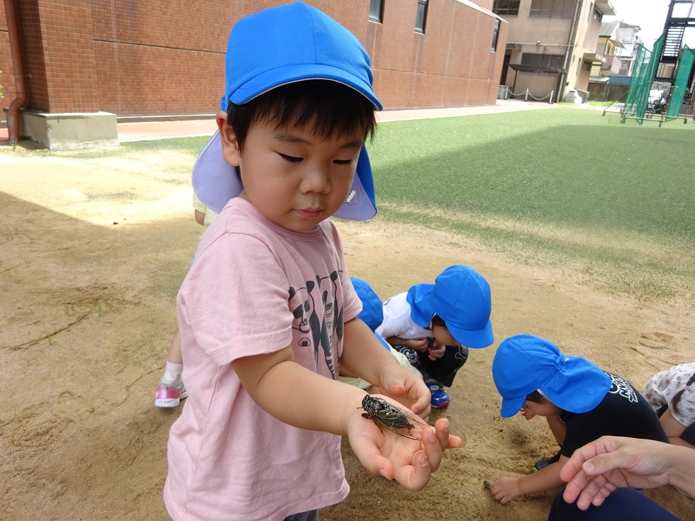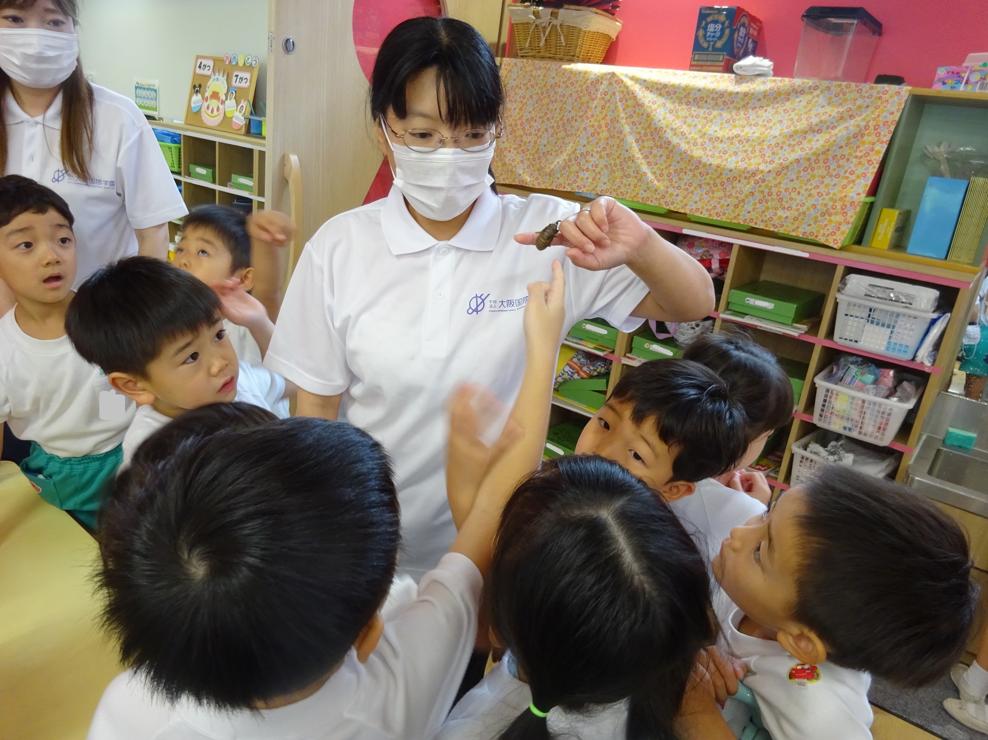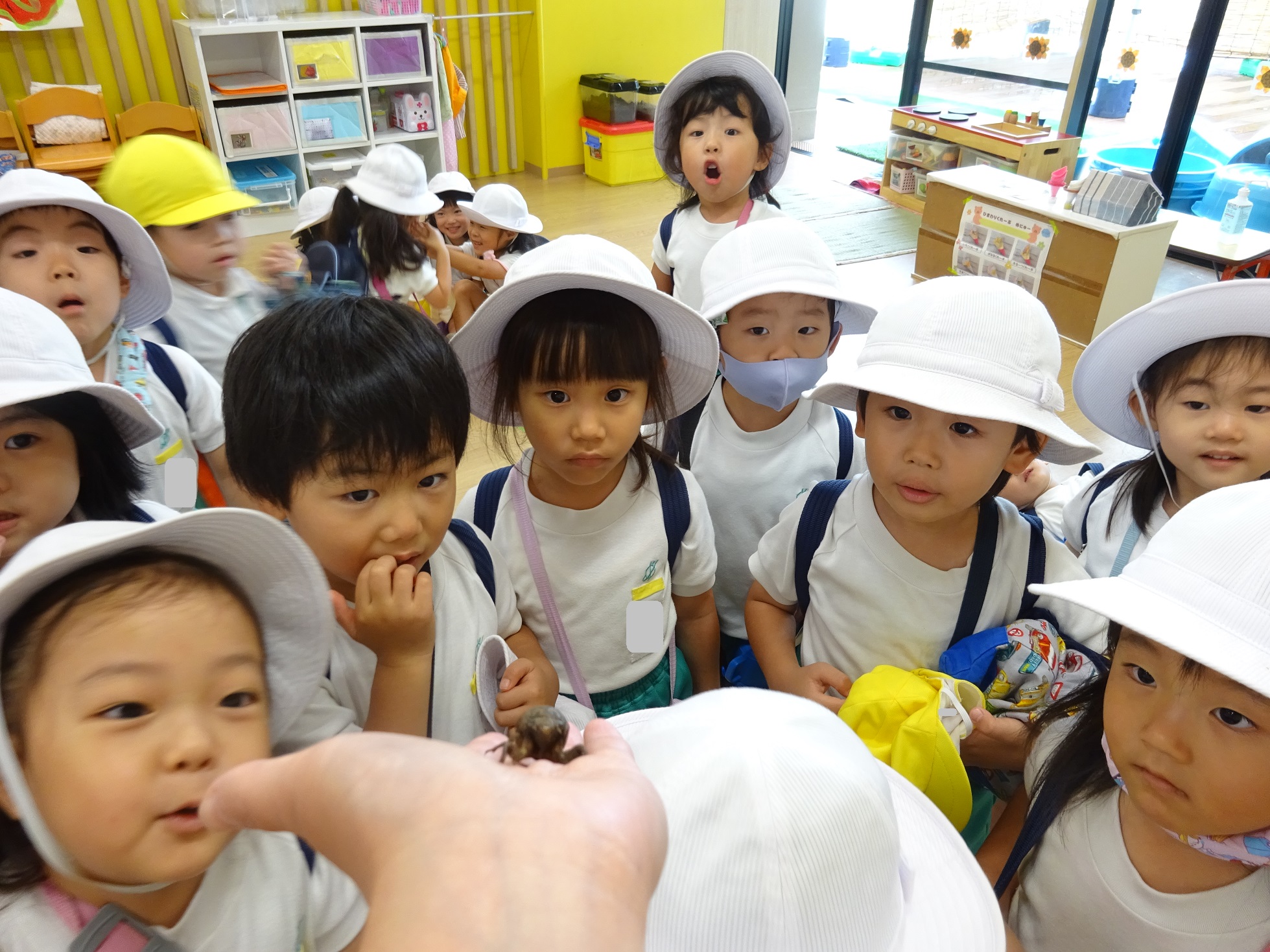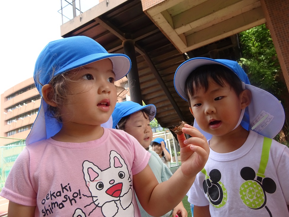 「え!?動いてる!」と、ビックリした子どもたち!成虫になる前の貴重なときに出会えました♪