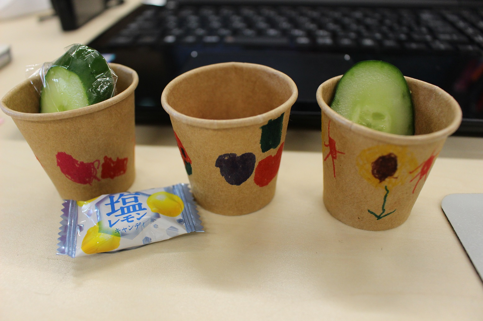 こうやって楽しんでいた横で、別の子どもがカブトムシの飼育ケースの中を見ていました。