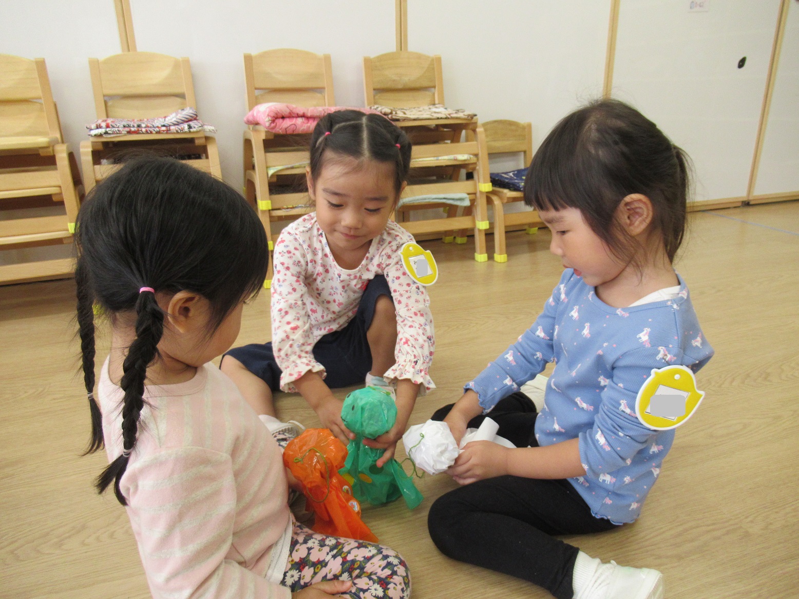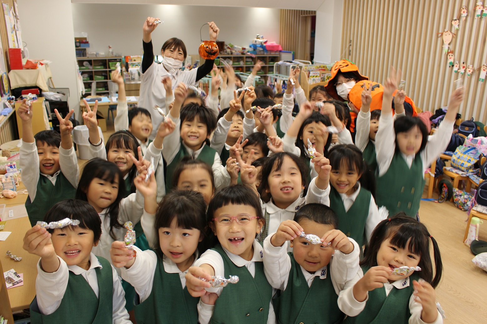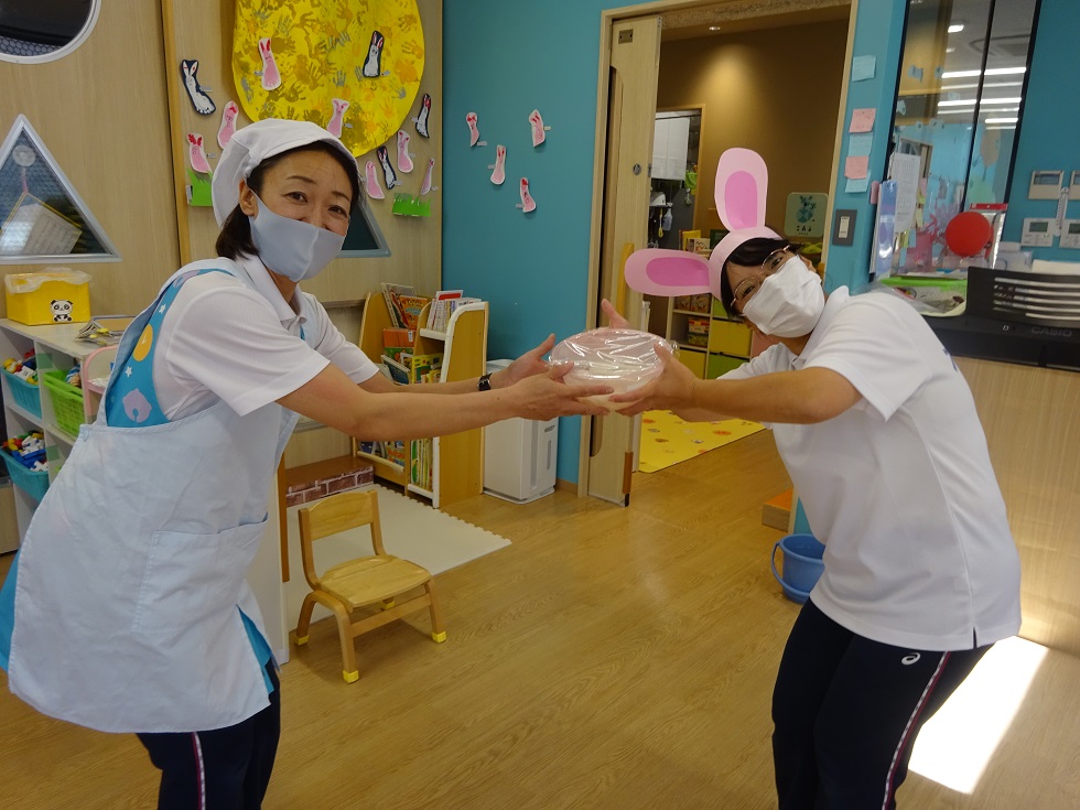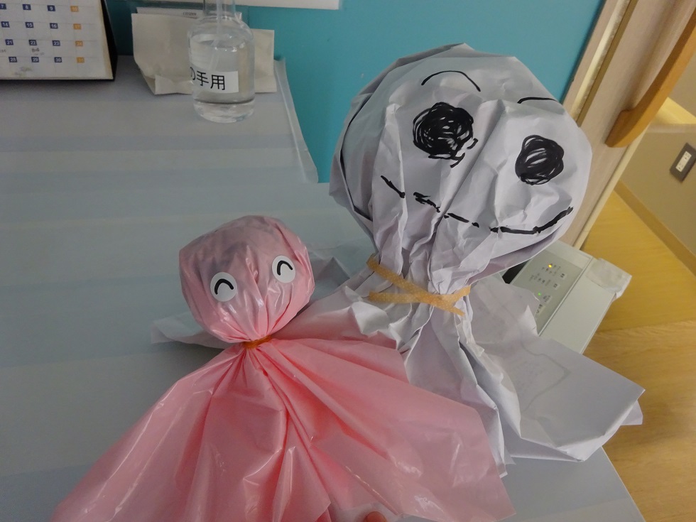 職員室で、かわいいアルミホイルに包んだすてきなおかし(?)を用意しました♪