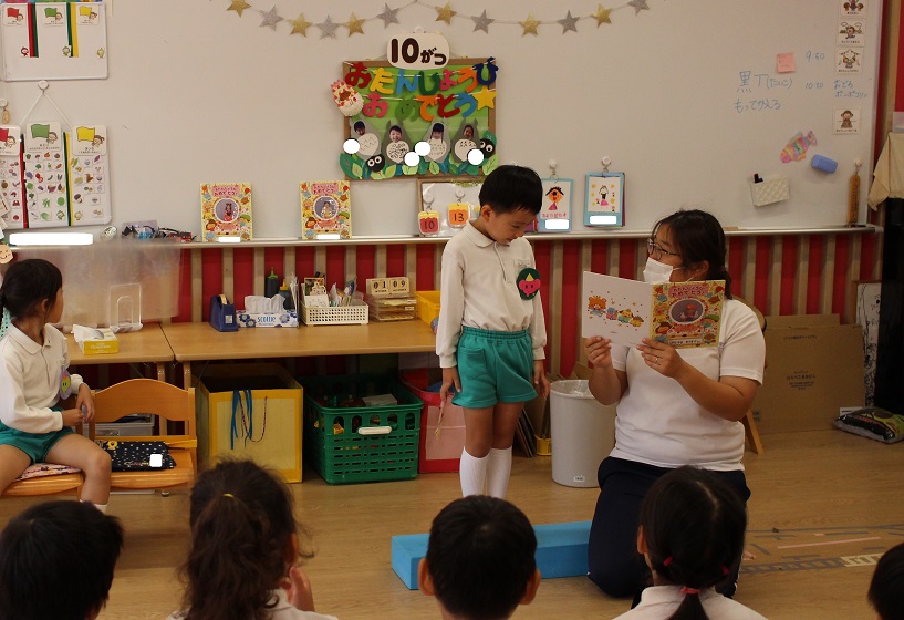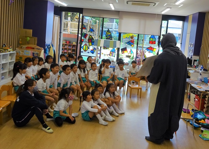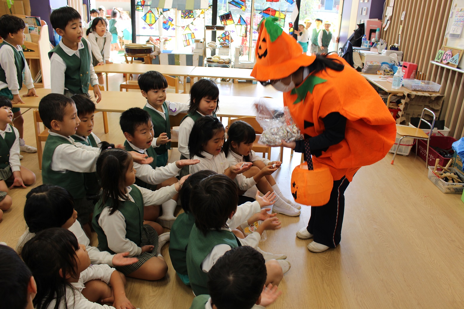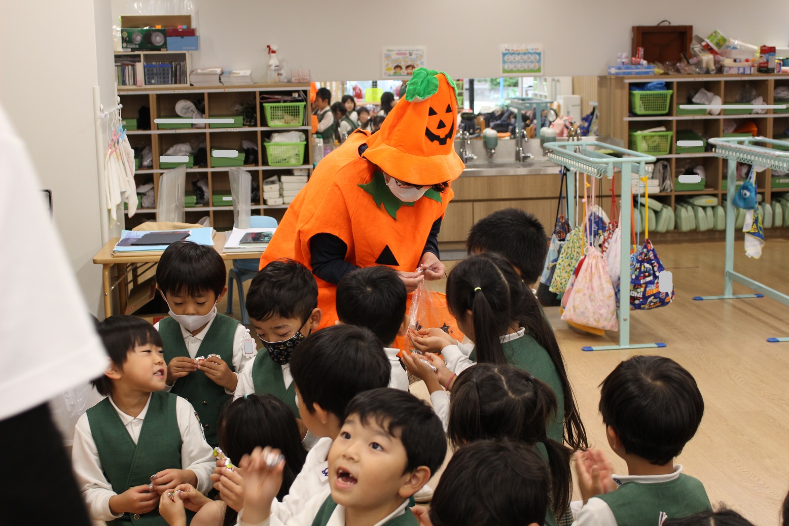 職員室で、かわいいアルミホイルに包んだすてきなおかし(?)を用意しました♪