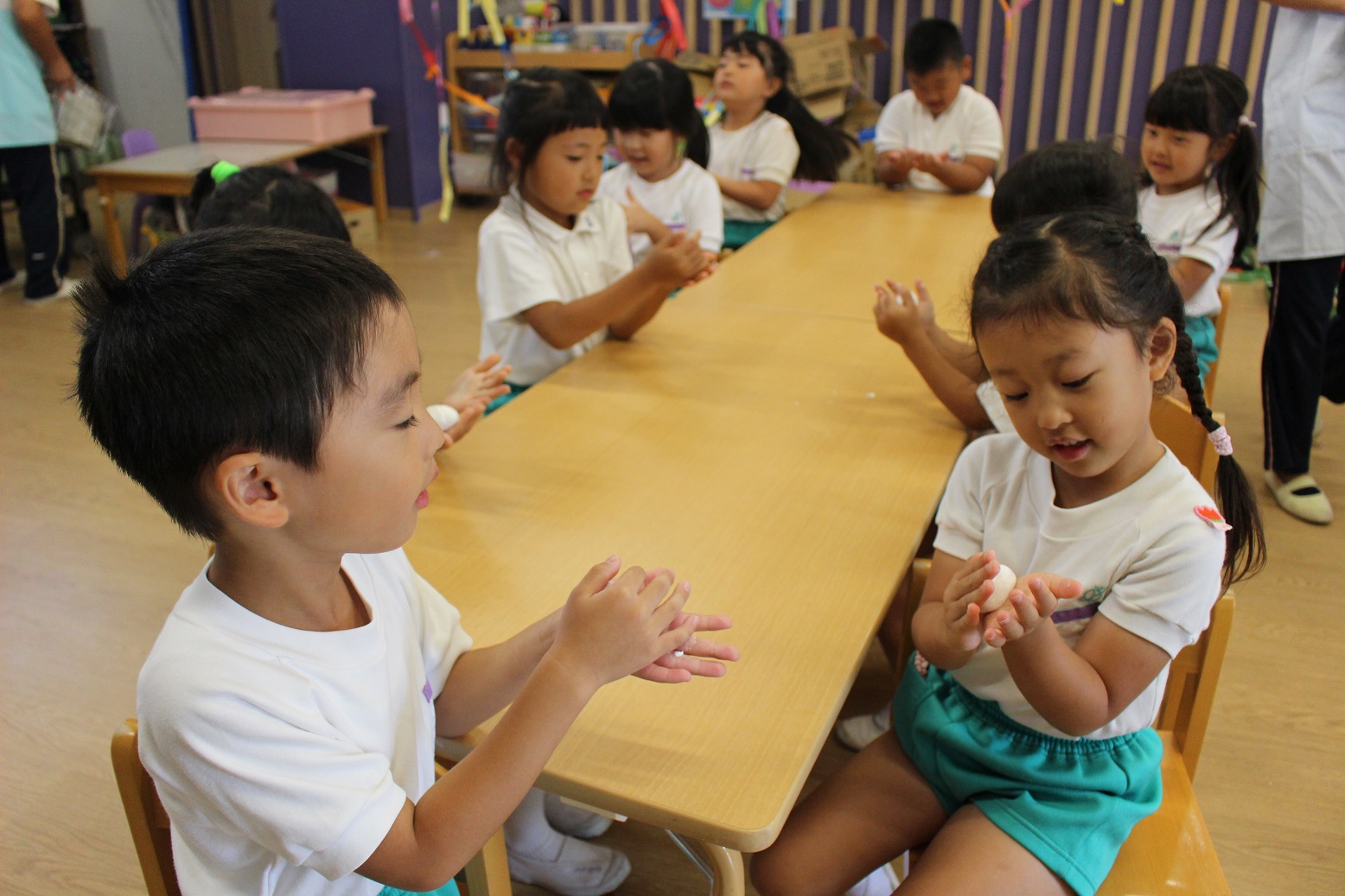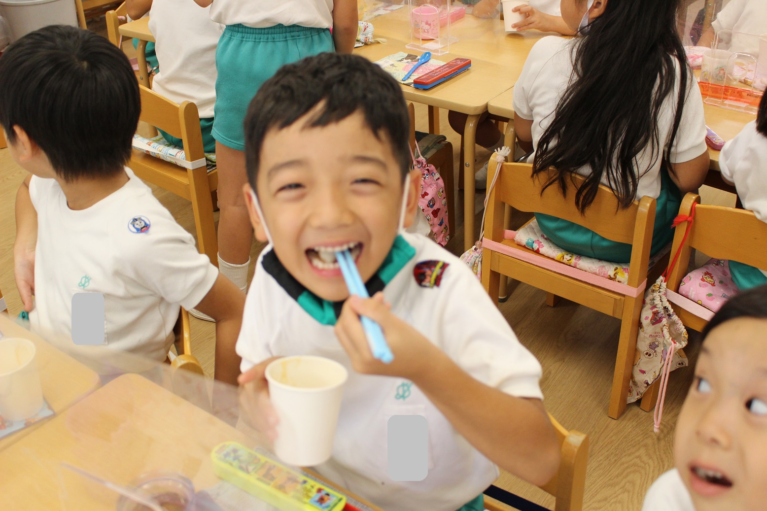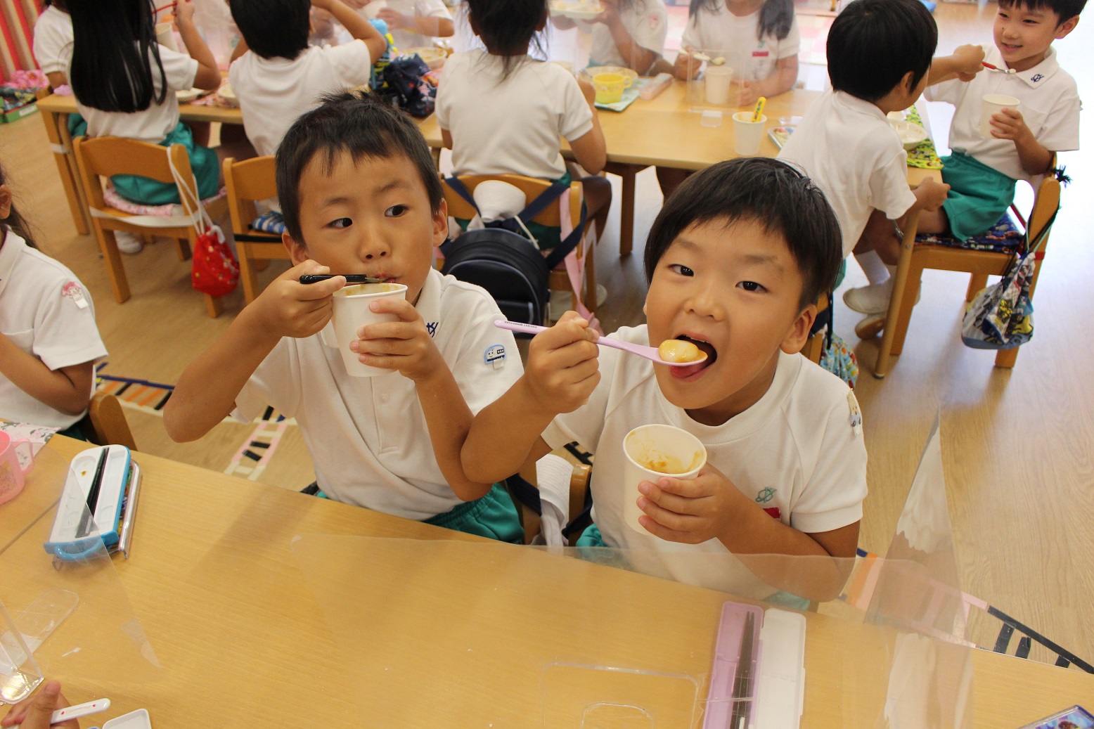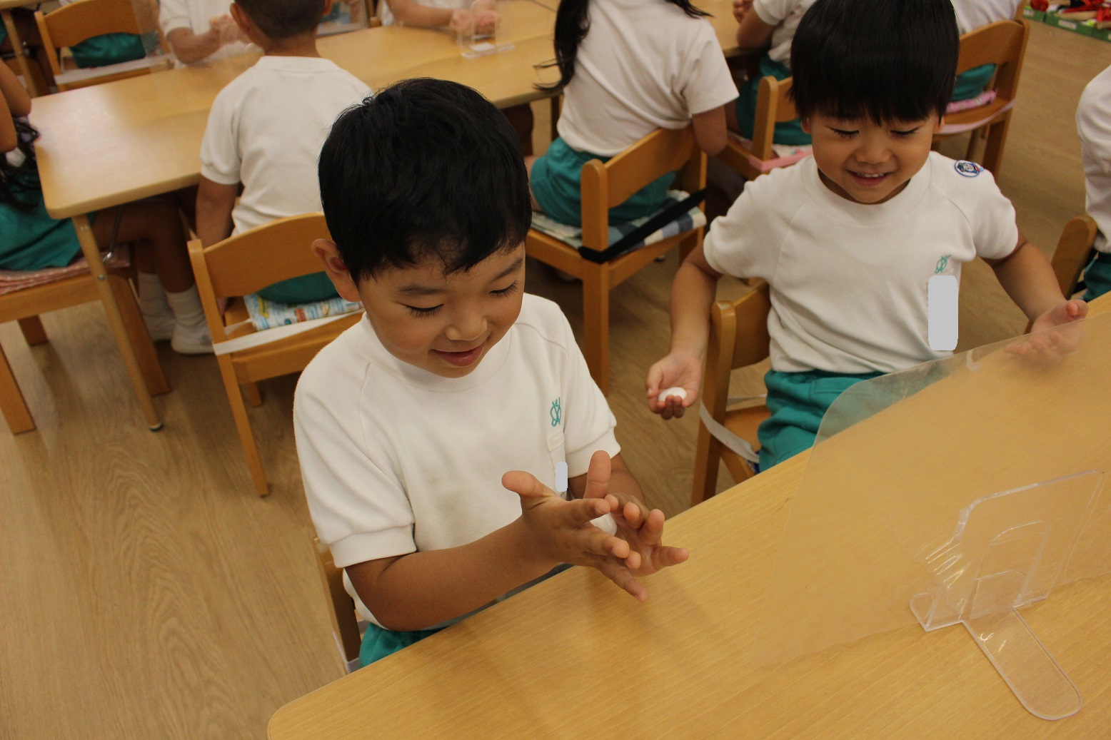 嬉しそうな年長組の子どもたち・・・・じつは、中身は塩分チャージなんです!!!