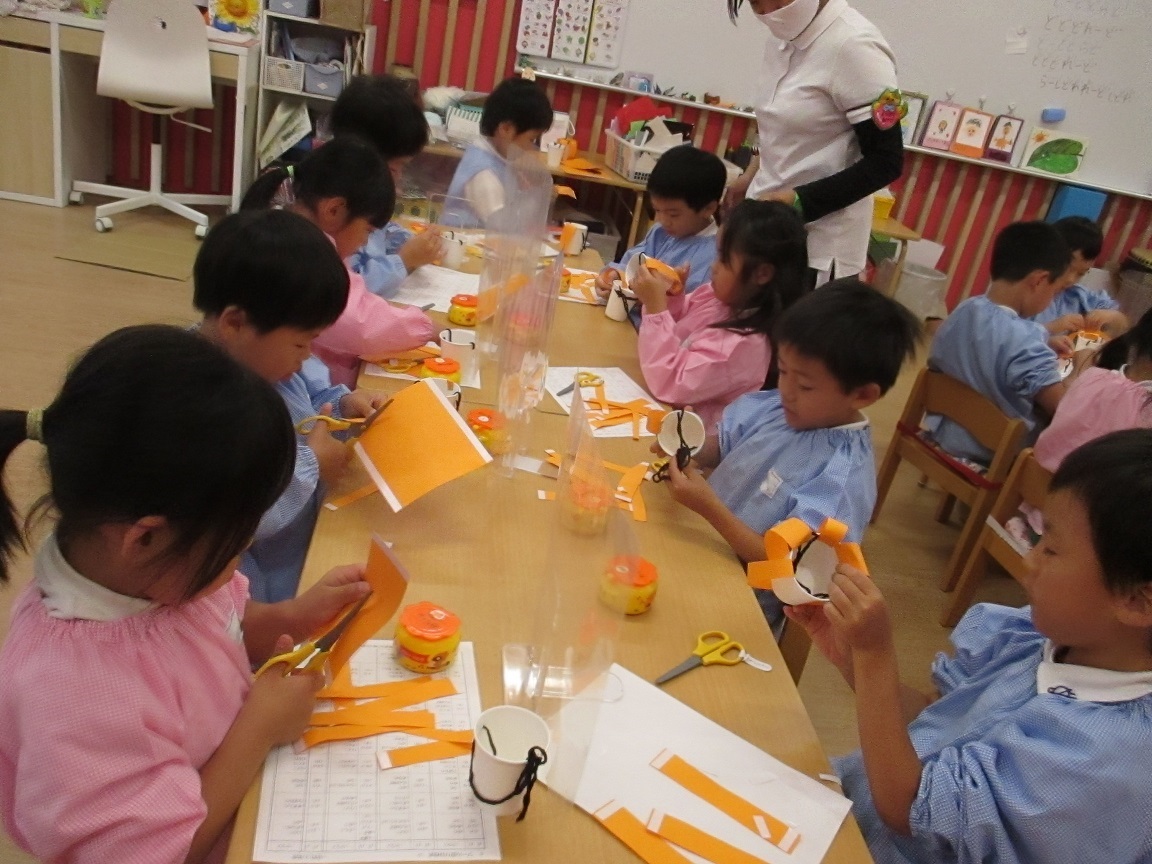 少し前にうめ組でかぼちゃの入れ物を作っていました。