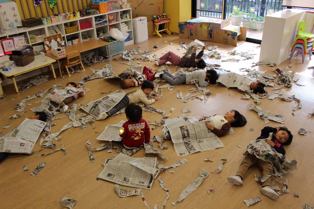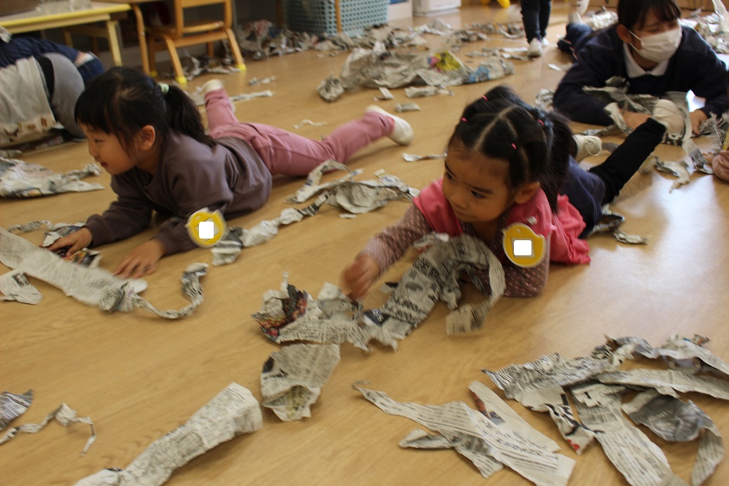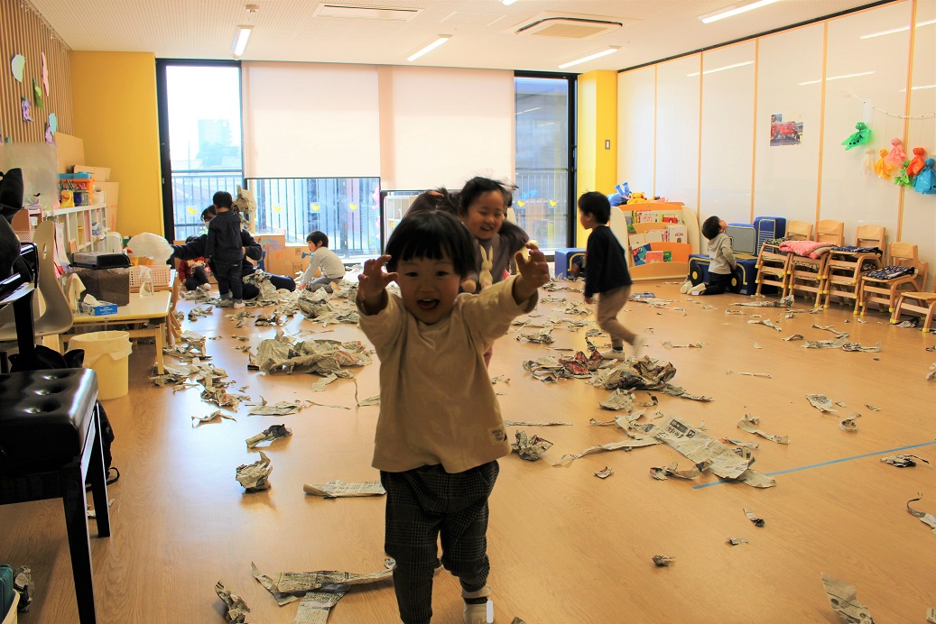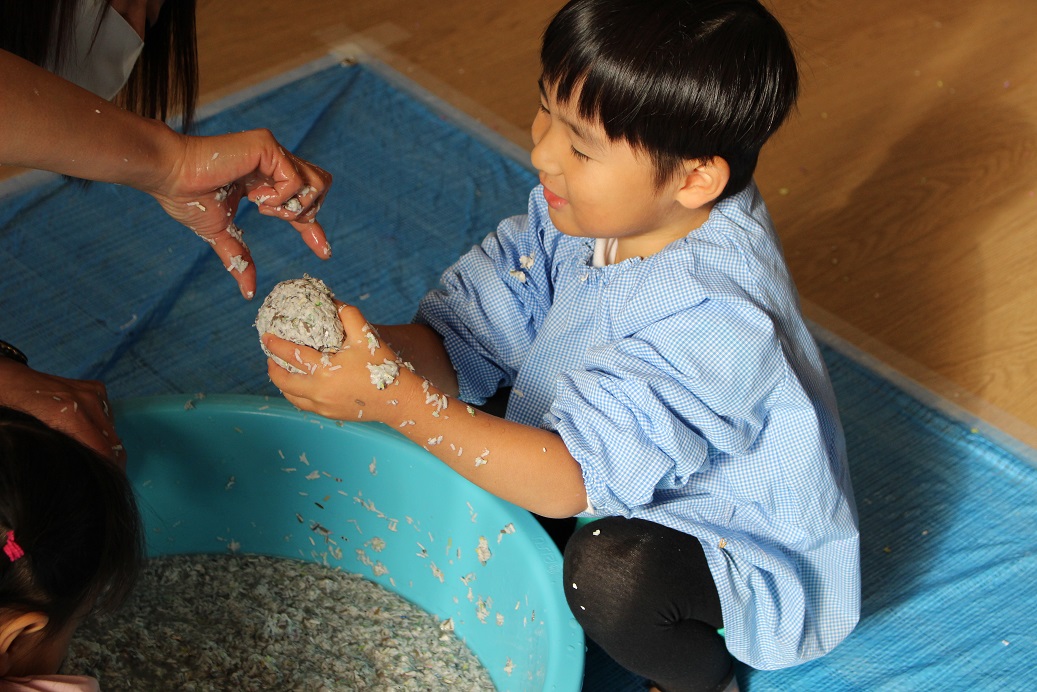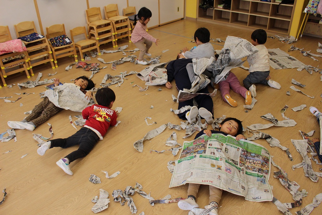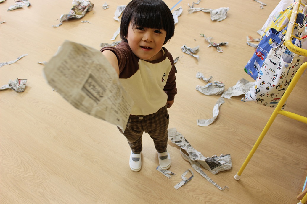 古紙になった紙は、子どもにとって素敵な遊びの素材になるのですね♪