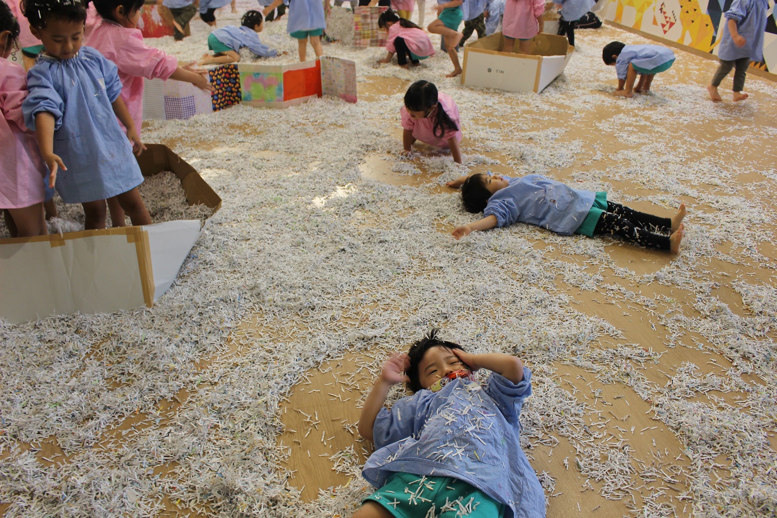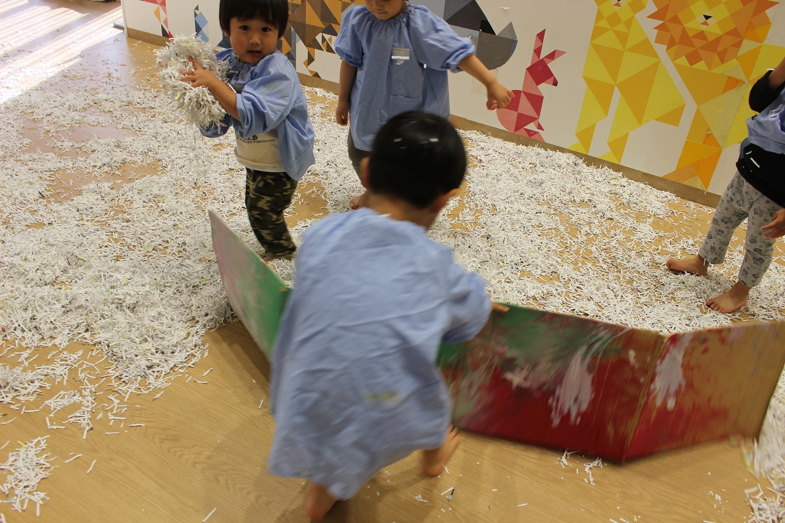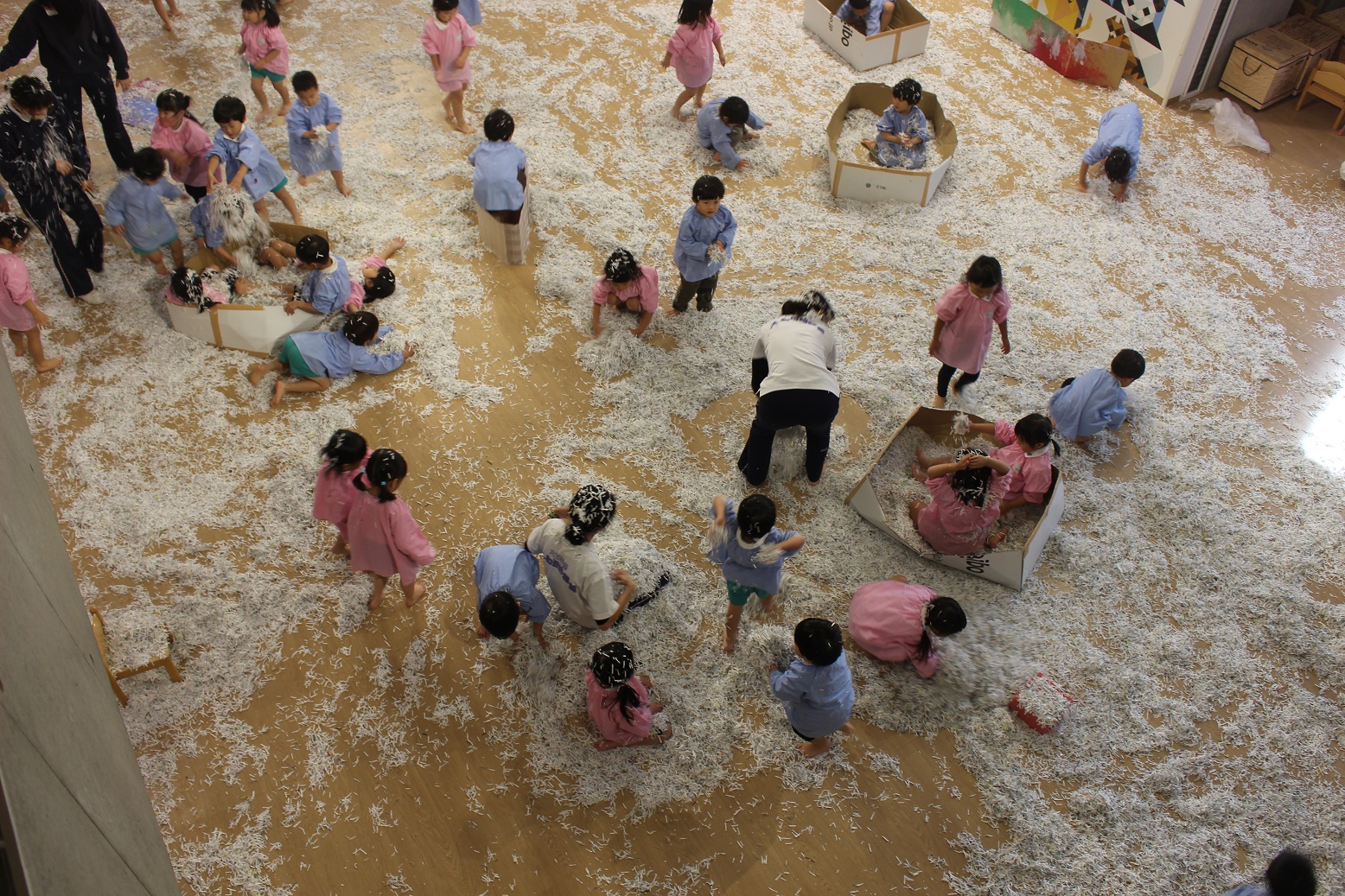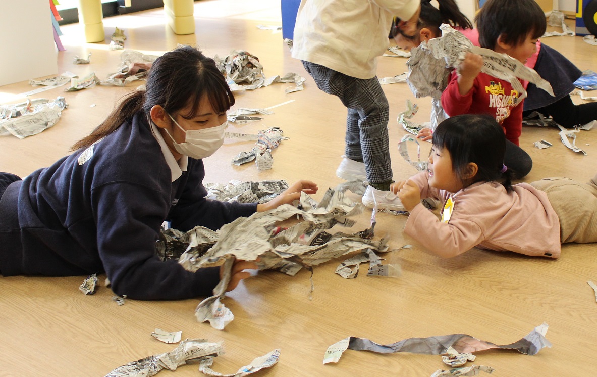 古紙になった紙は、子どもにとって素敵な遊びの素材になるのですね♪