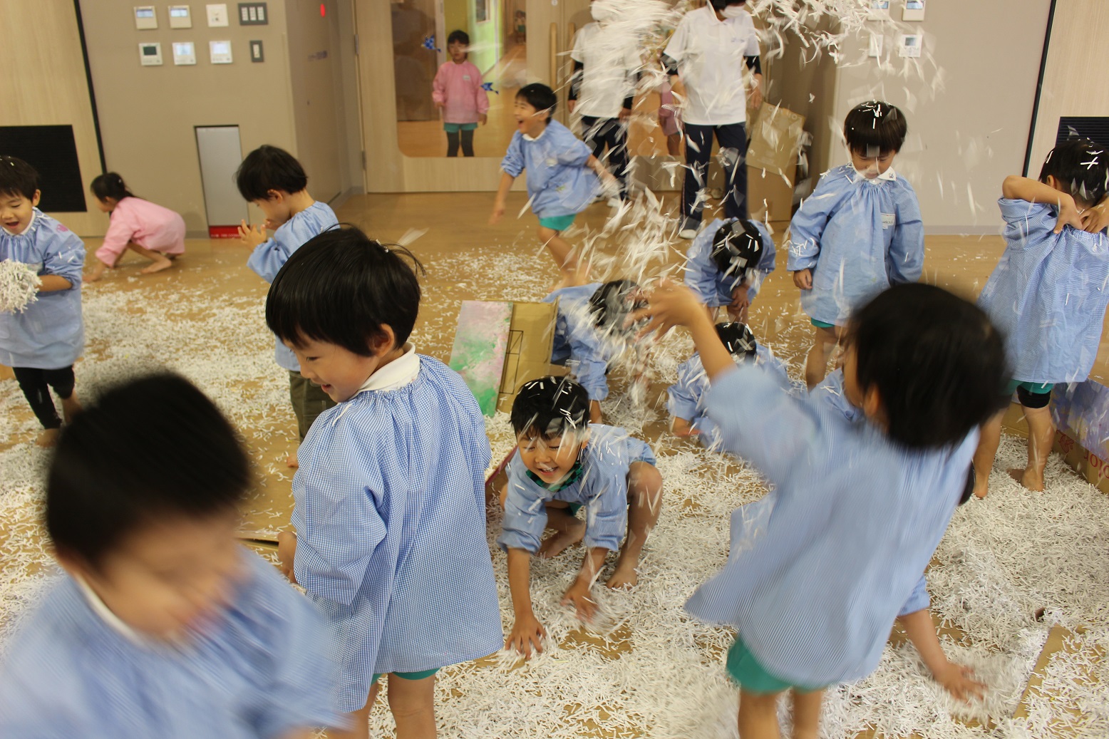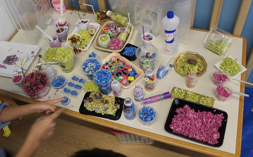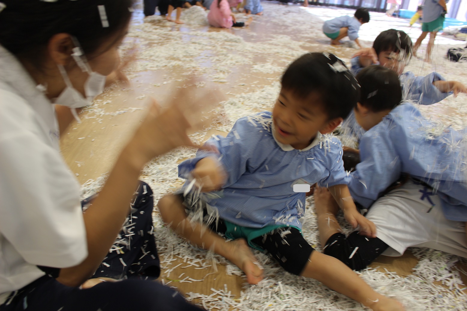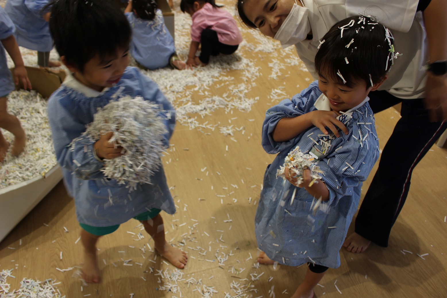 古紙になった紙は、子どもにとって素敵な遊びの素材になるのですね♪