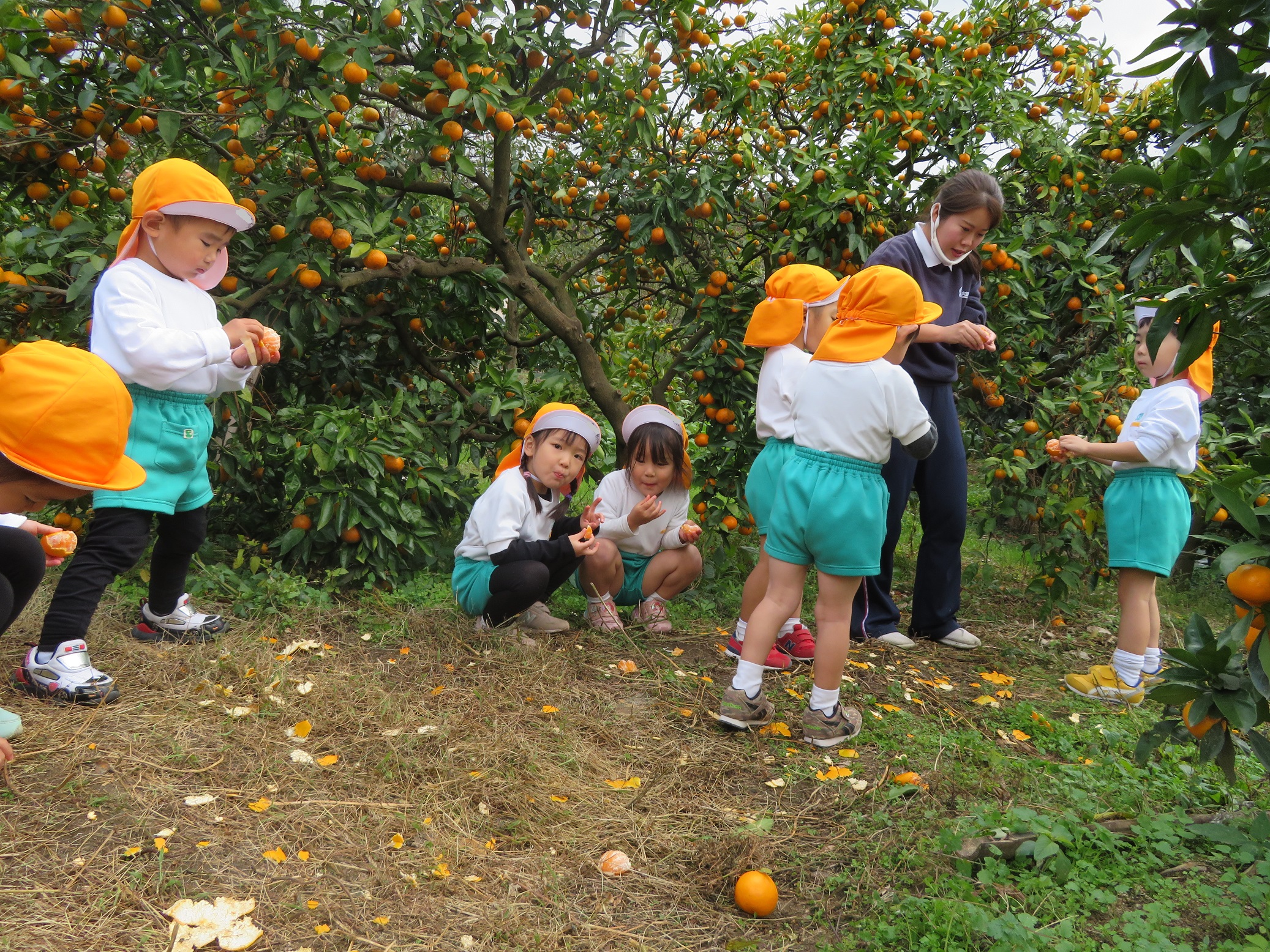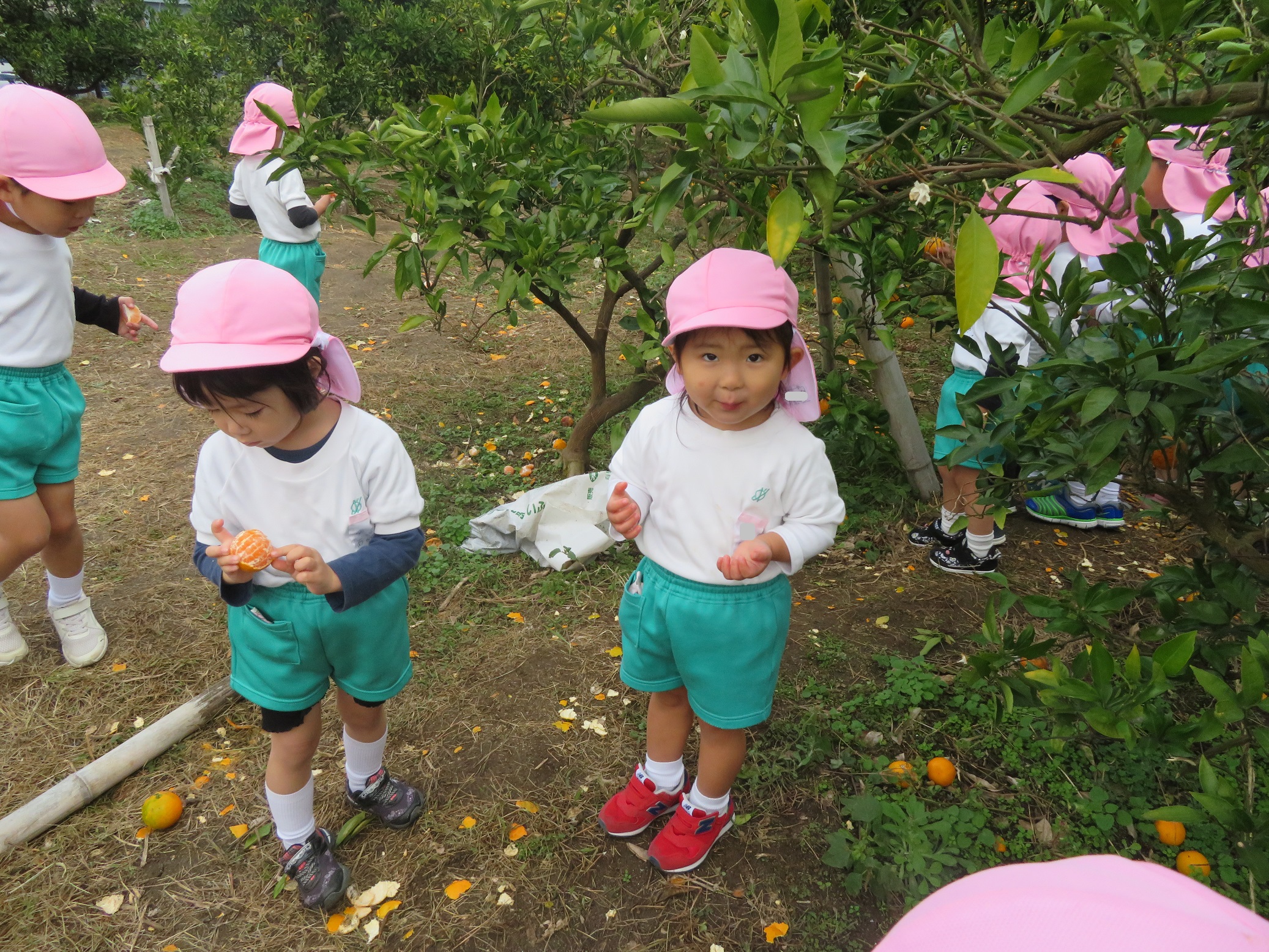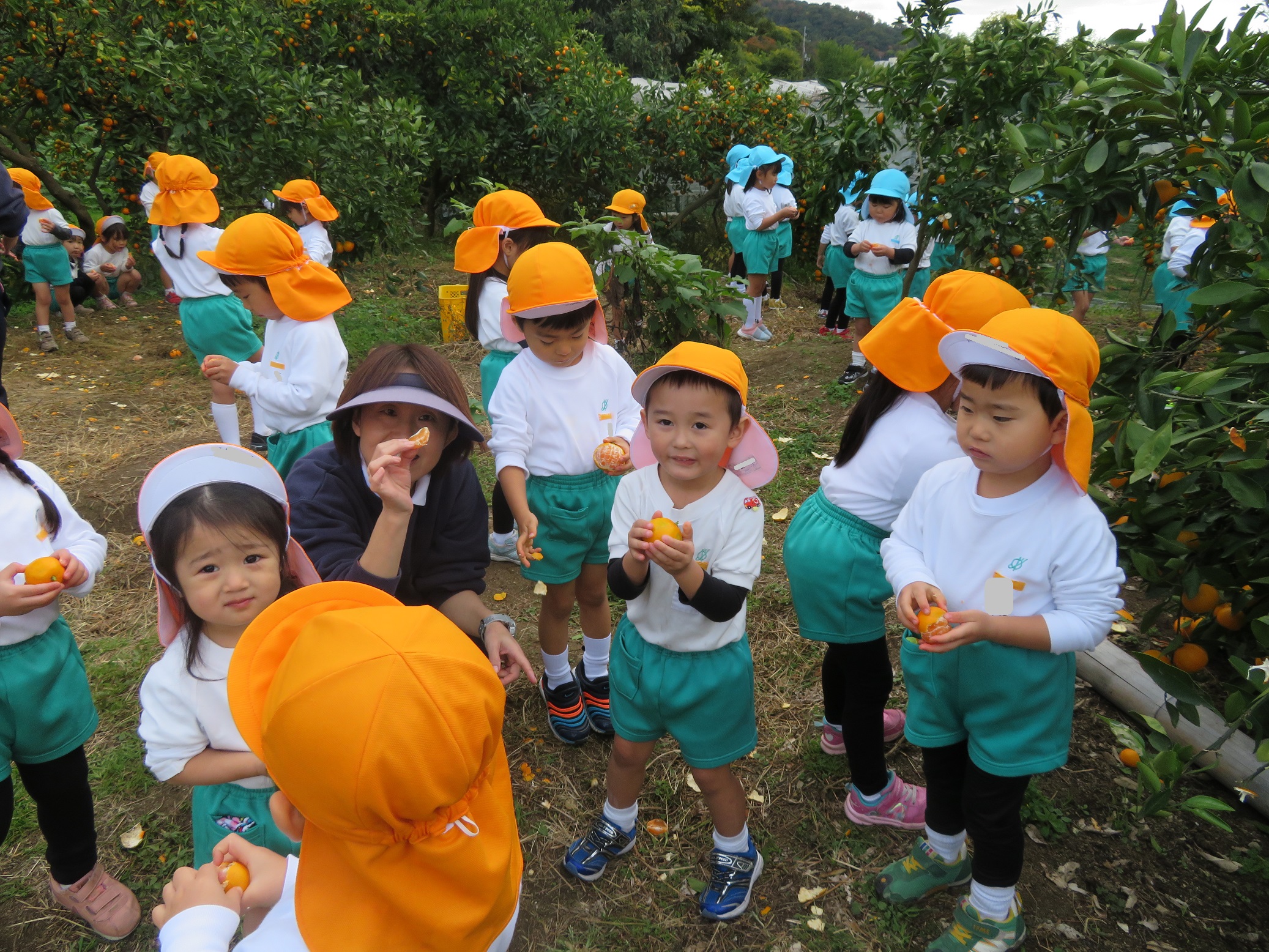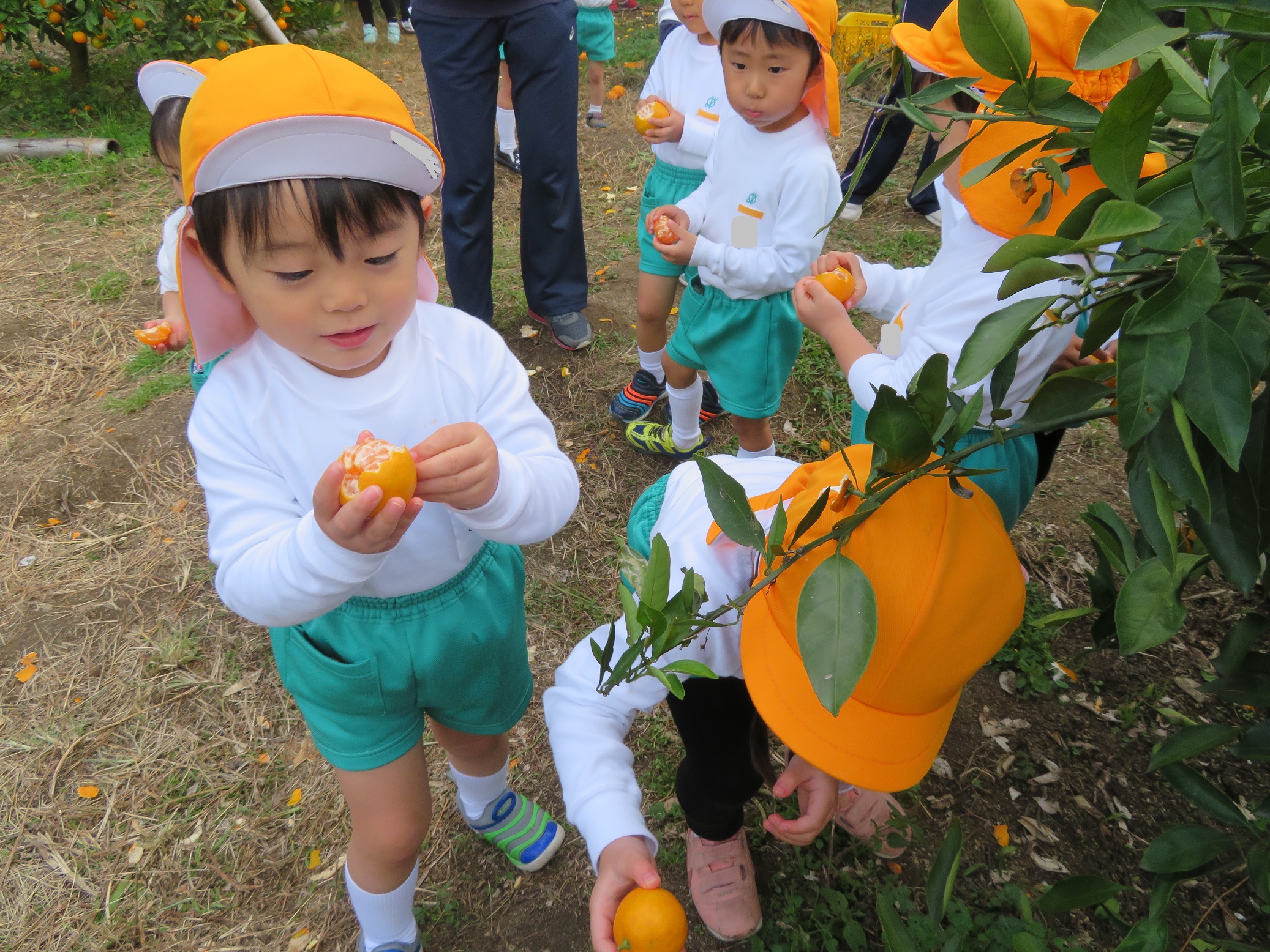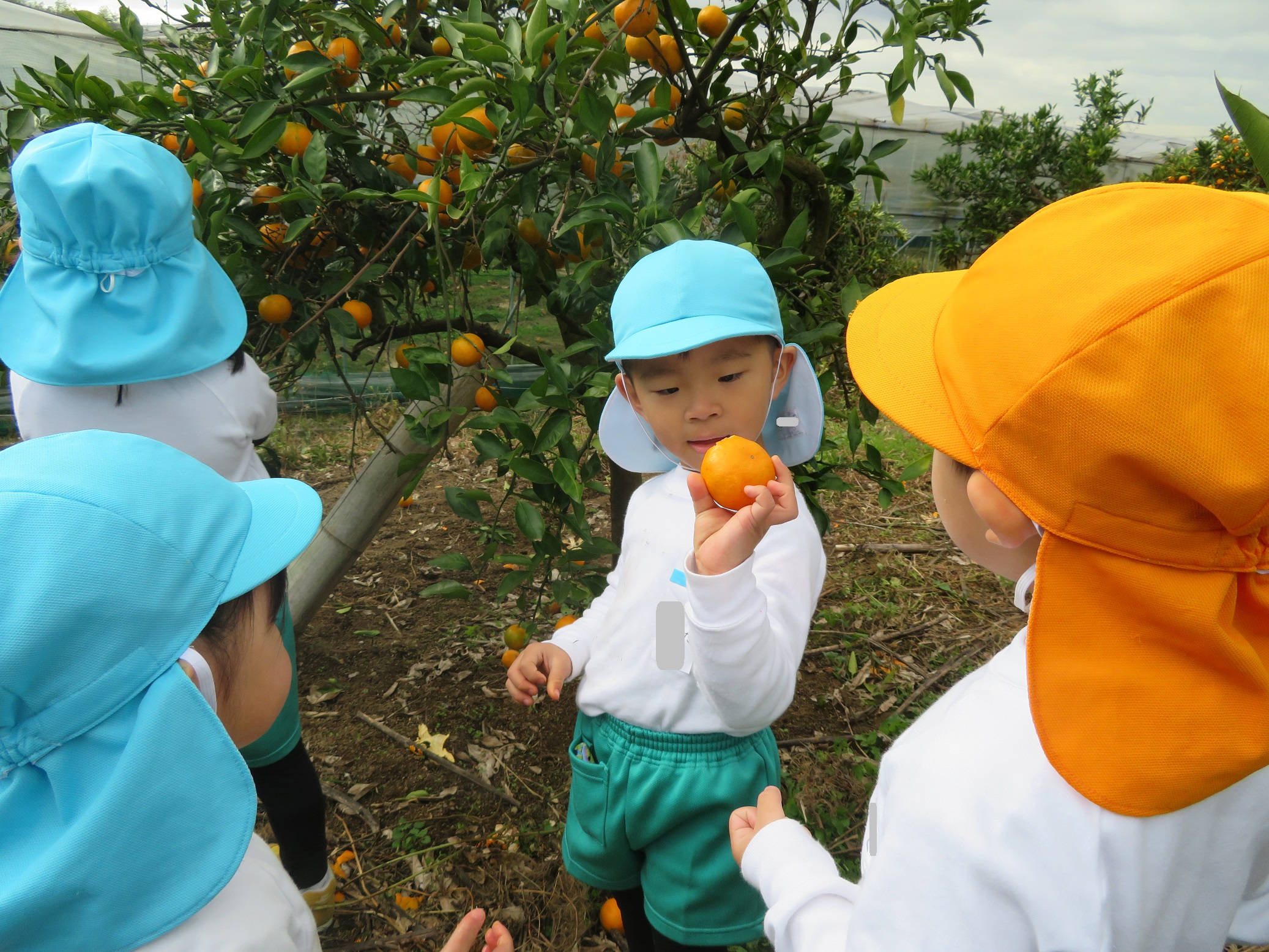 11月30日 ゆり組は、みかん狩り遠足で集めたみかんの皮を使って、草木染め遊びをしました!