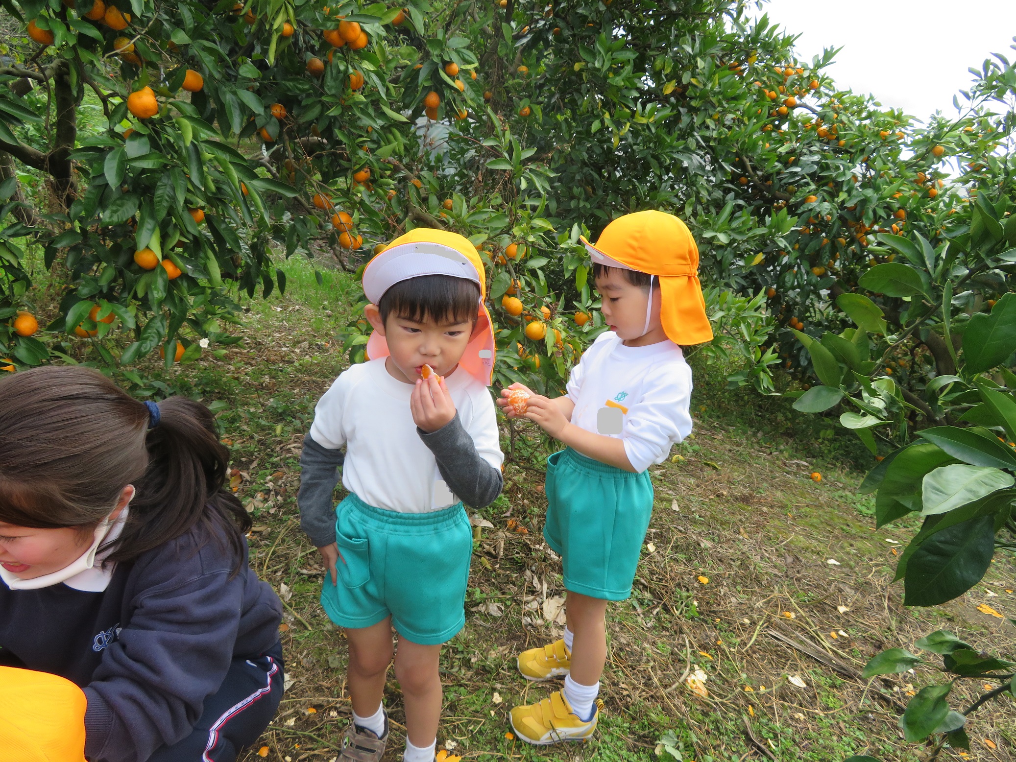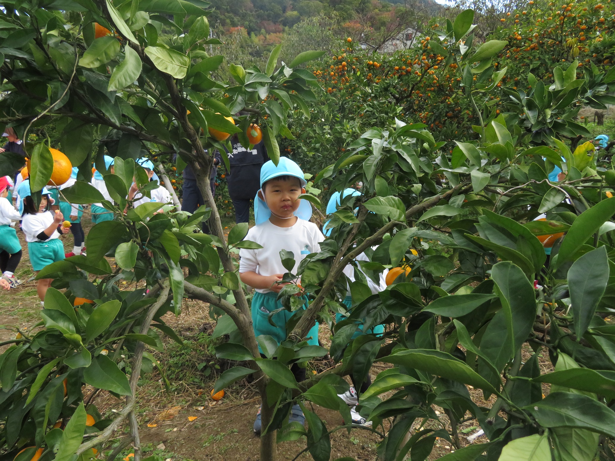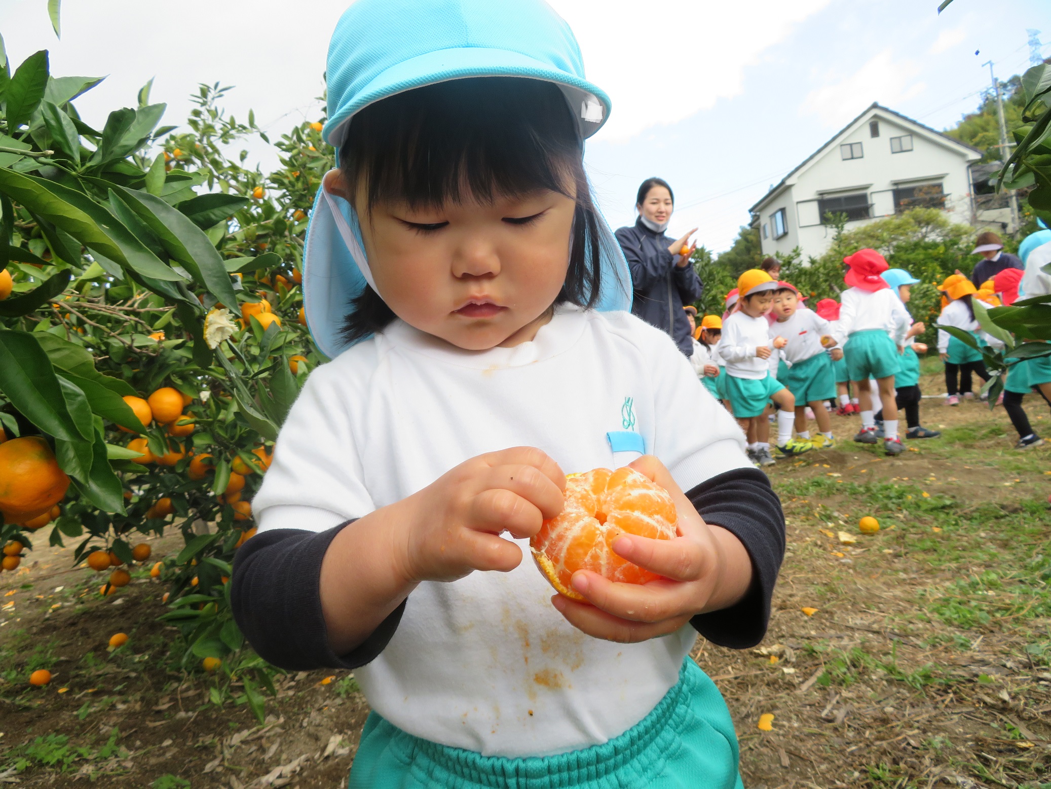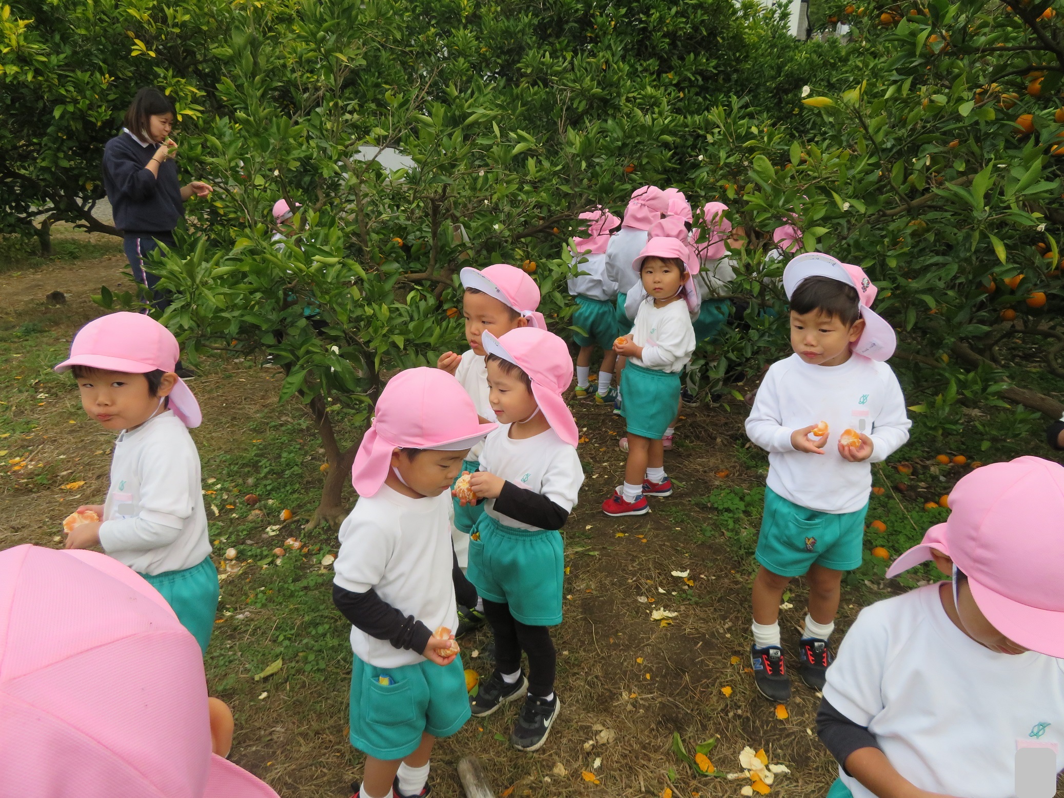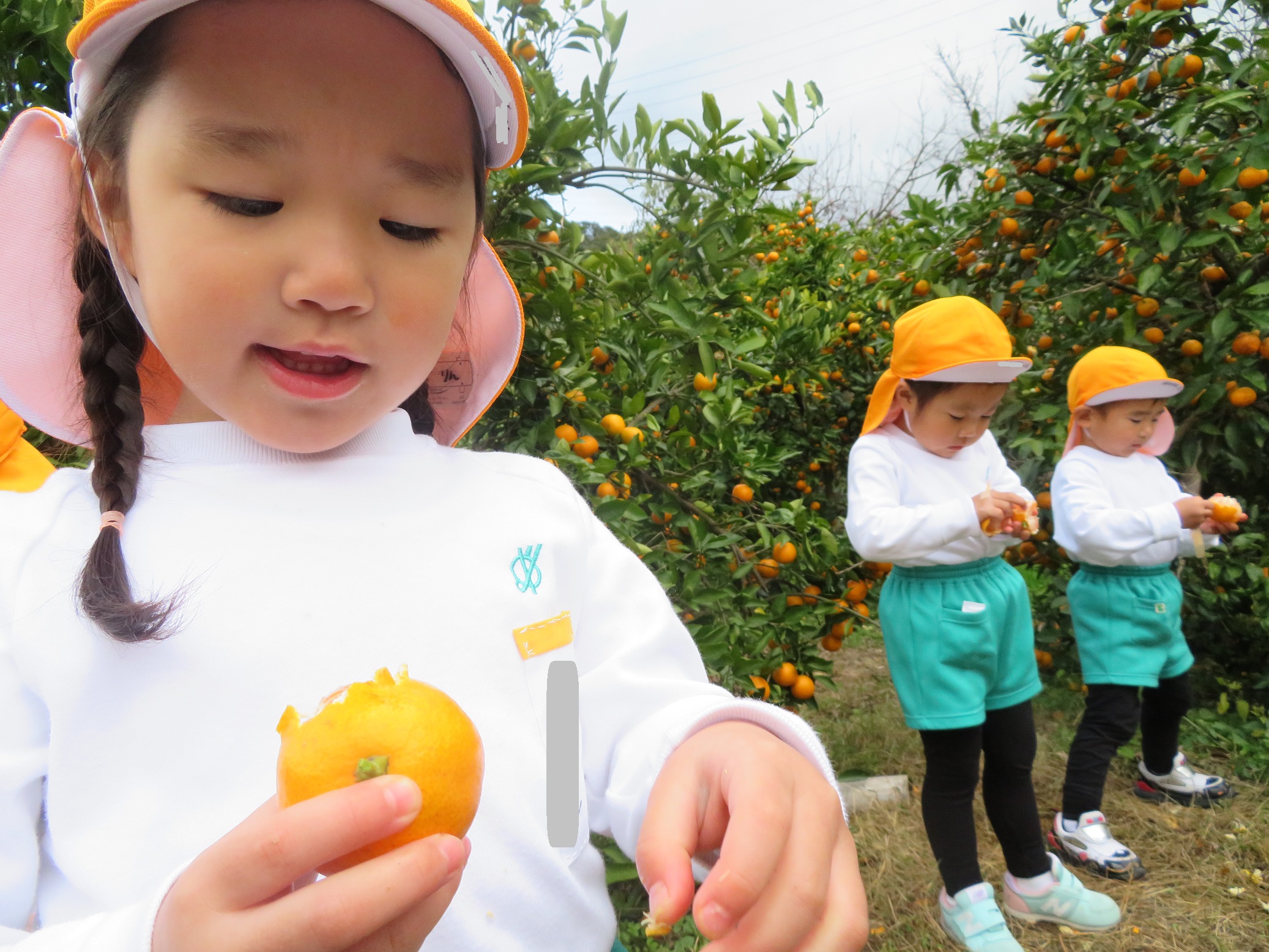 11月30日 ゆり組は、みかん狩り遠足で集めたみかんの皮を使って、草木染め遊びをしました!
