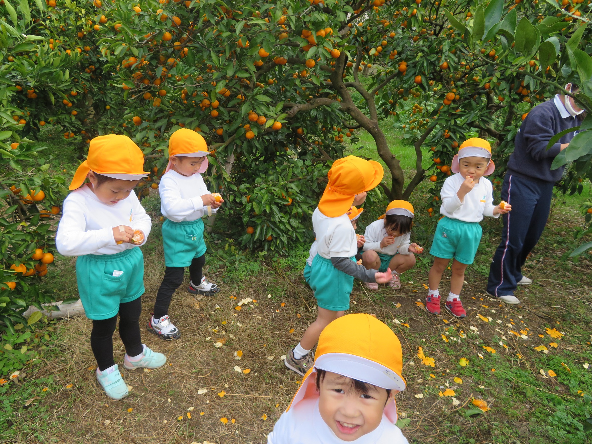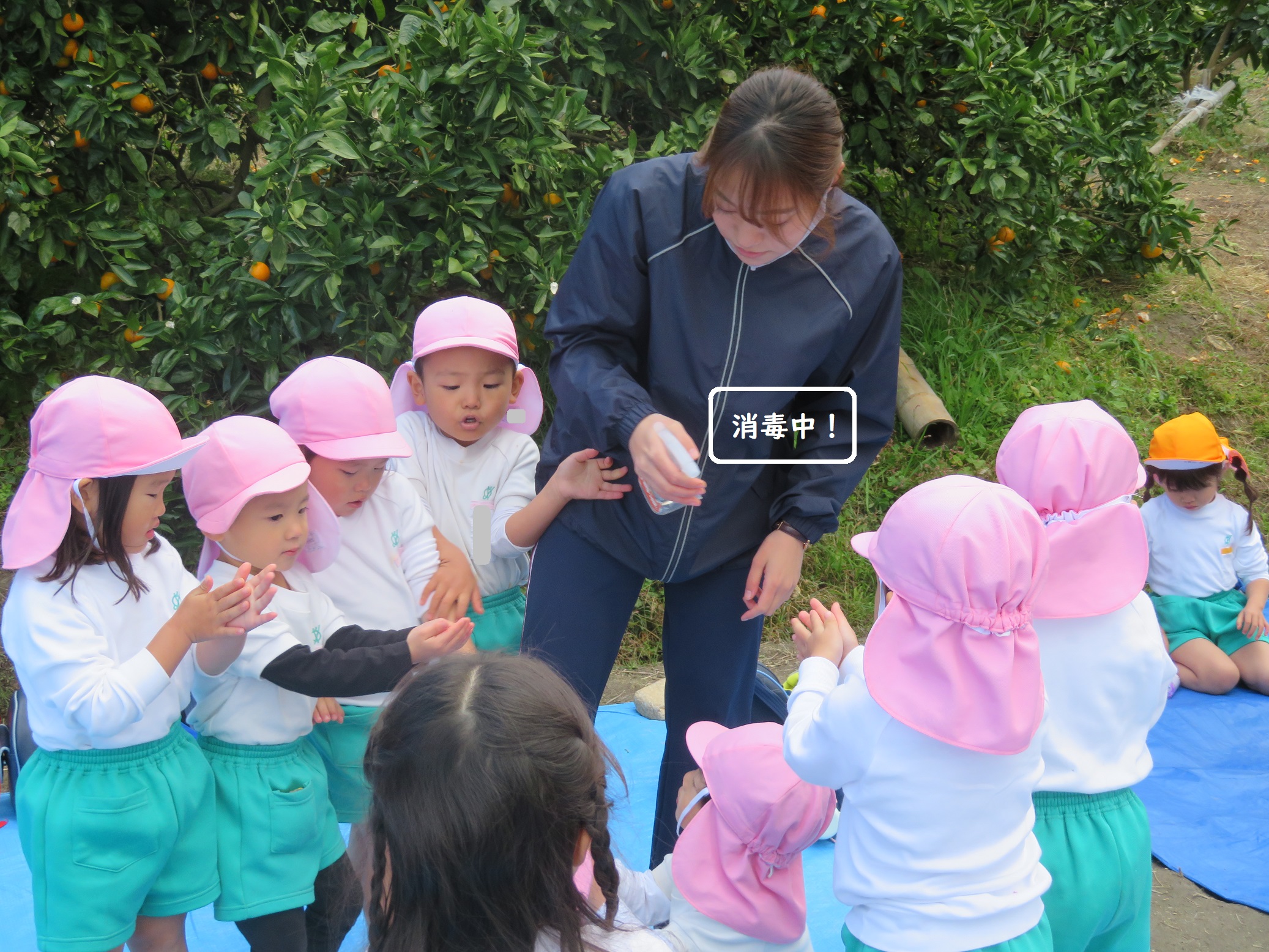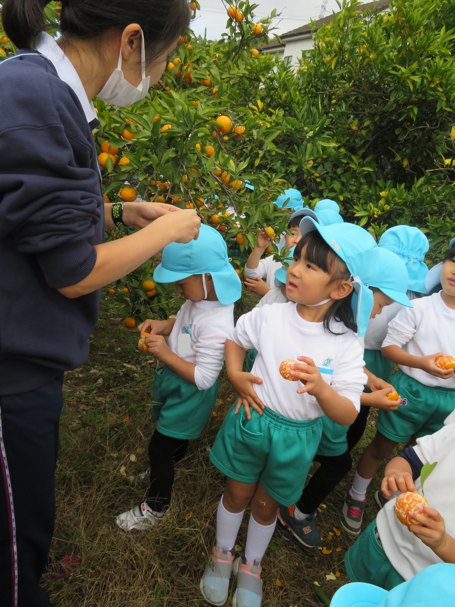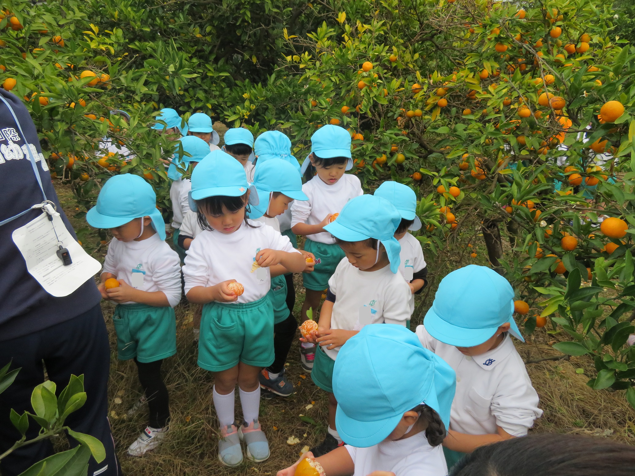 11月30日 ゆり組は、みかん狩り遠足で集めたみかんの皮を使って、草木染め遊びをしました!