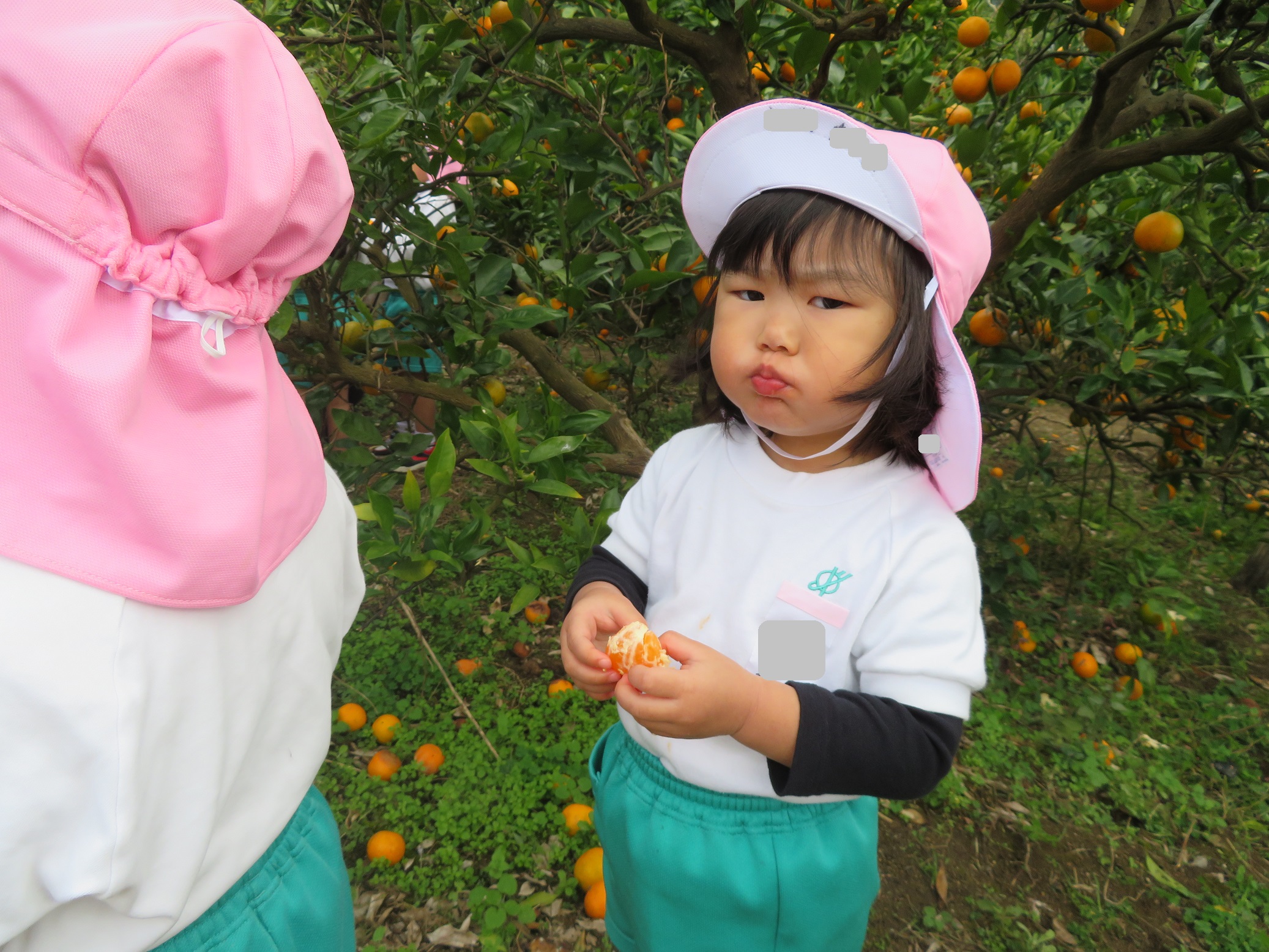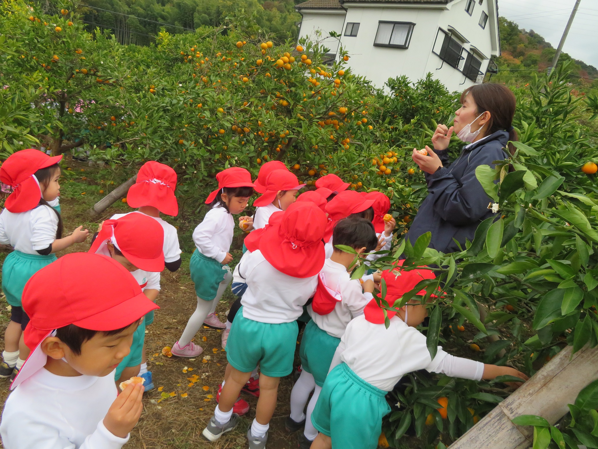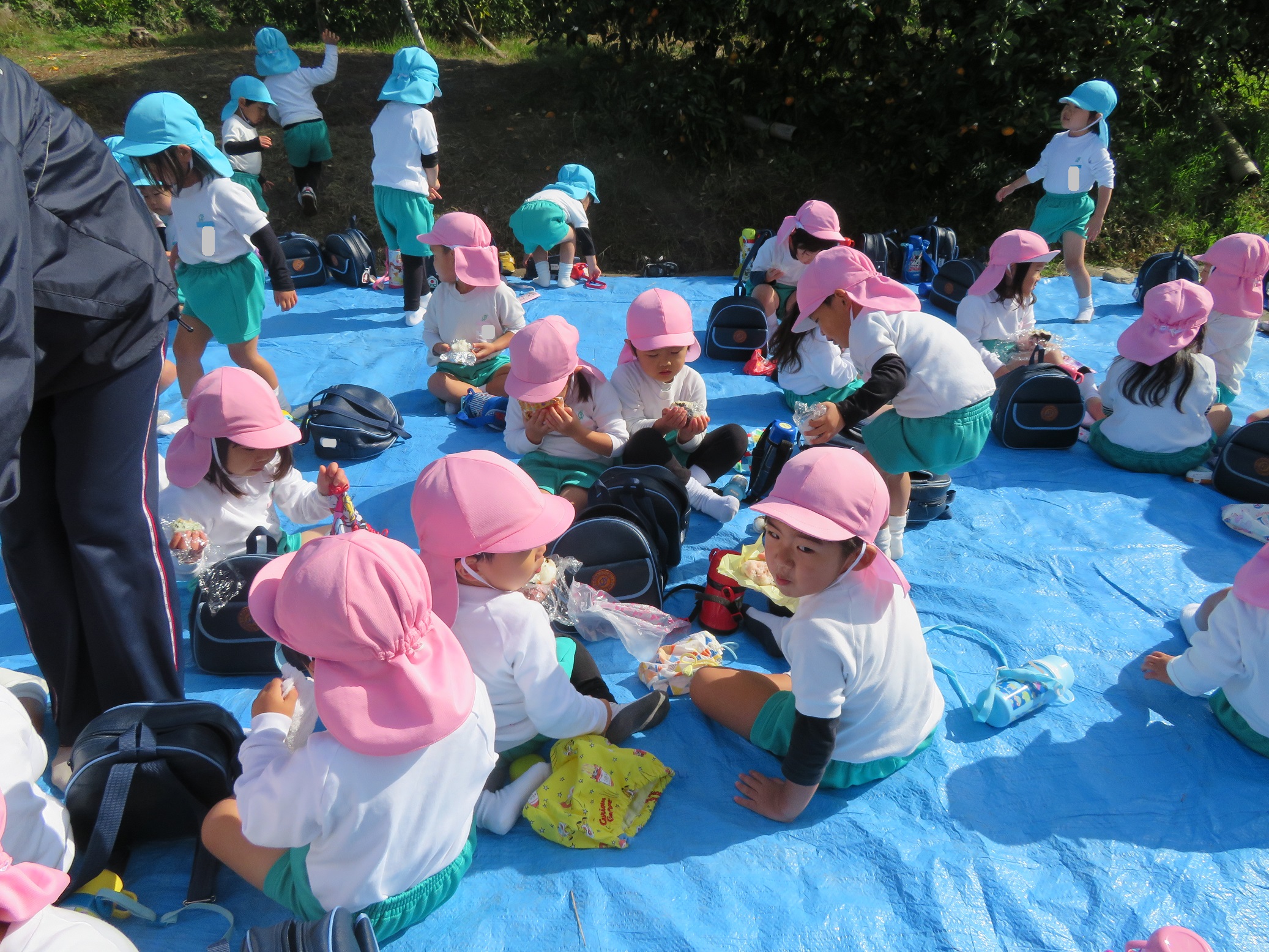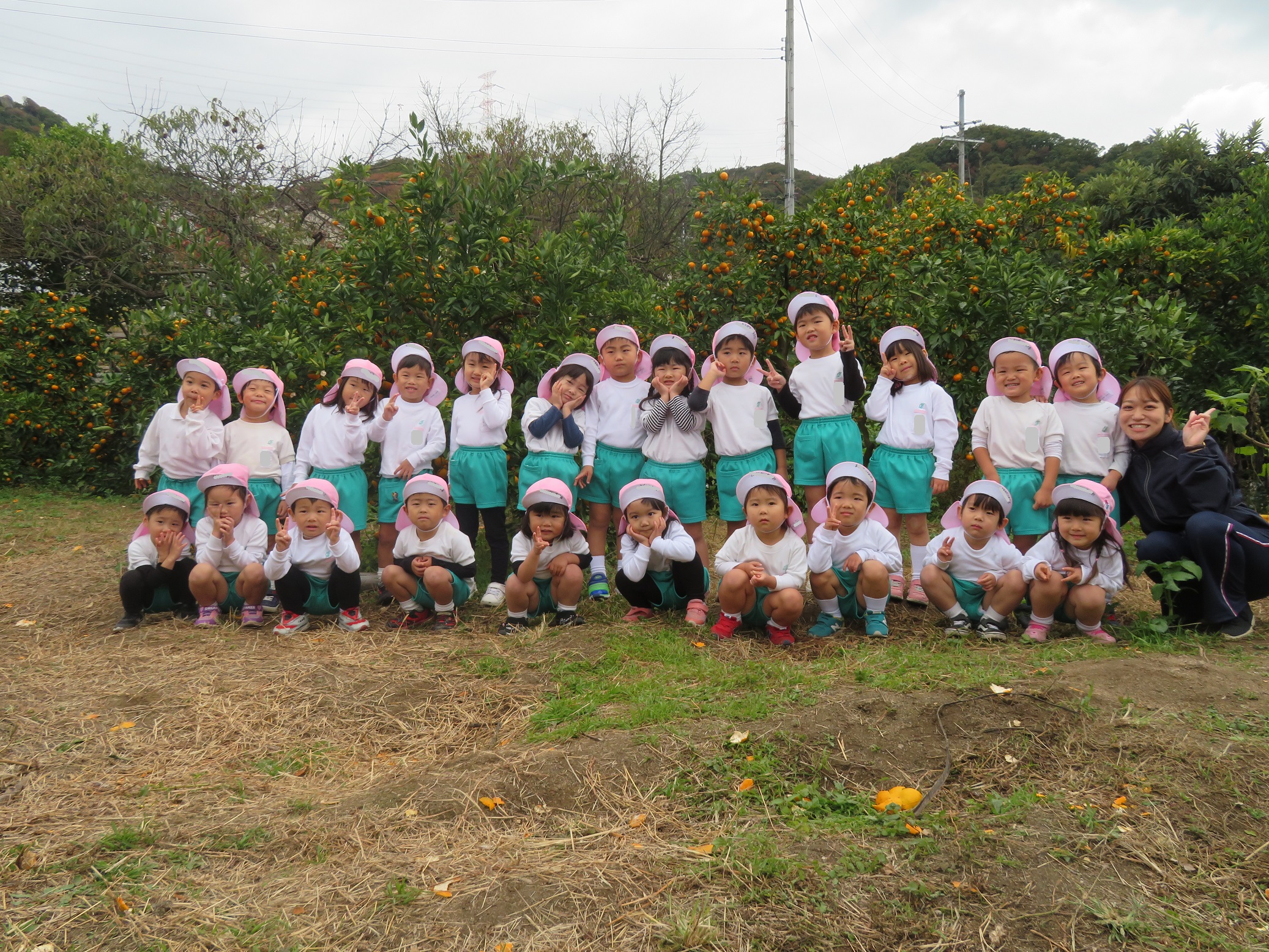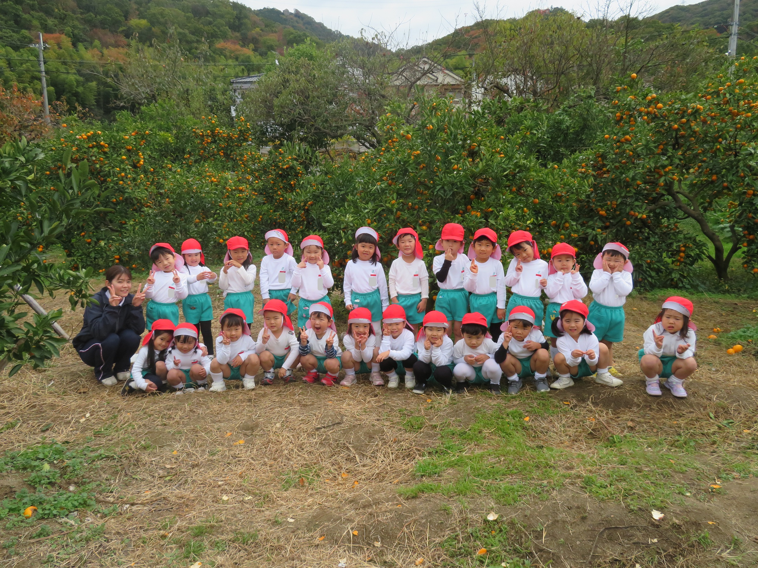 11月30日 ゆり組は、みかん狩り遠足で集めたみかんの皮を使って、草木染め遊びをしました!