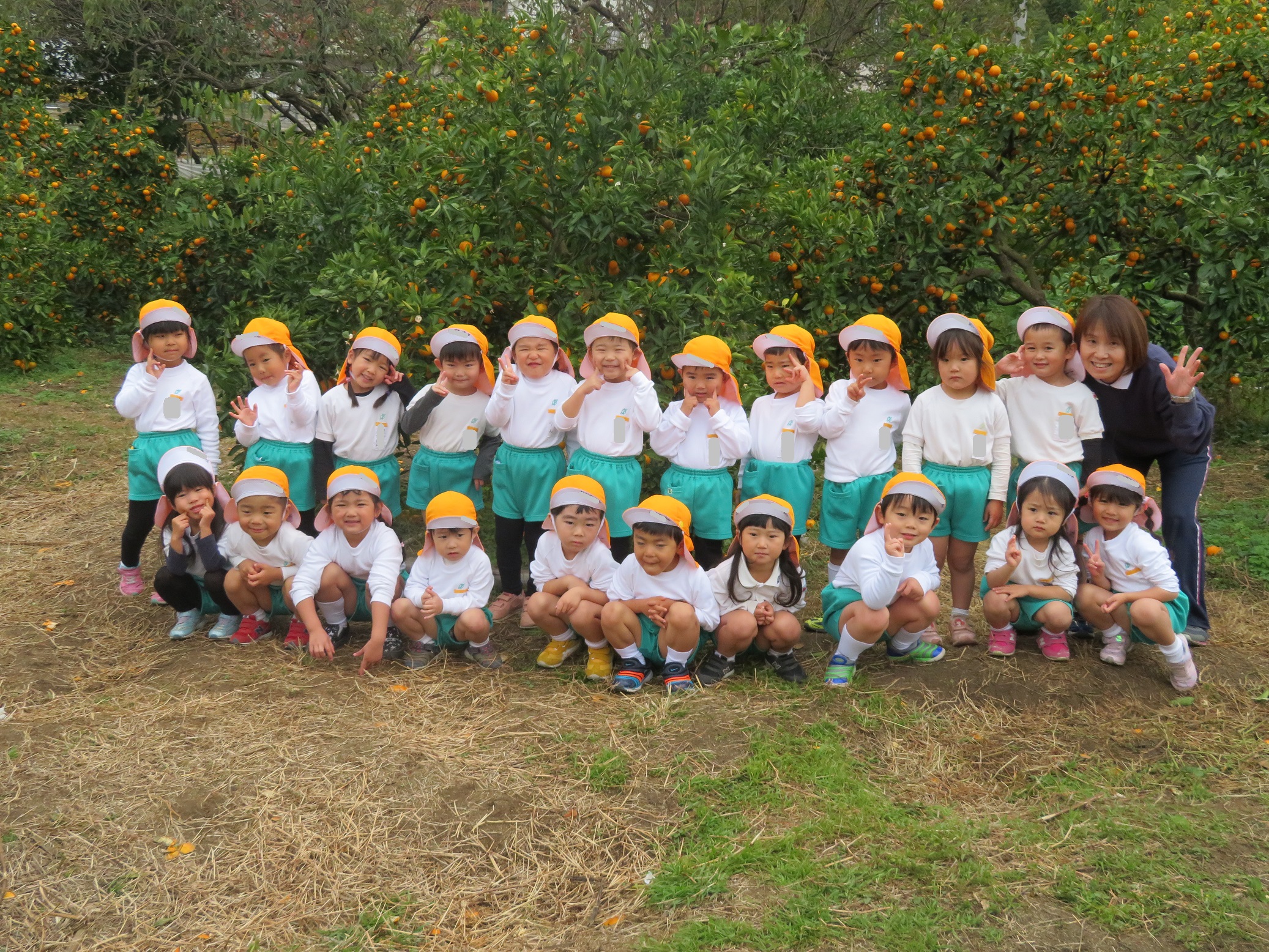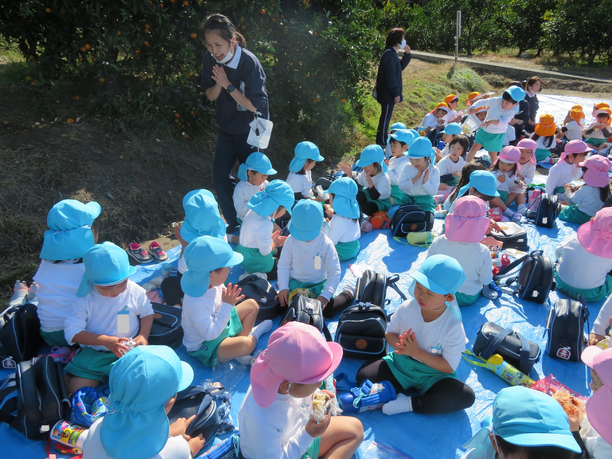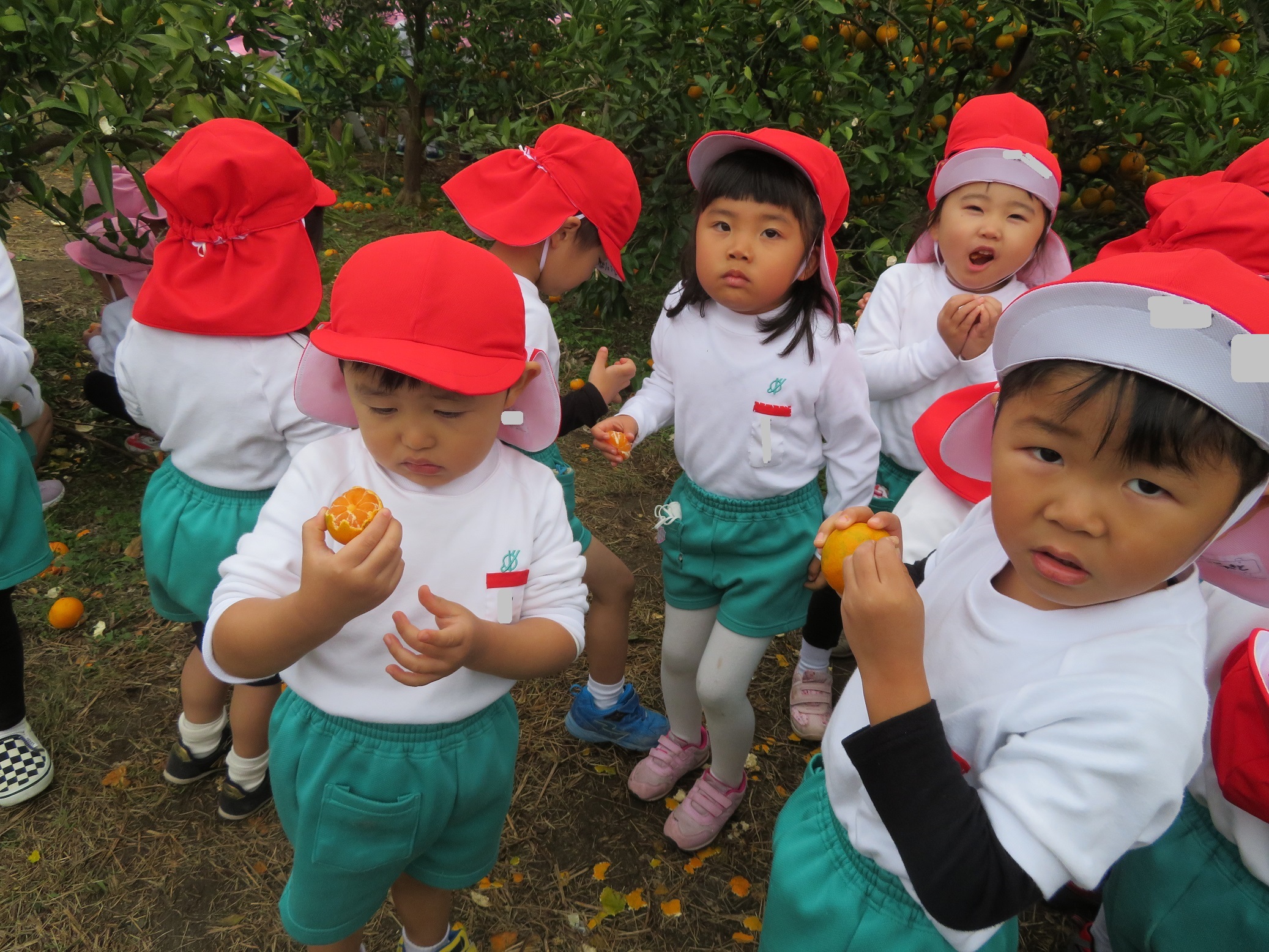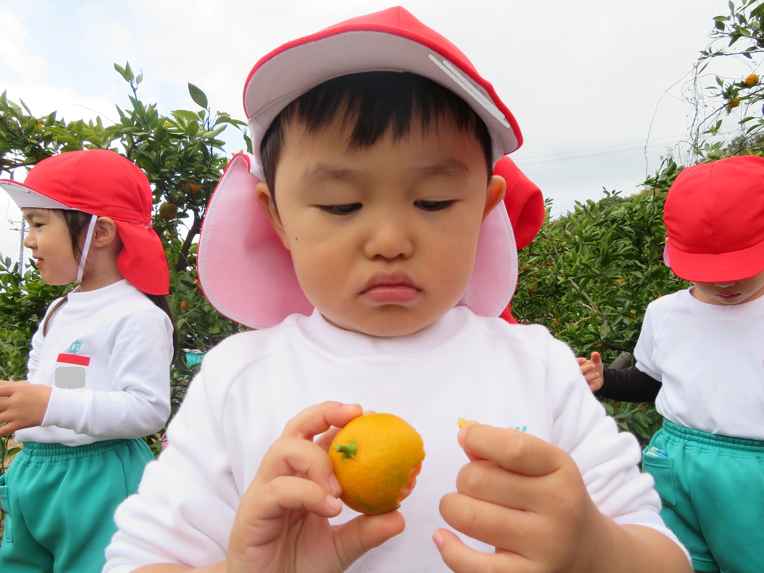 11月30日 ゆり組は、みかん狩り遠足で集めたみかんの皮を使って、草木染め遊びをしました!
