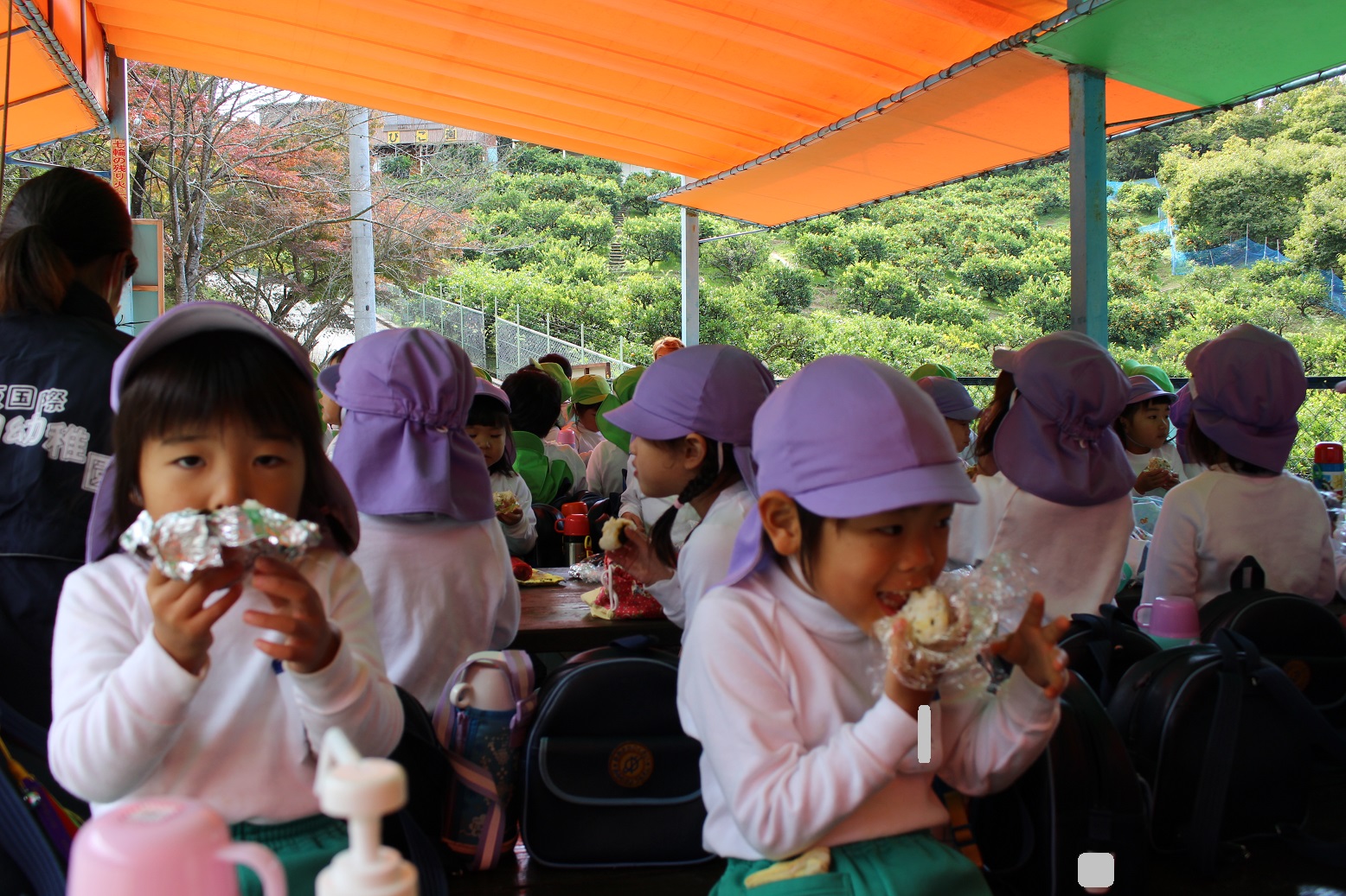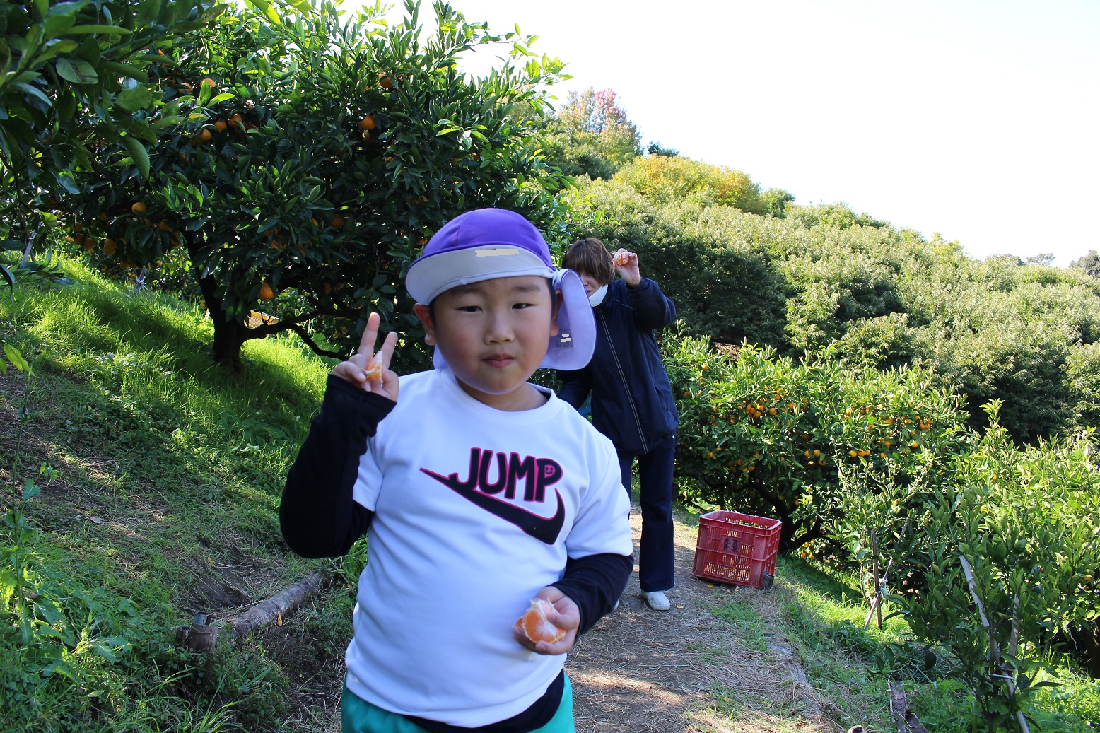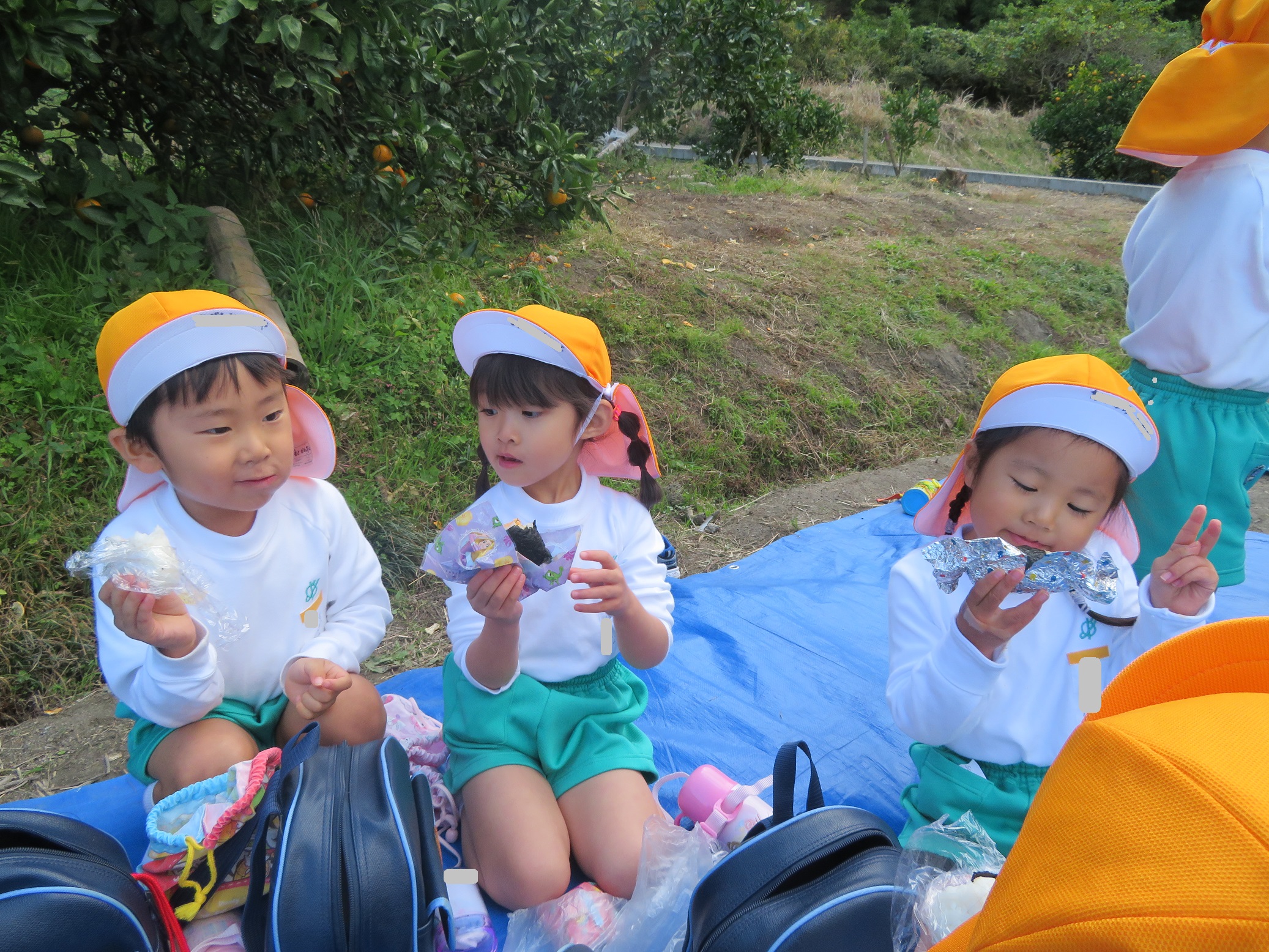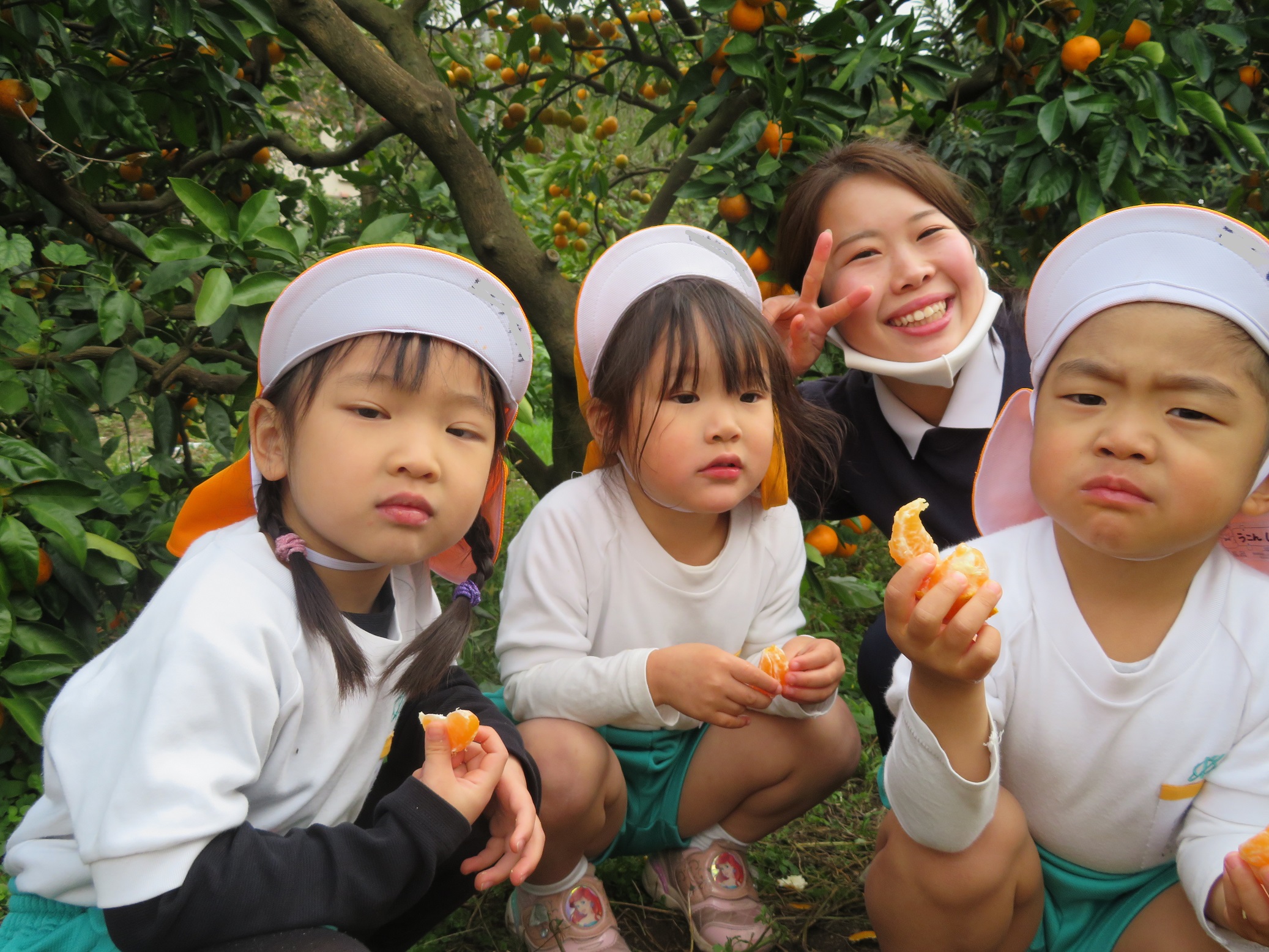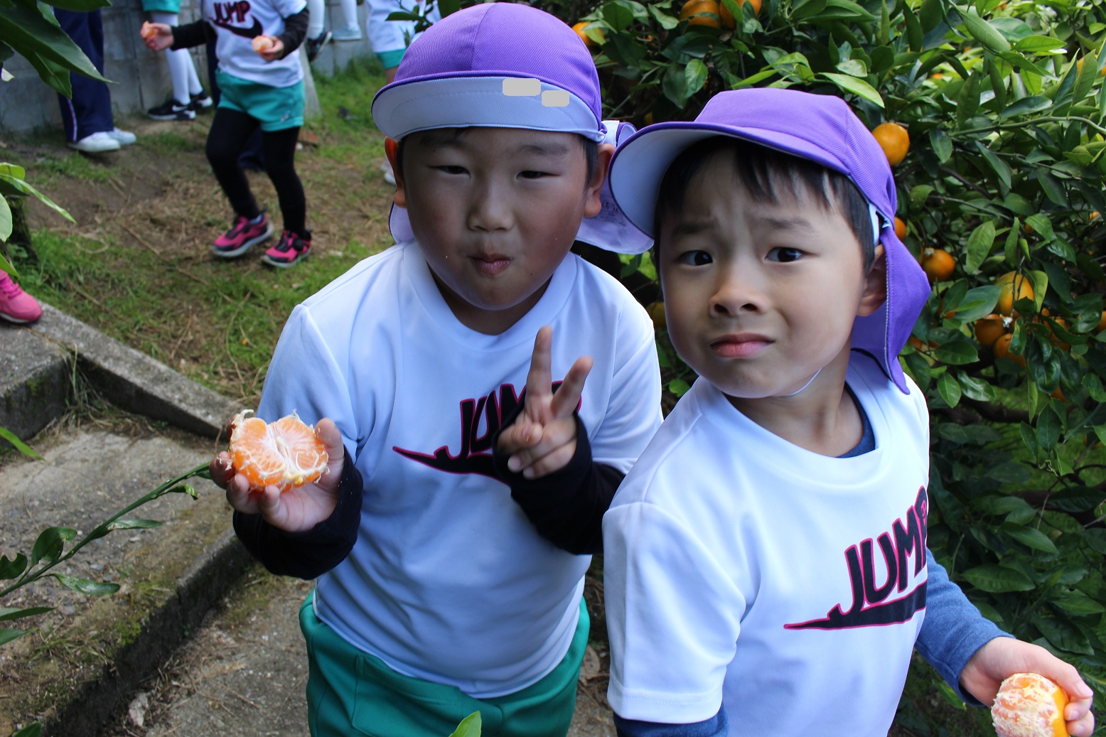 11月30日 ゆり組は、みかん狩り遠足で集めたみかんの皮を使って、草木染め遊びをしました!