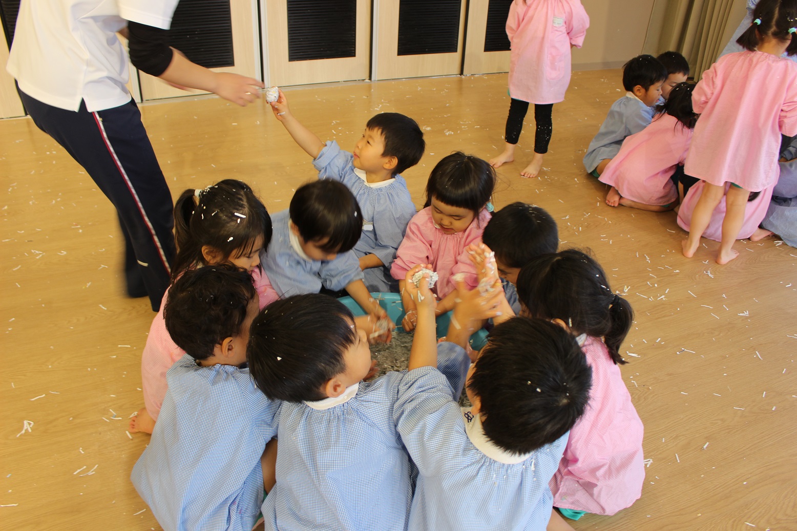 【あじさい組 紙粘土遊び(感触遊び)♪】
