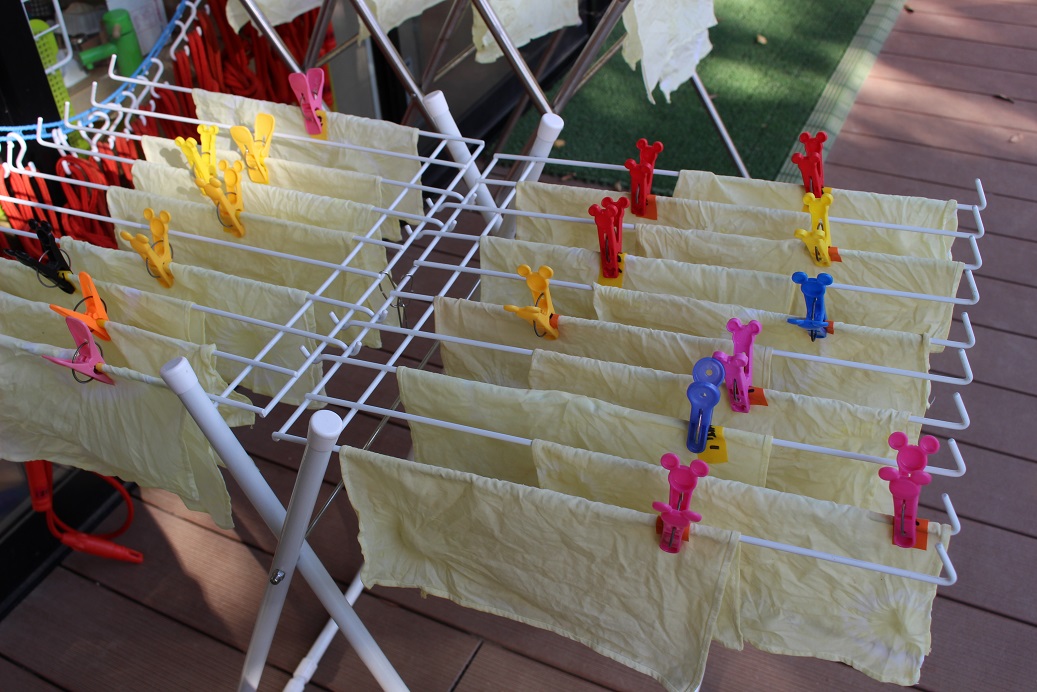 その後、ミョウバン水から出してみると・・・、きれいな黄色に染まっていました!