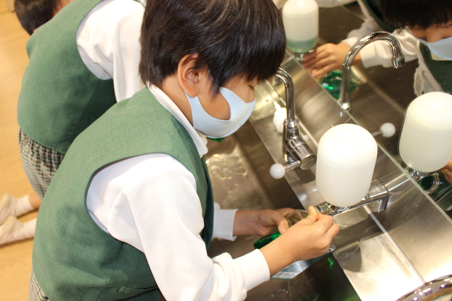 水道の横に手洗い石鹸を置いていましたが・・・・泡で出るポンプを置くことになりました!