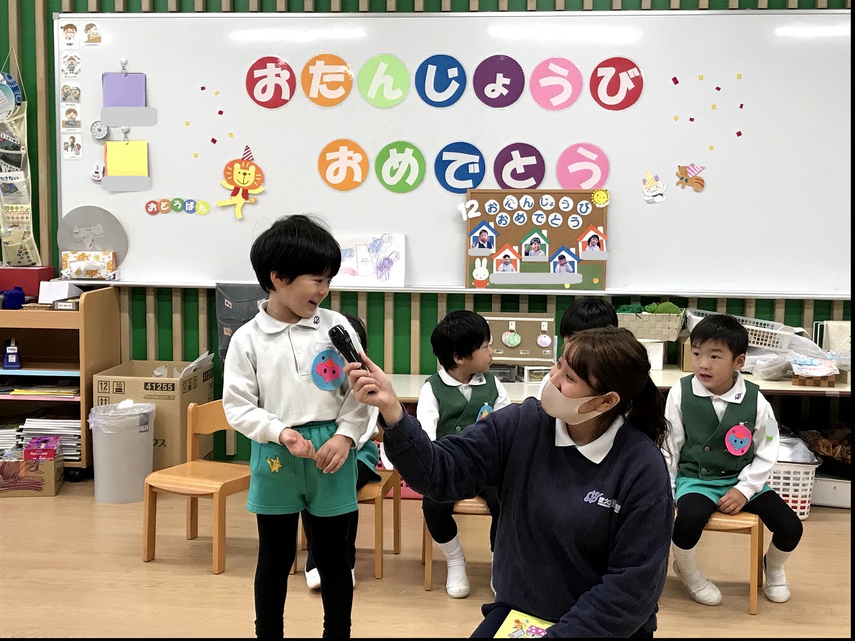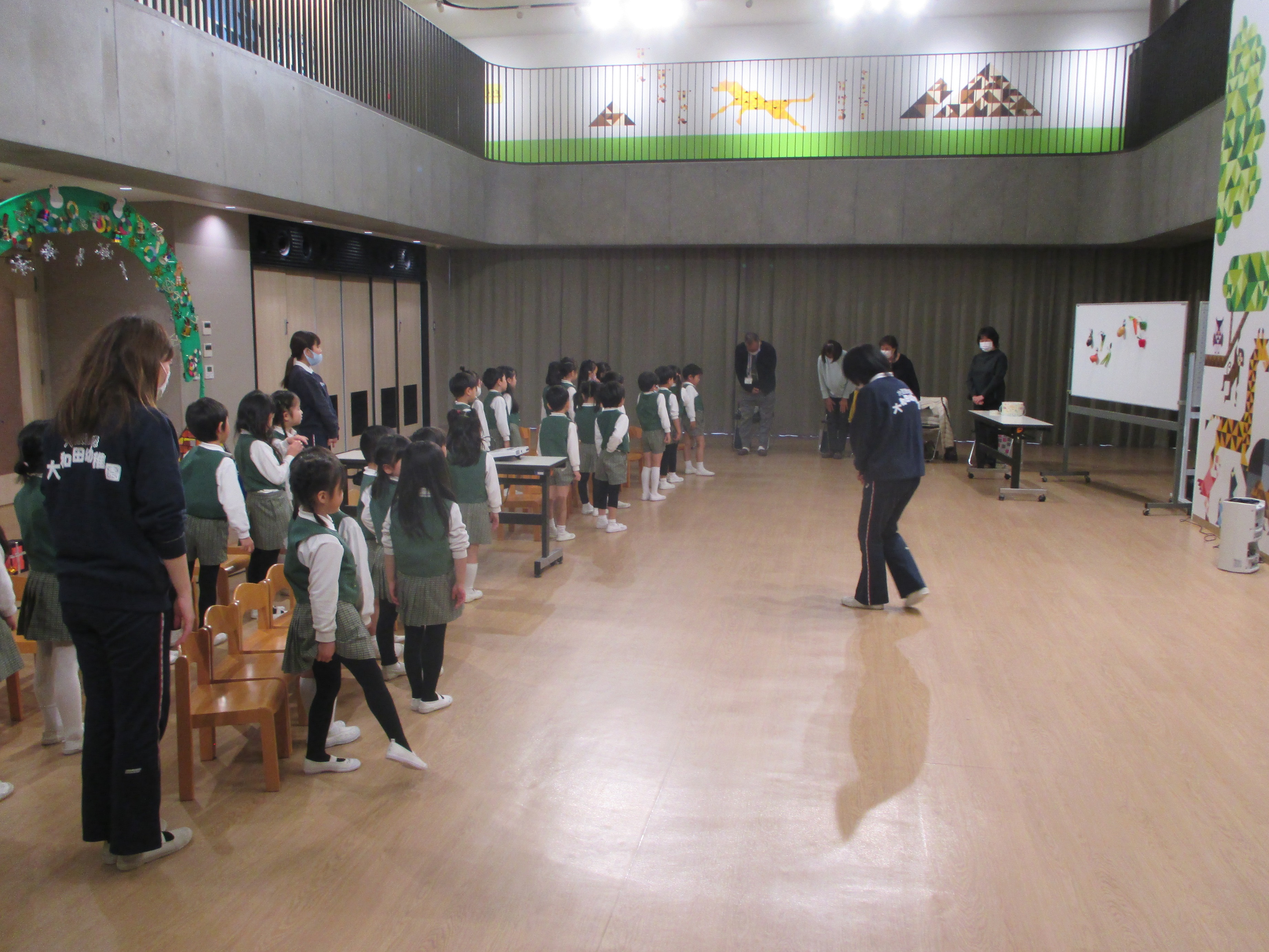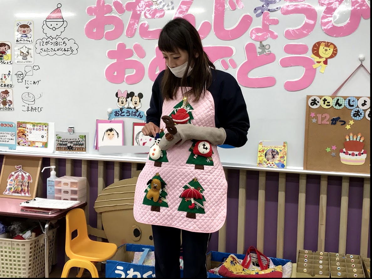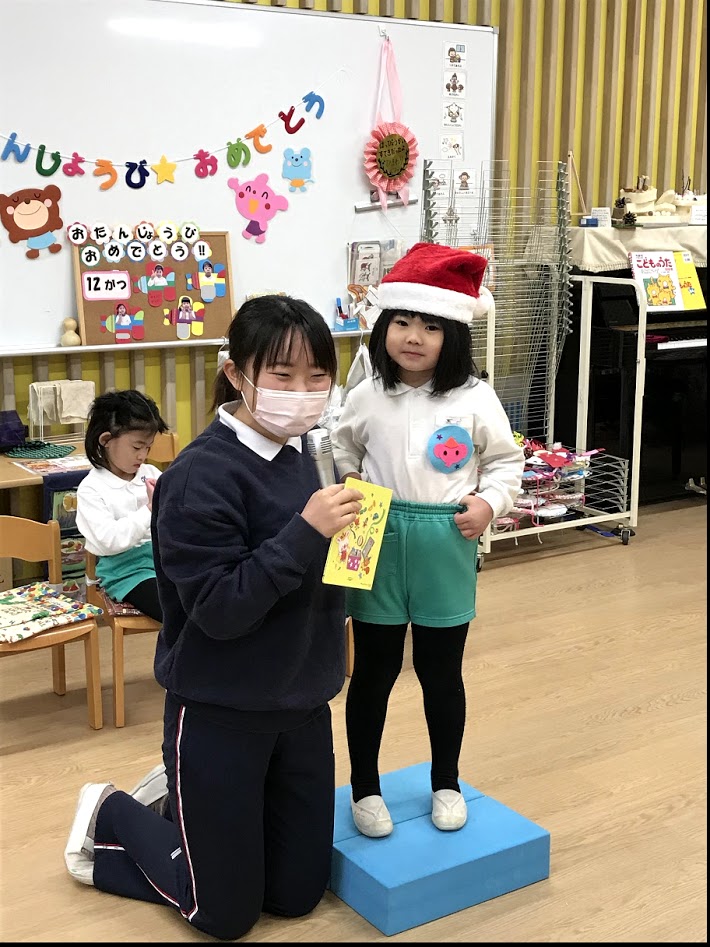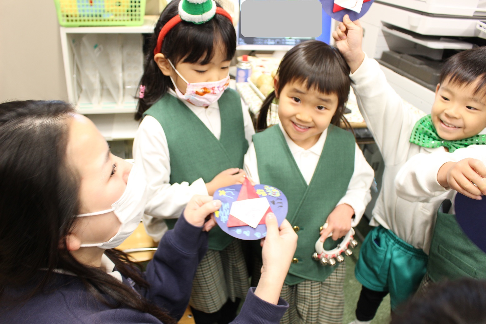 今日は、サンタクロースの衣装を着た先生と英語遊びをしました♪