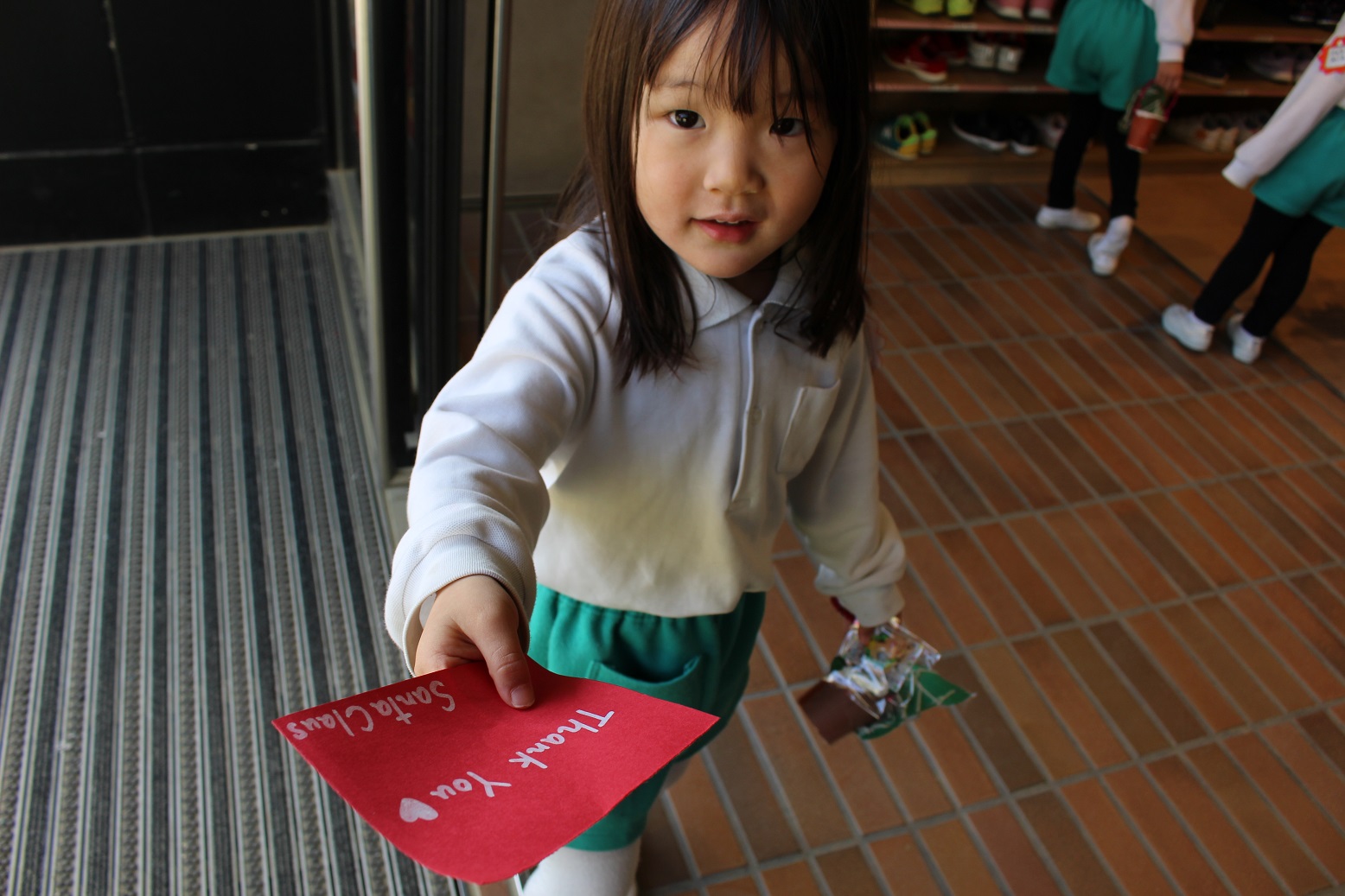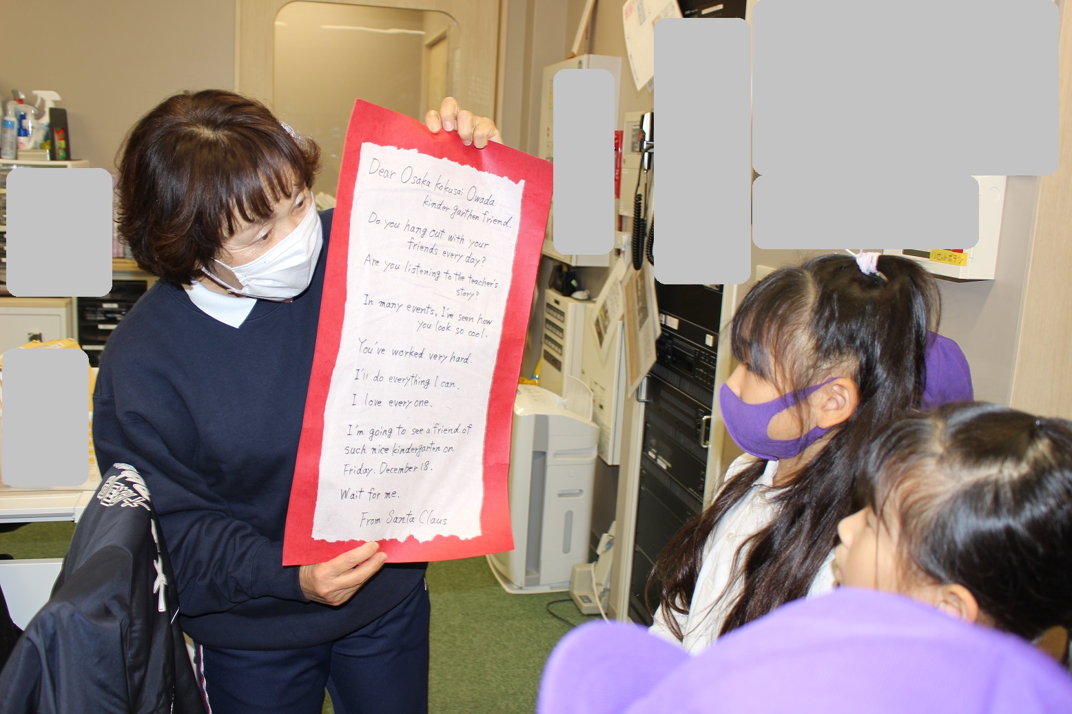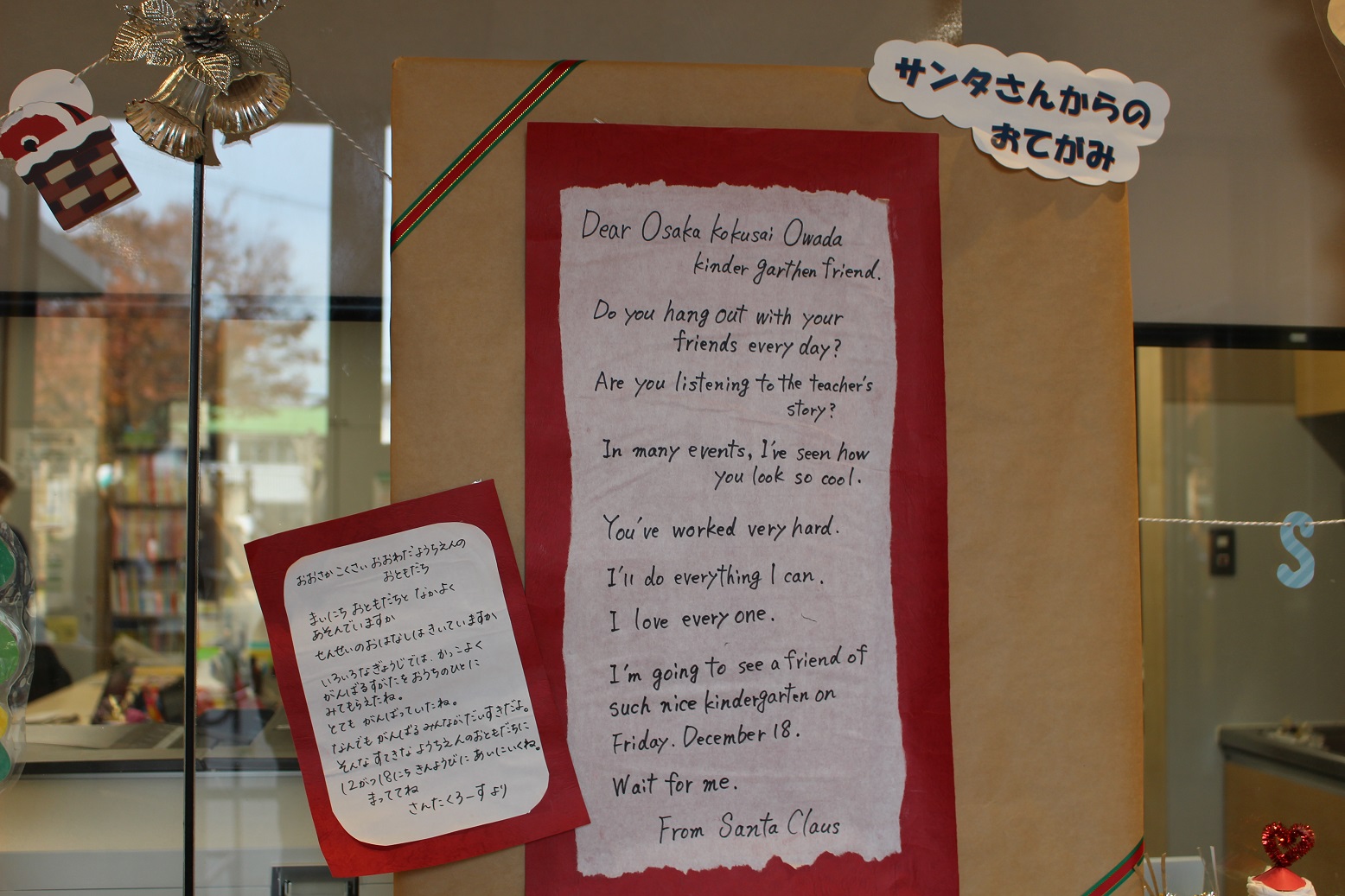 園長先生 「え!!サンタクロースよりって書いてるよ!!」と、伝えると、