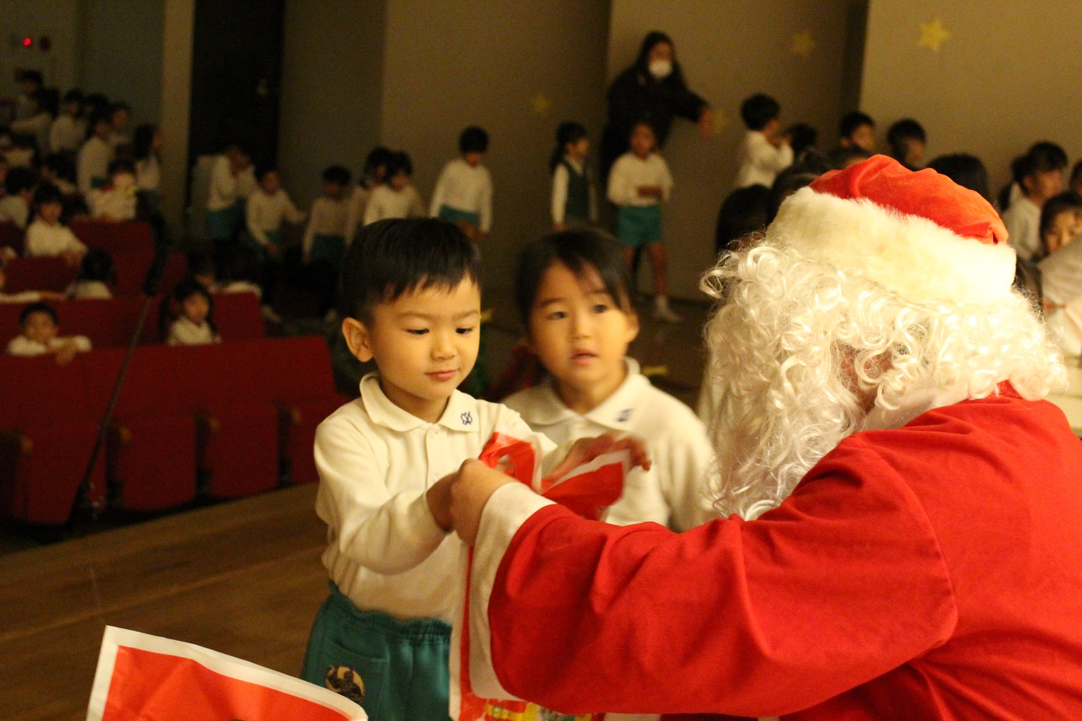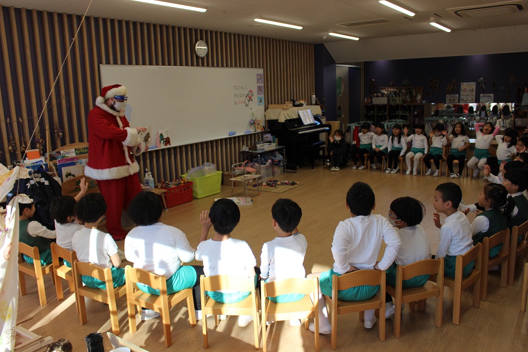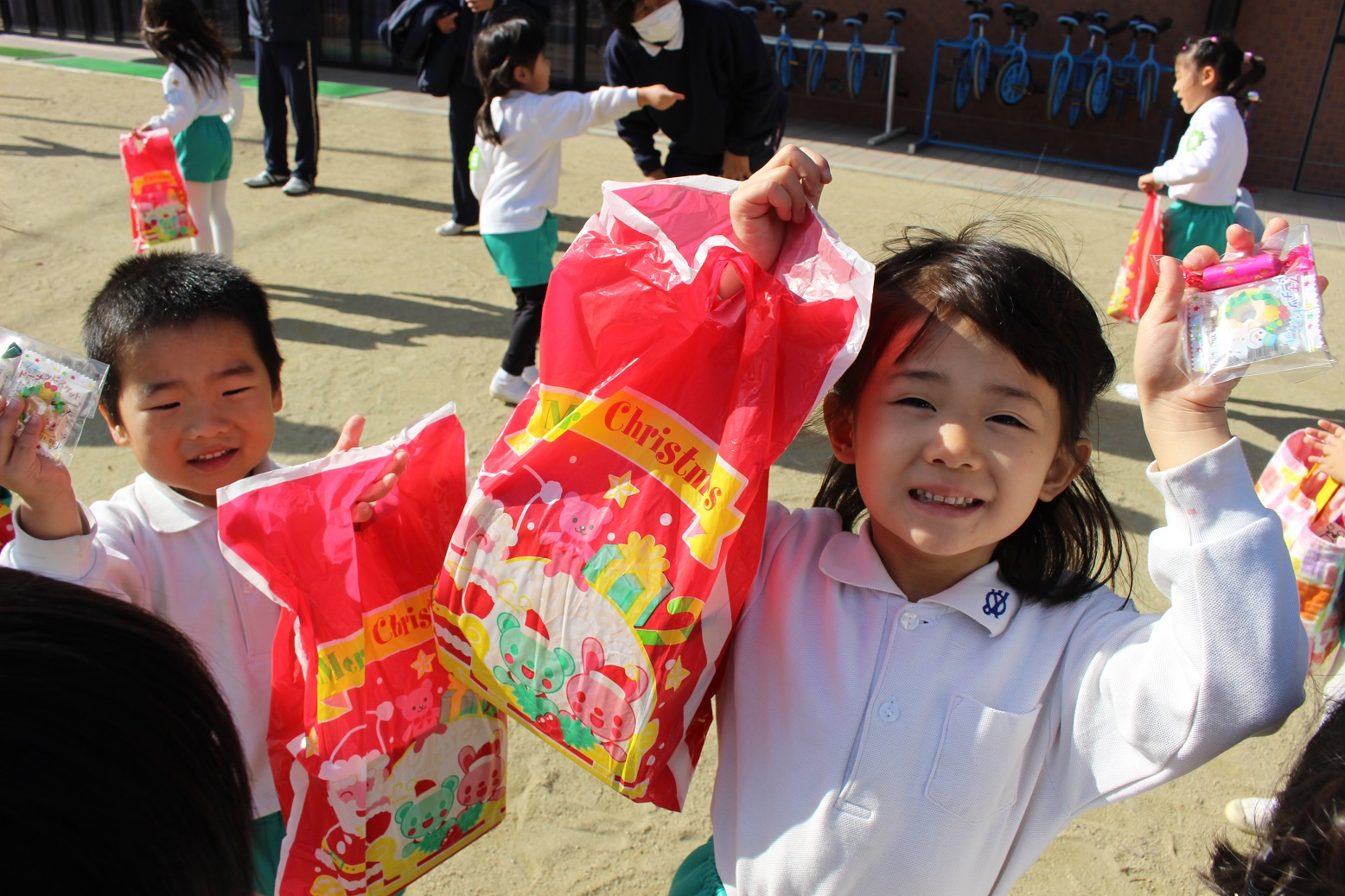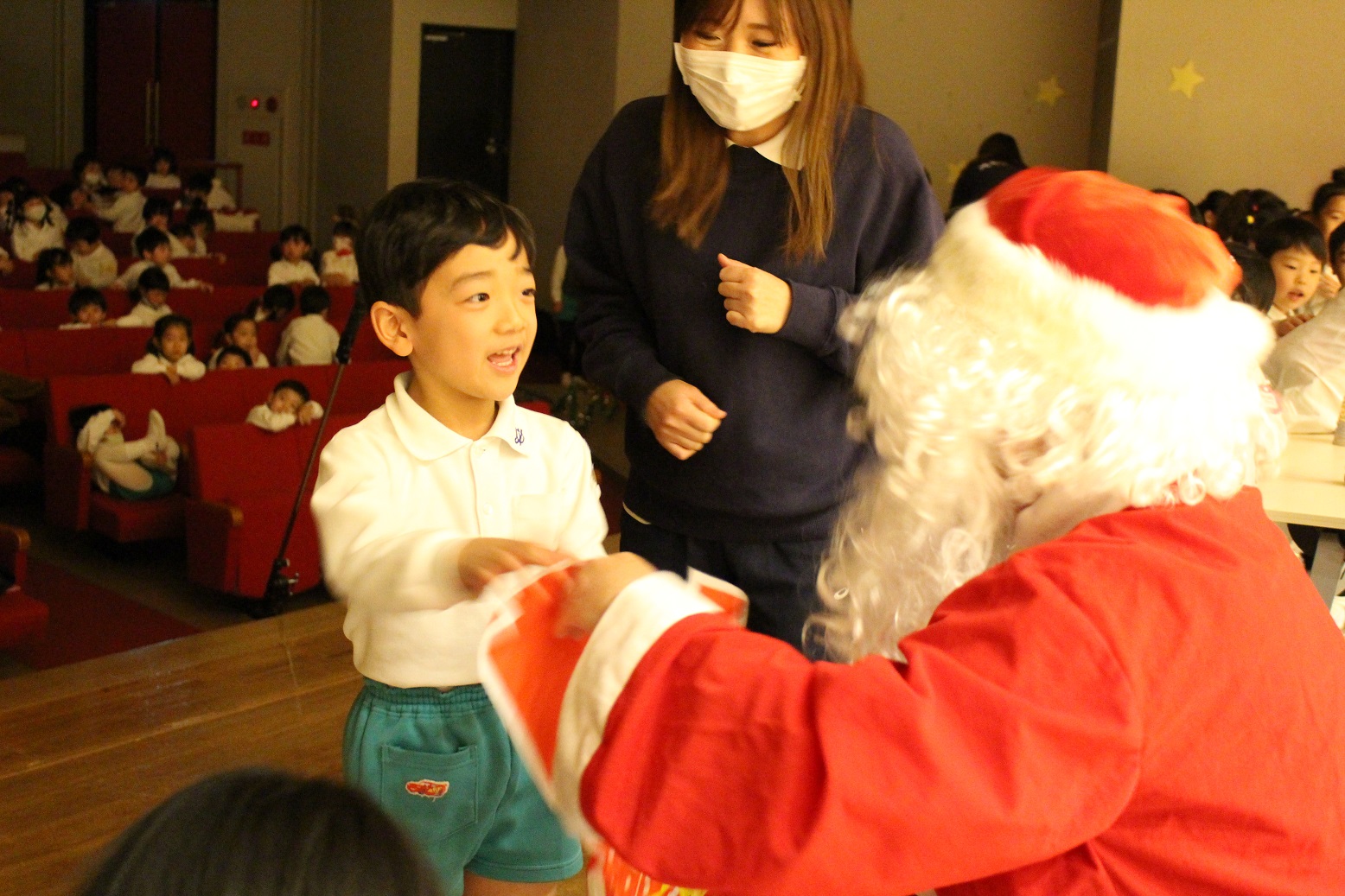 サンタさんが来てくれて、みんなプレゼントをもらいました!