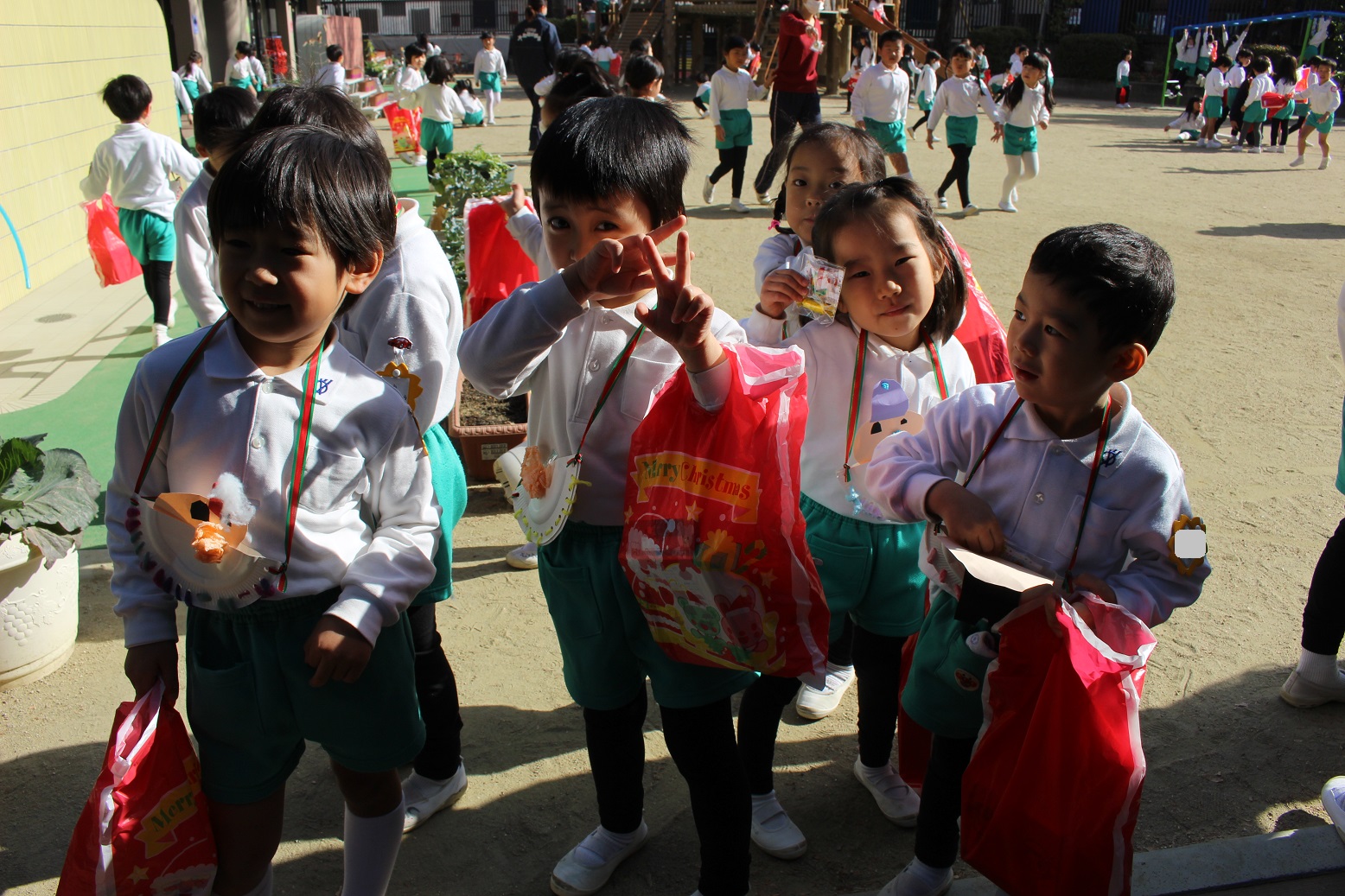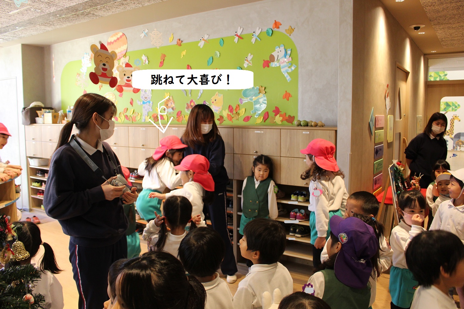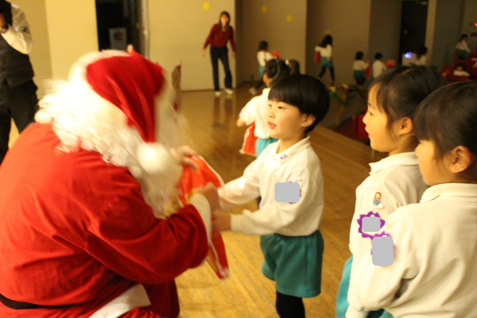 サンタさんが来てくれて、みんなプレゼントをもらいました!