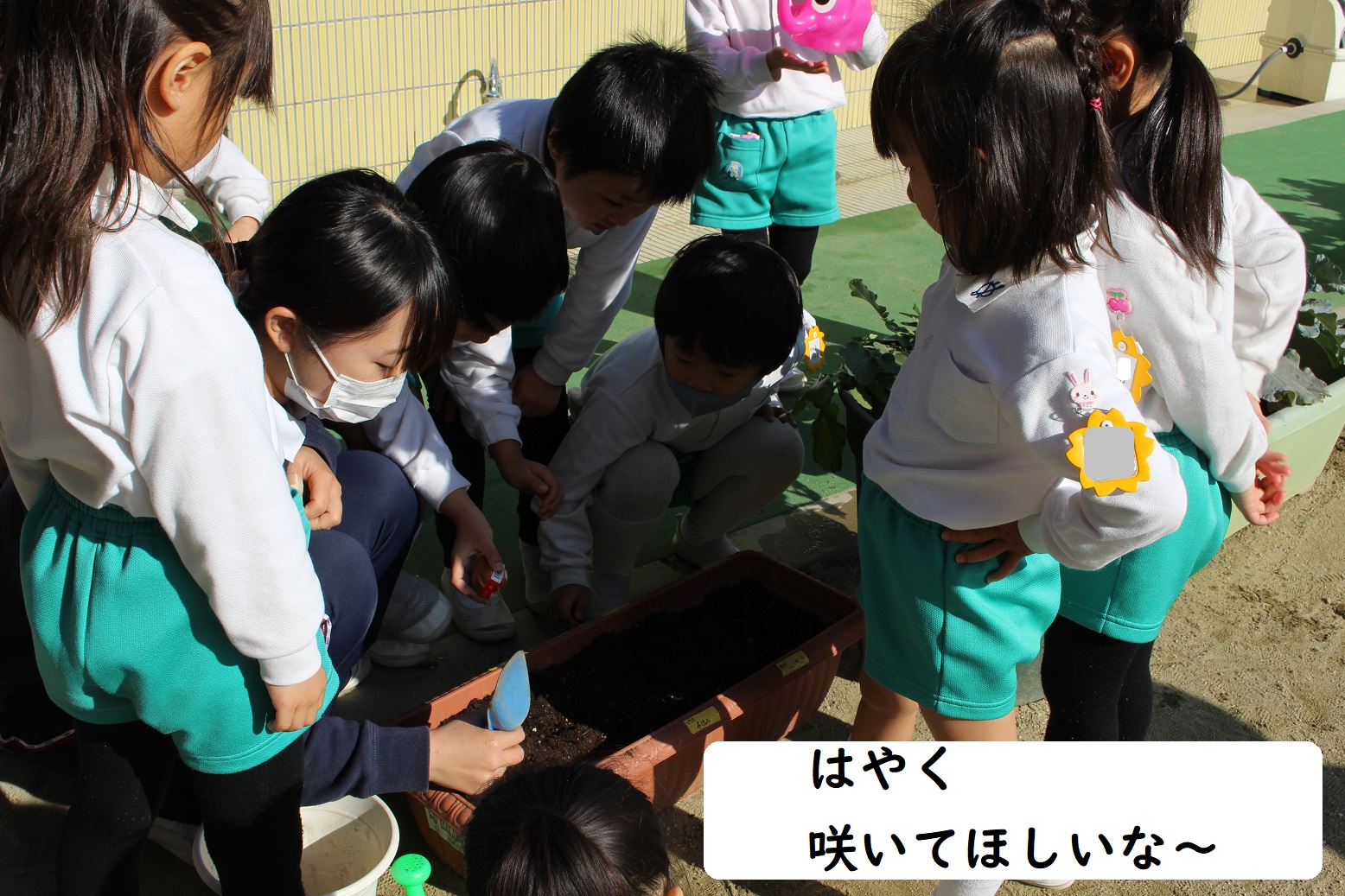 年中組の子どもたちが、年長組になる頃にきれいなチューリップが咲きます(*^-^*)