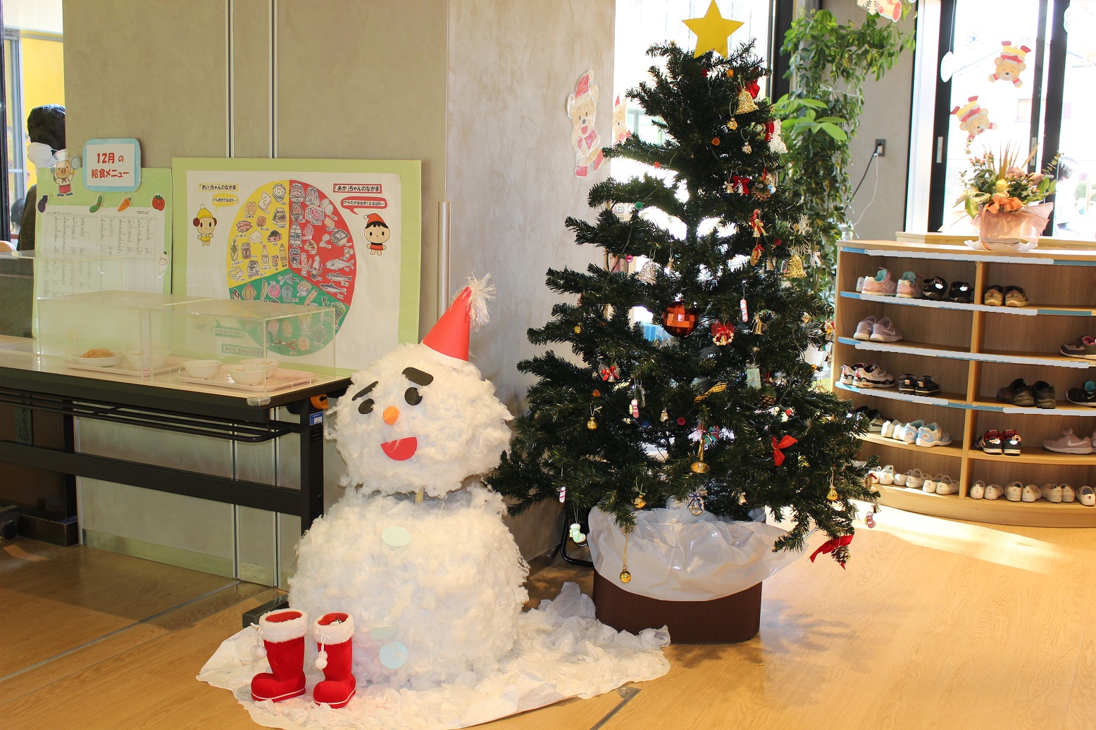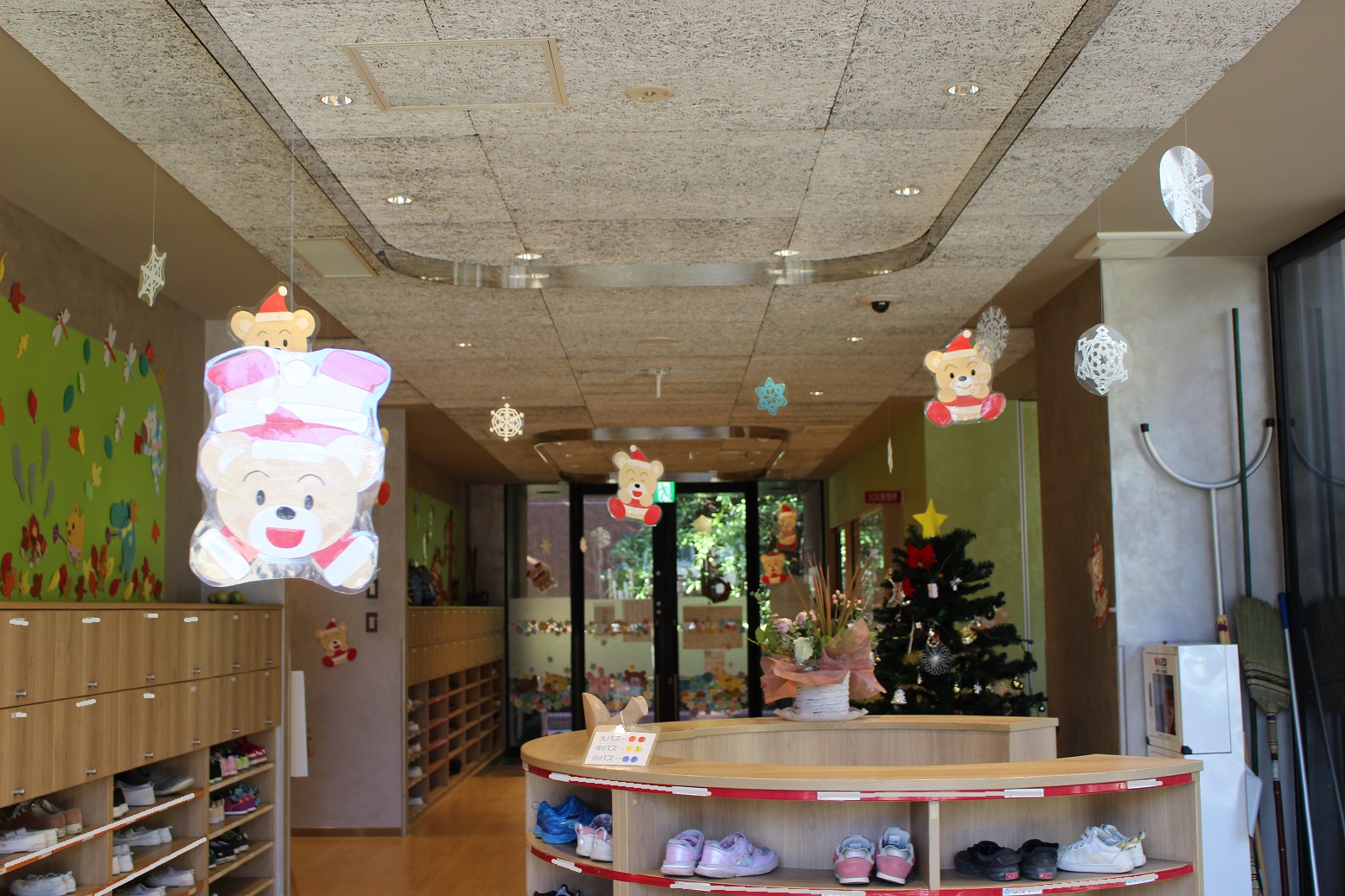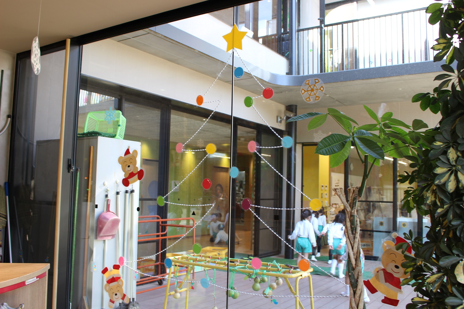 幼稚園の玄関前、ホールはクリスマスロードになっています!