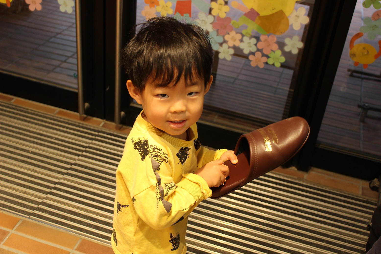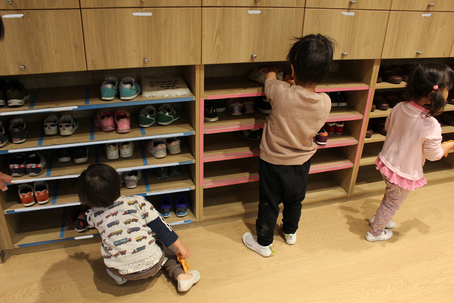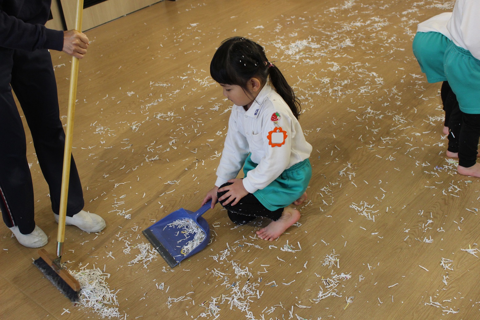 ↓ぱんだ組とひよこ組の子どもたちが玄関を大掃除!