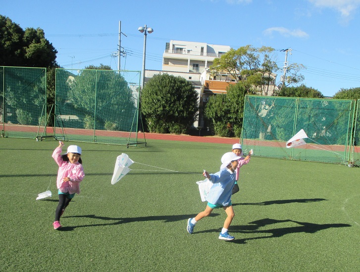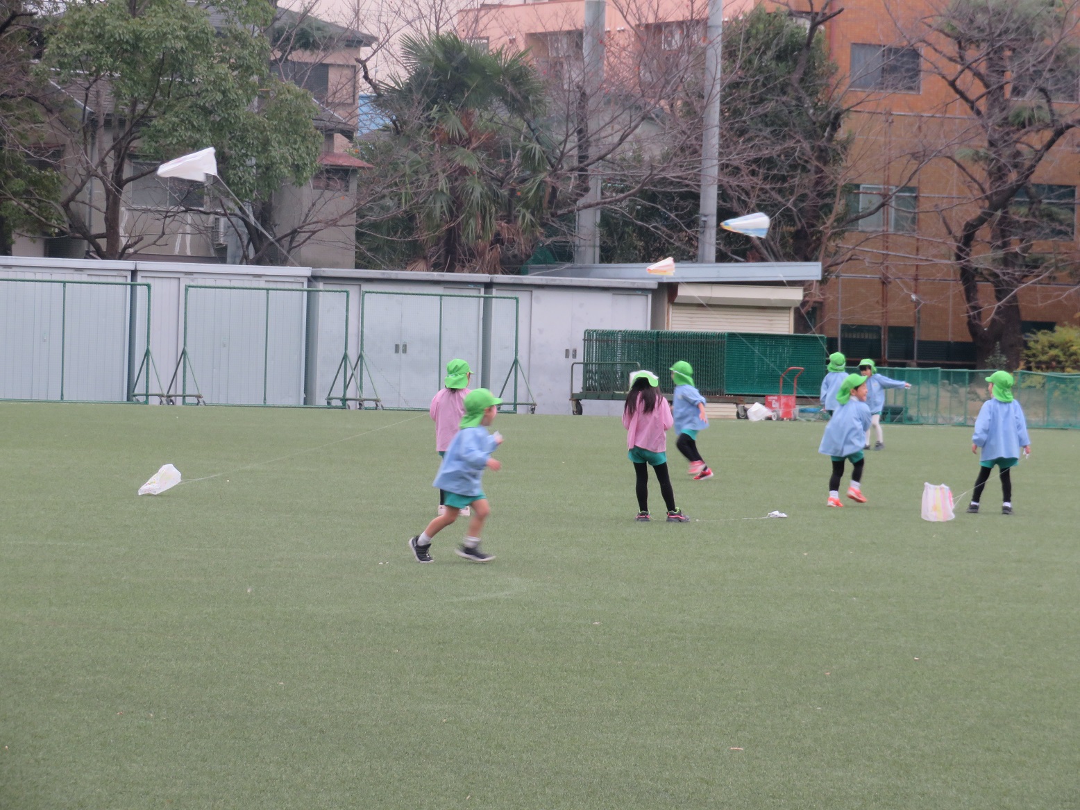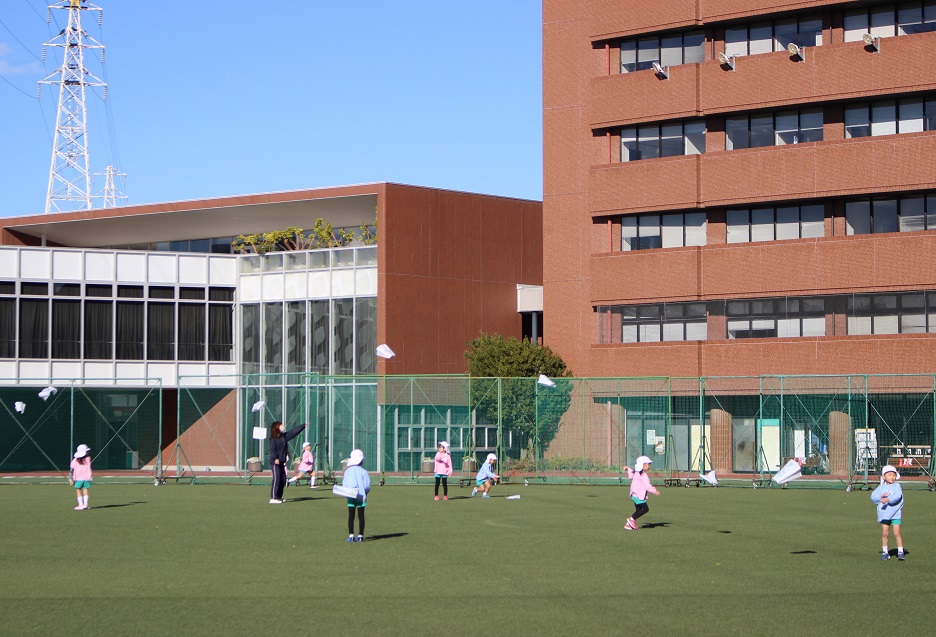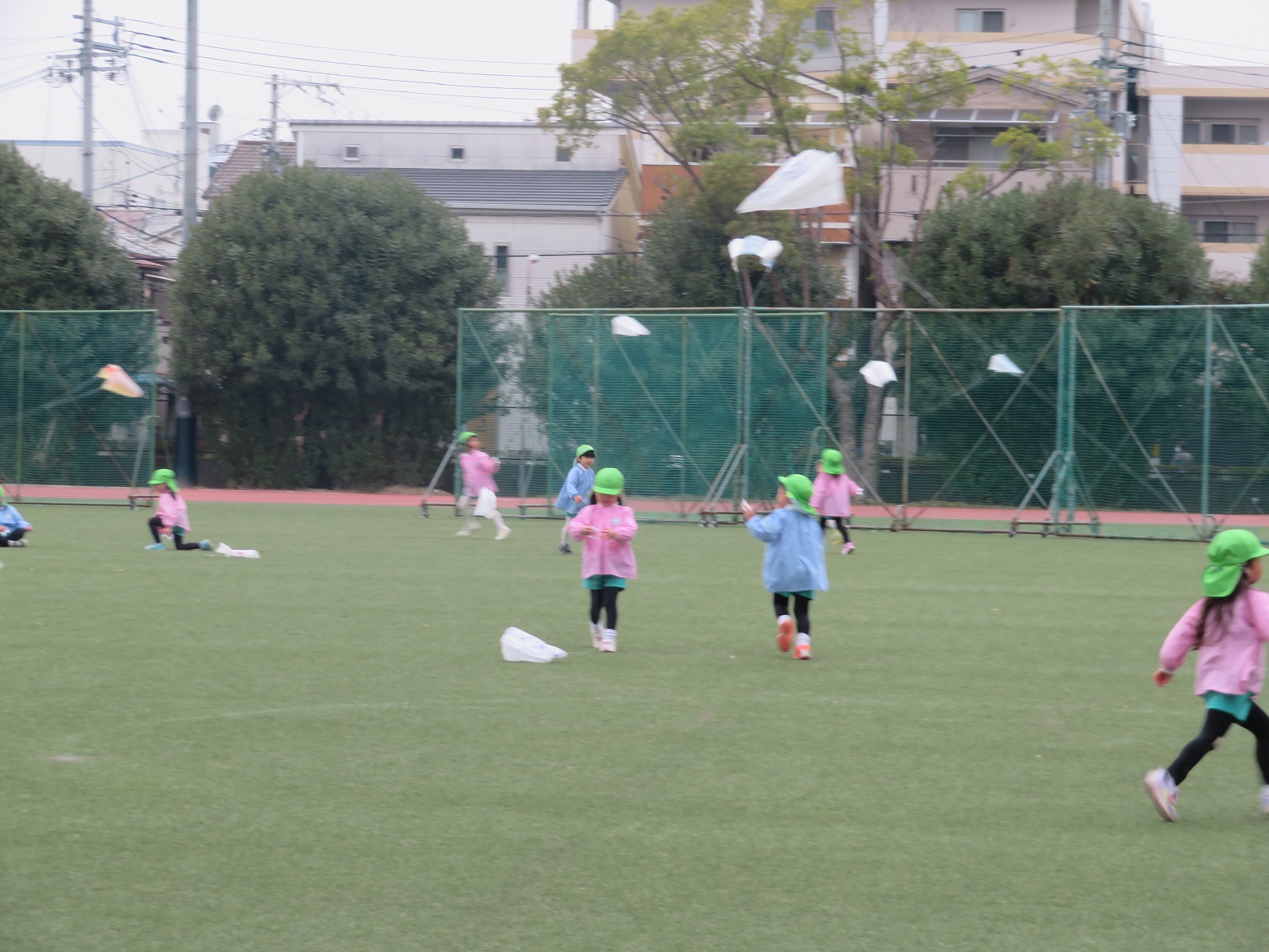 ゆり組は、大学グラウンドで凧揚げをしました!
