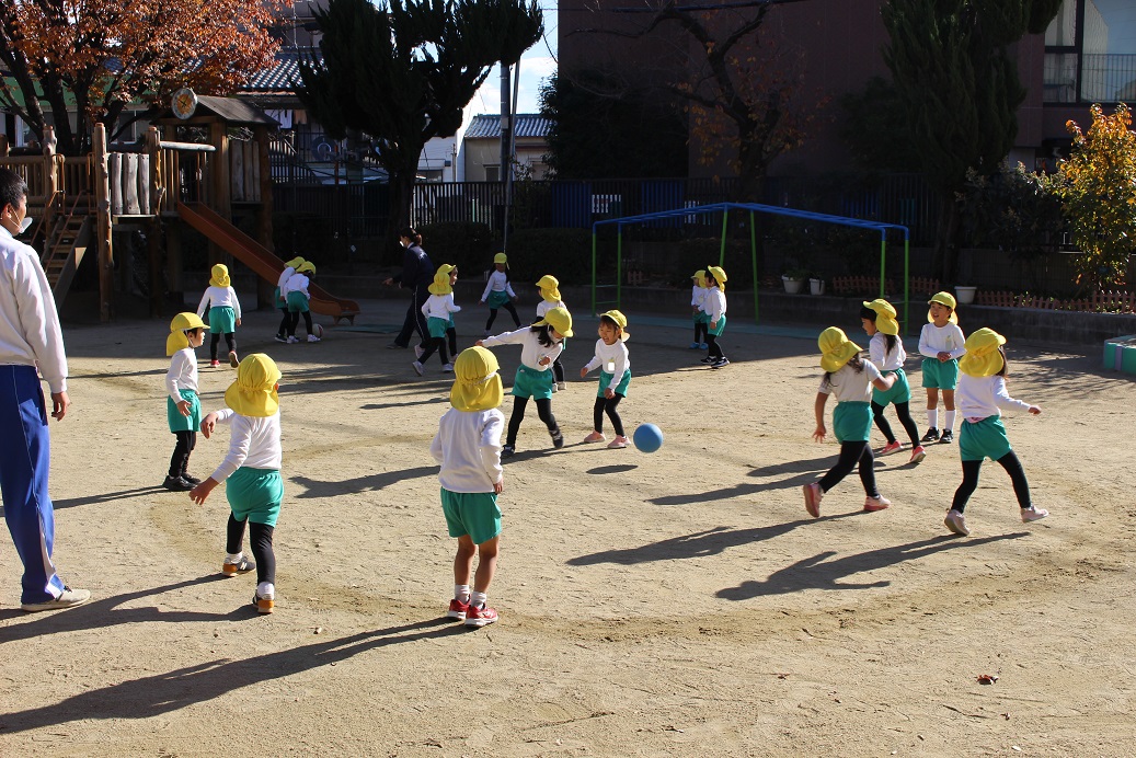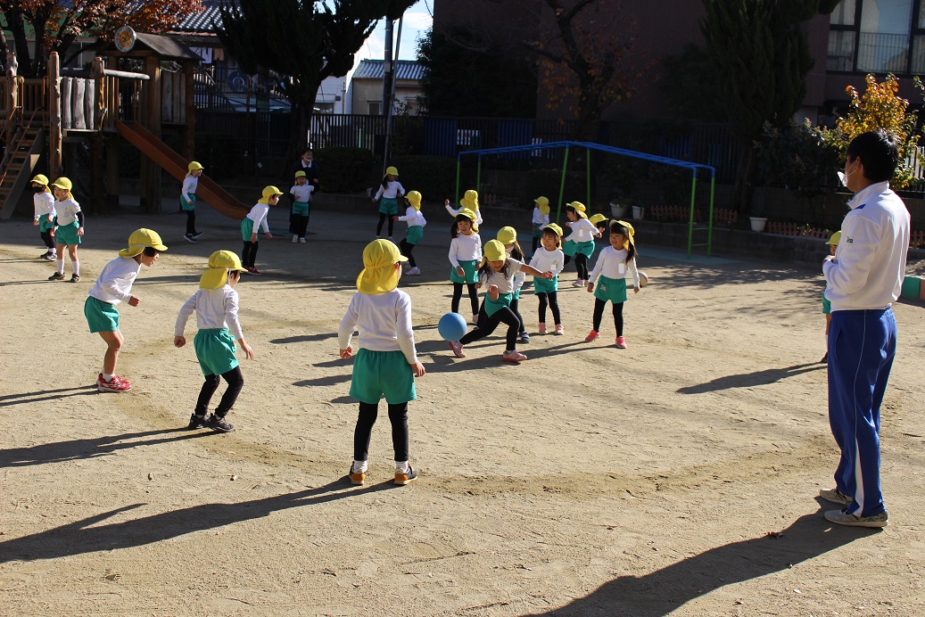 ボールをお友達のいる方へ投げたり、ボールを避けたりするのが難しそうでした。