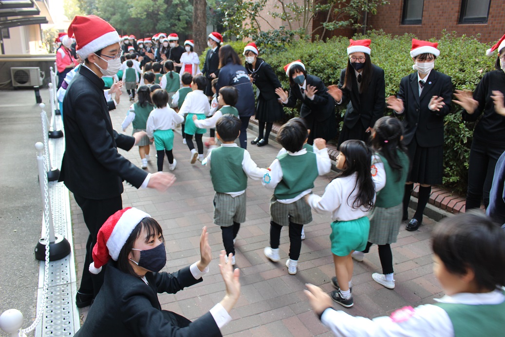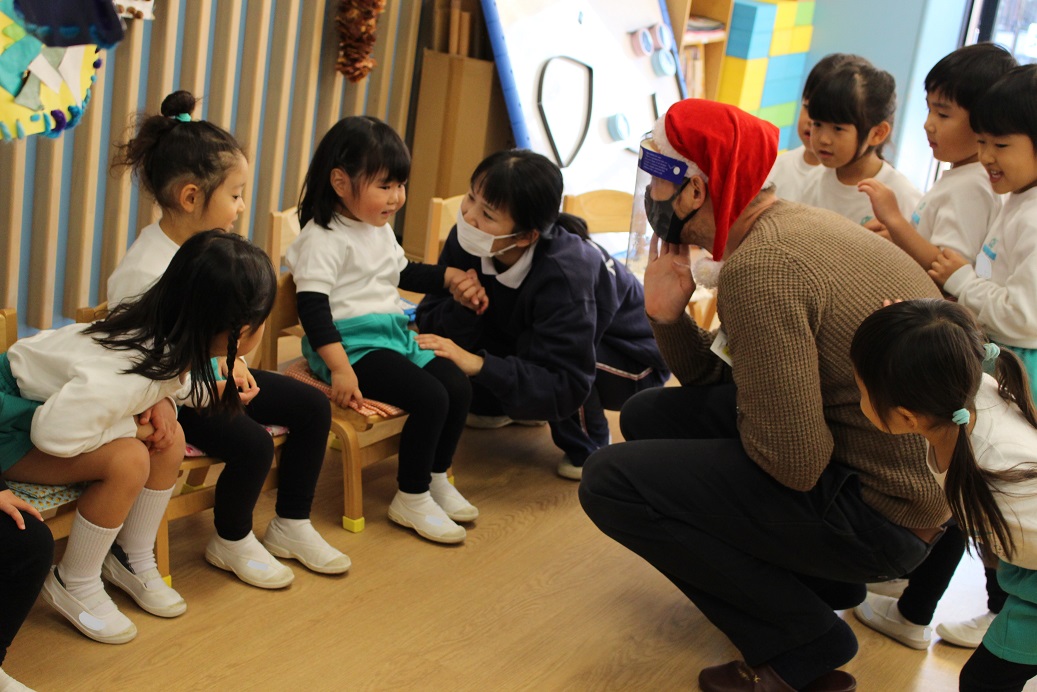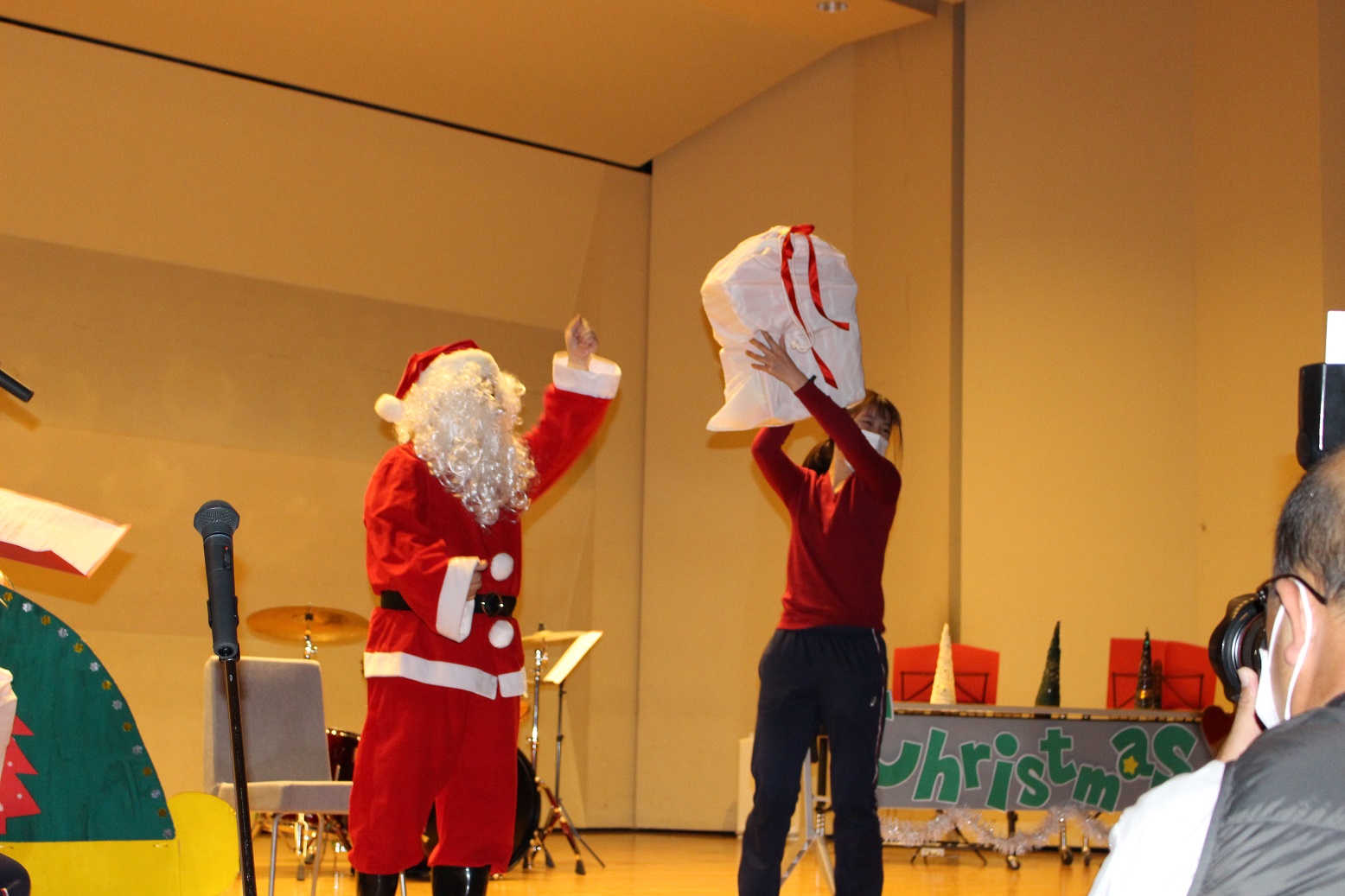 サンタクロースになった先生の英語は、いつも以上に楽しかったね!