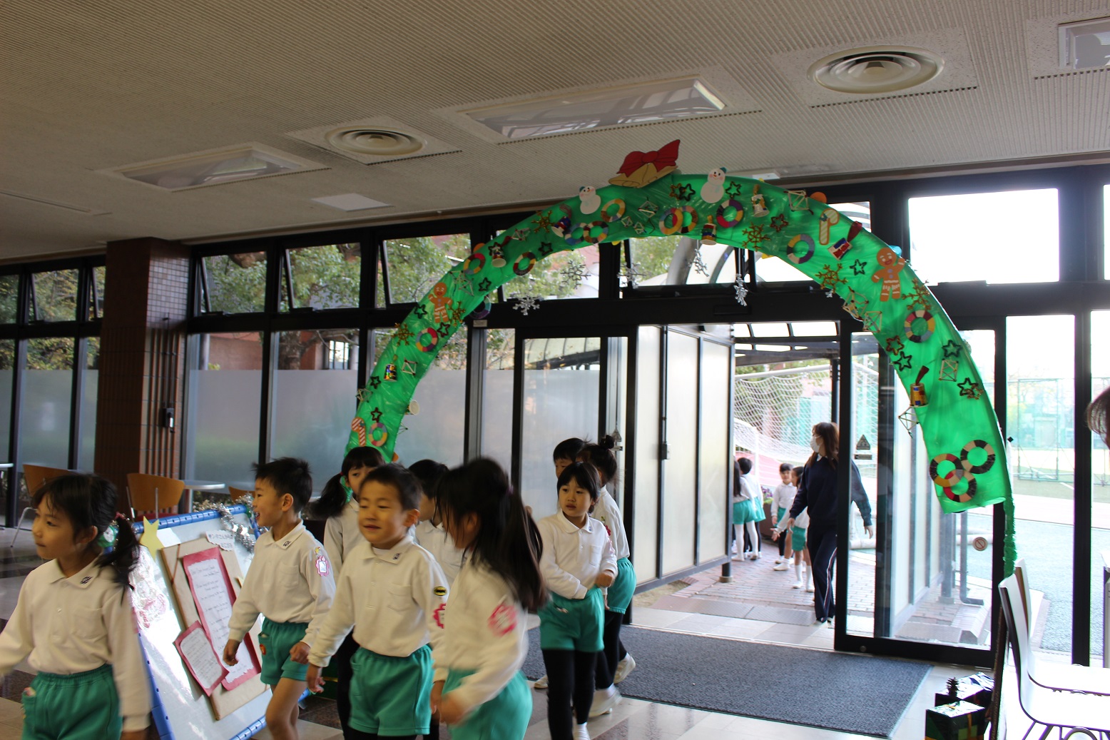 素敵なアーチを通って会場に行き、年長組の子どもたちの"うさぎ野原のクリスマス"の歌で会が始まりました!!