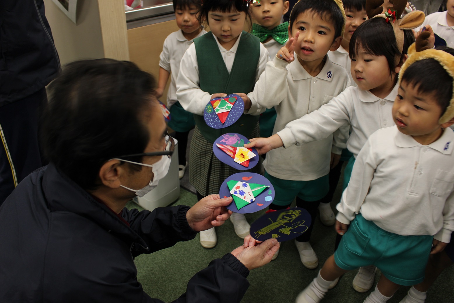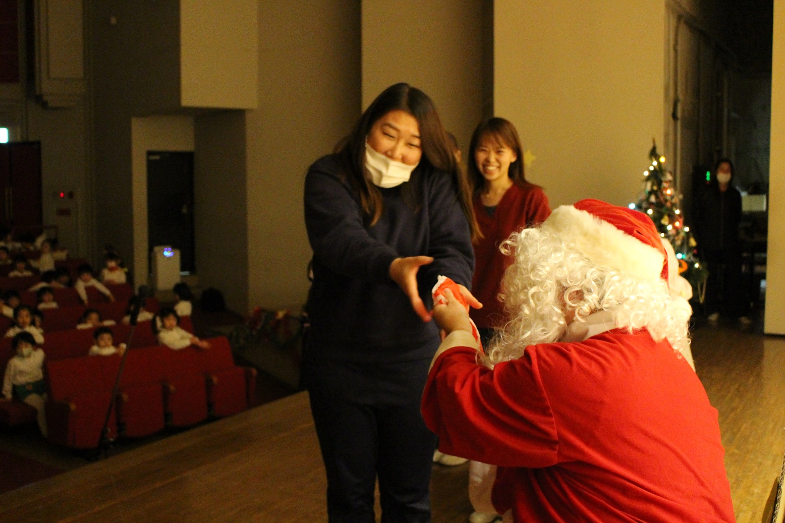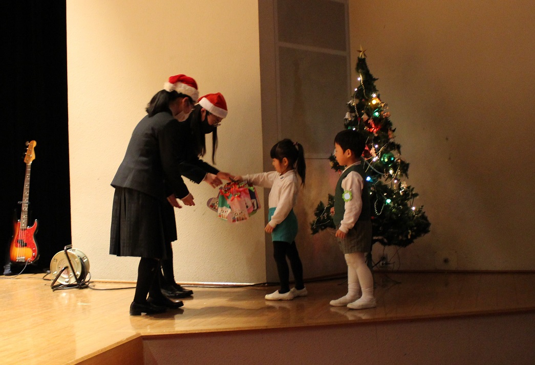 楽しくてステキな演奏をしてくださったお兄さん、お姉さんへお礼のクリスマスプレゼントを渡しました!