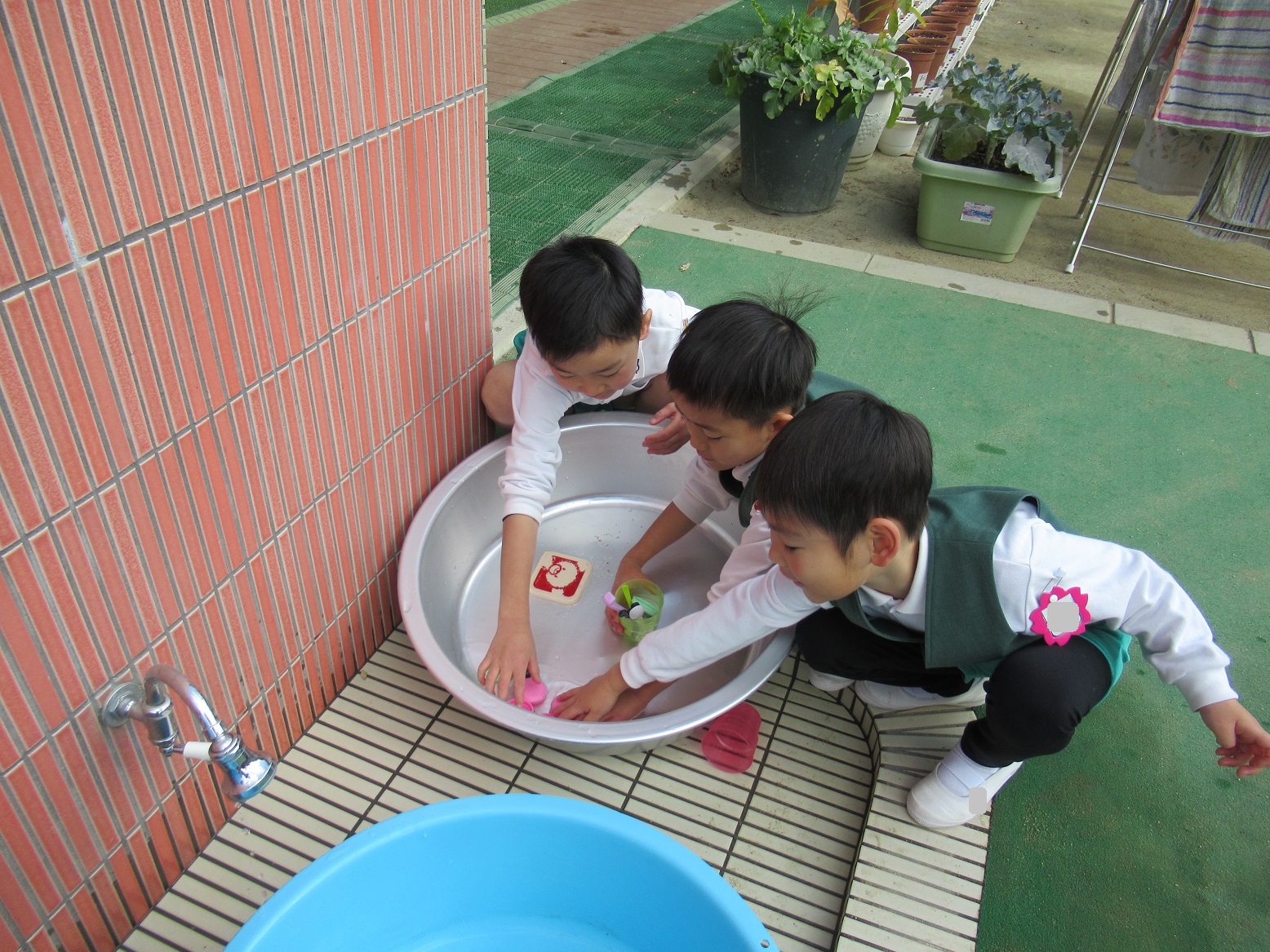 部屋のおもちゃを洗ってくれている3人の男の子。きれいになりましたね!ありがとう(*^-^*)