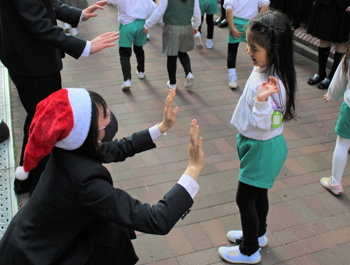 12月23日 メモリアルホールで、大和田中学校・高等学校のお兄さん、お姉さんが