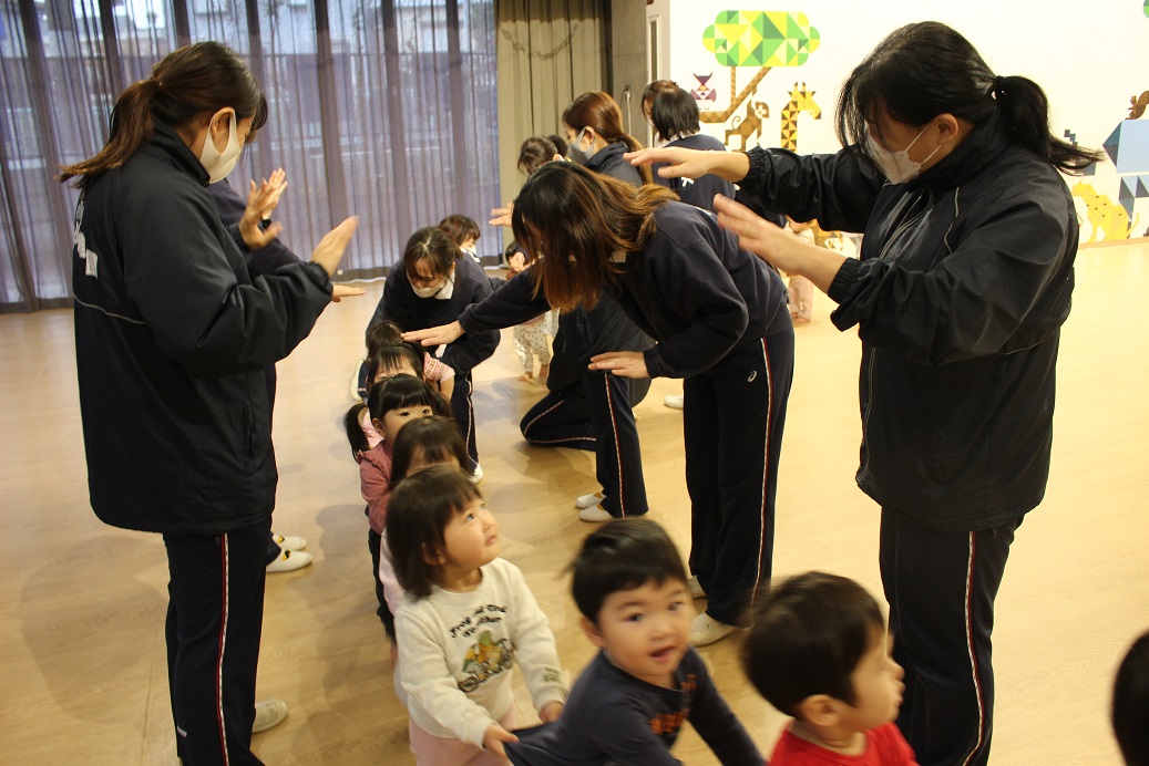 こあら・うさぎ組も「うんとこしょ!どっこいしょ!」と応援。