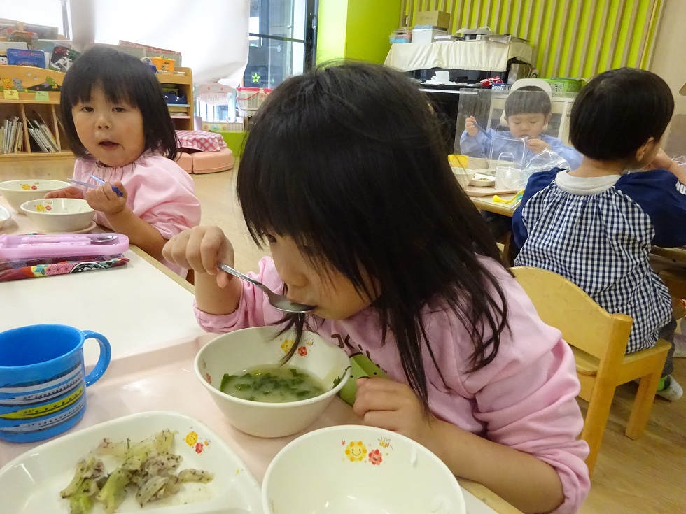 いつもの給食とは違うお味噌汁、おいしかったぁ!