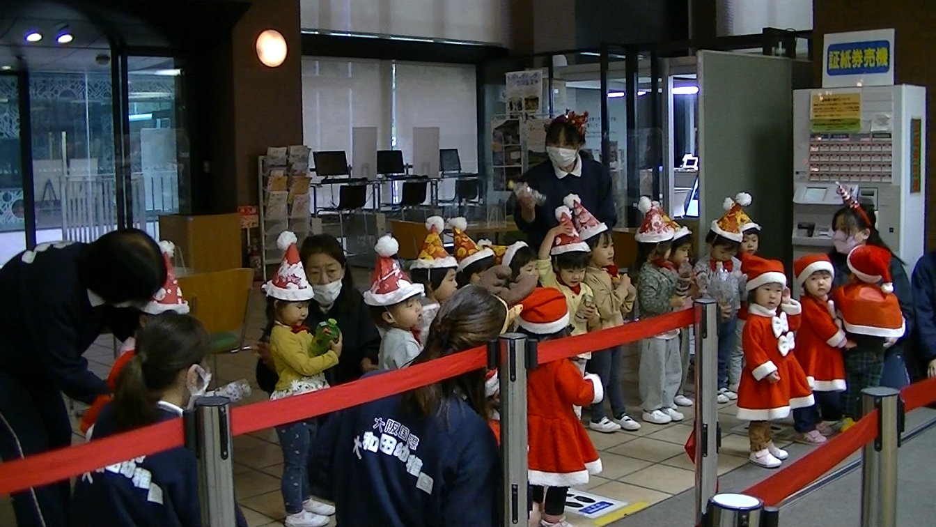 サンタクロースの格好をしたうさぎ組の子どもたちは、