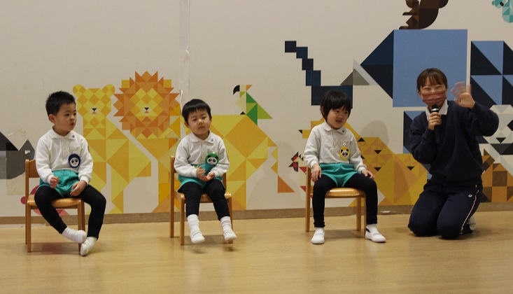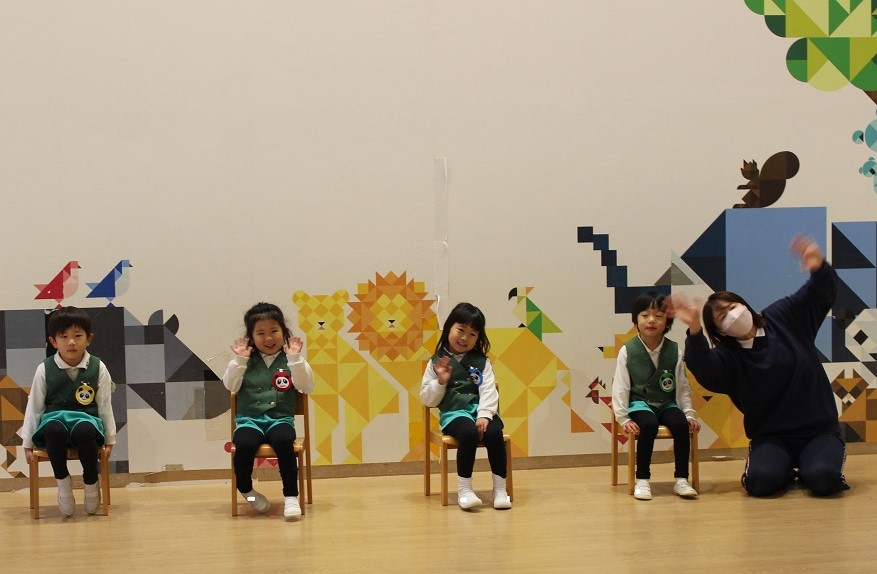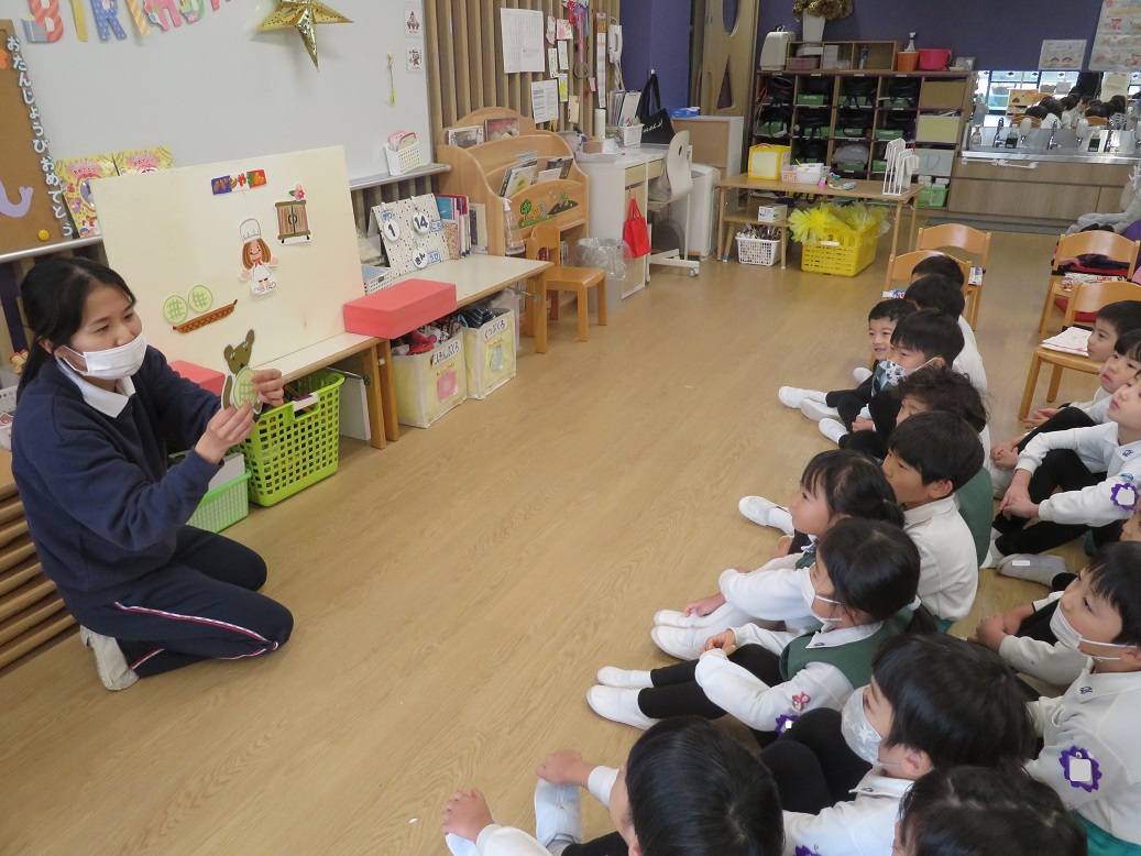 年長組さんは、みんなで歌を歌ったり、先生がパネルシアター"5つのメロンパン"を