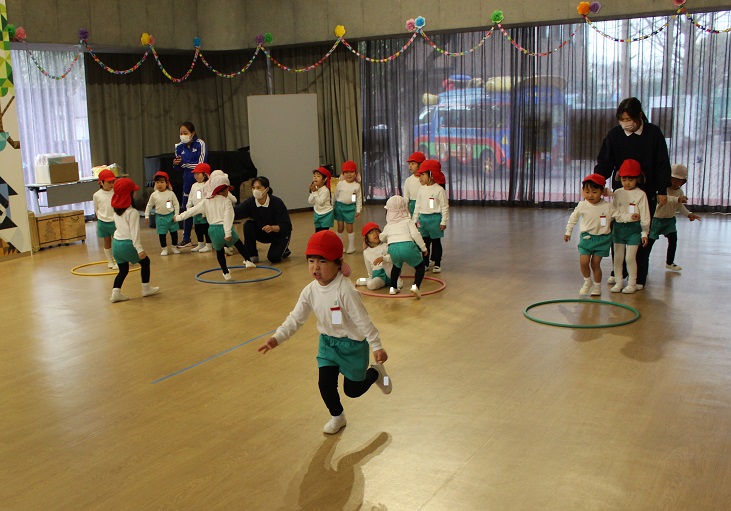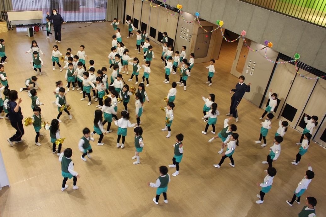 年中組は、すずらん組のお友達のツバメタンスを見たり、みんなで一緒にダンスをしました。