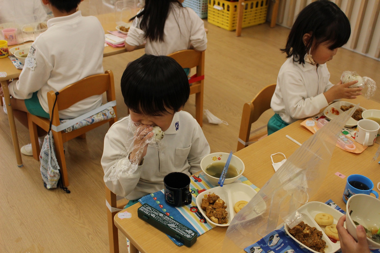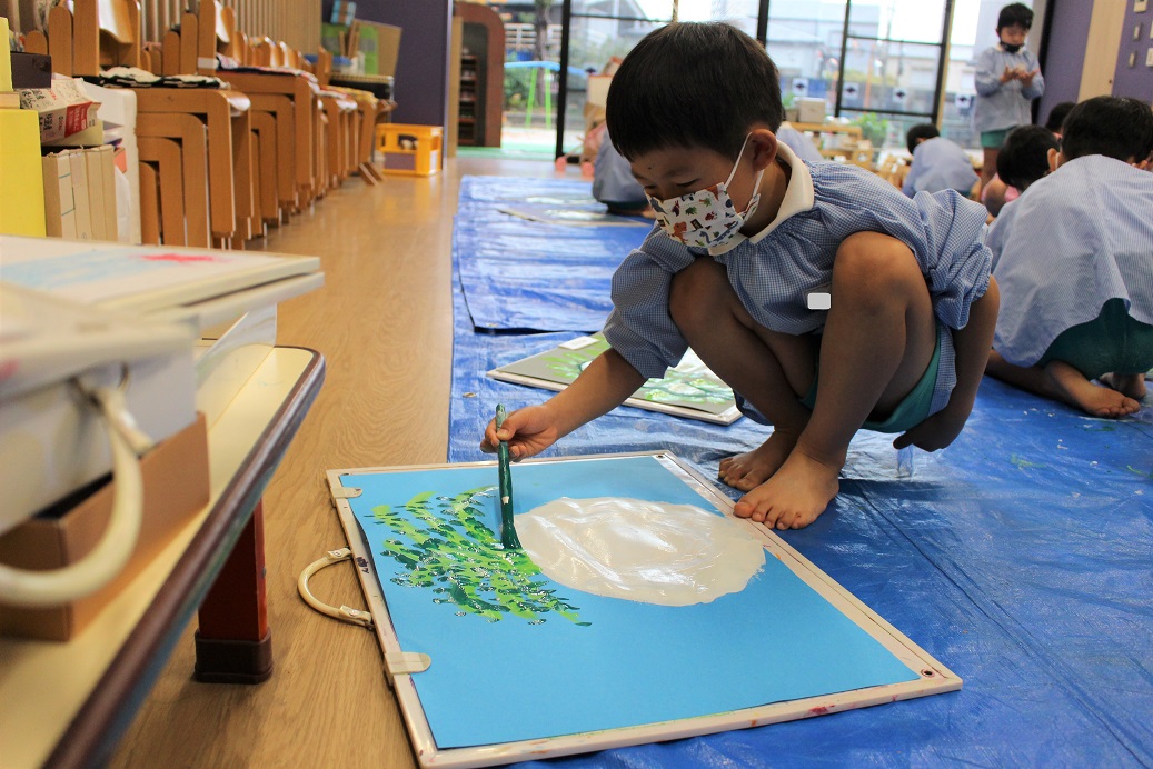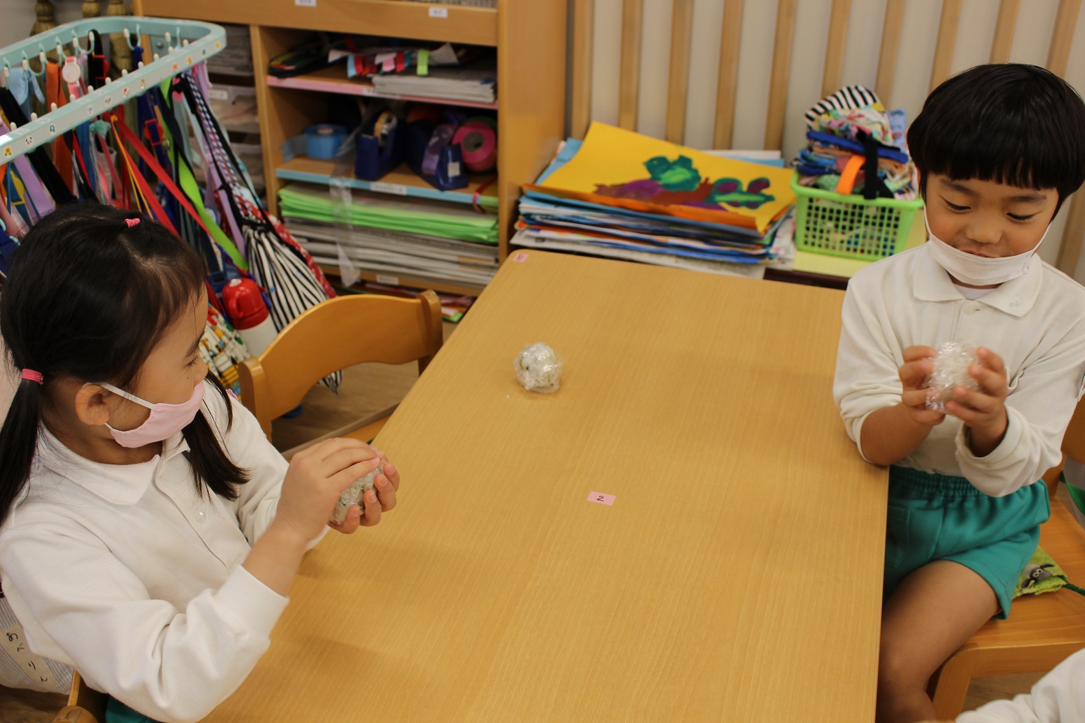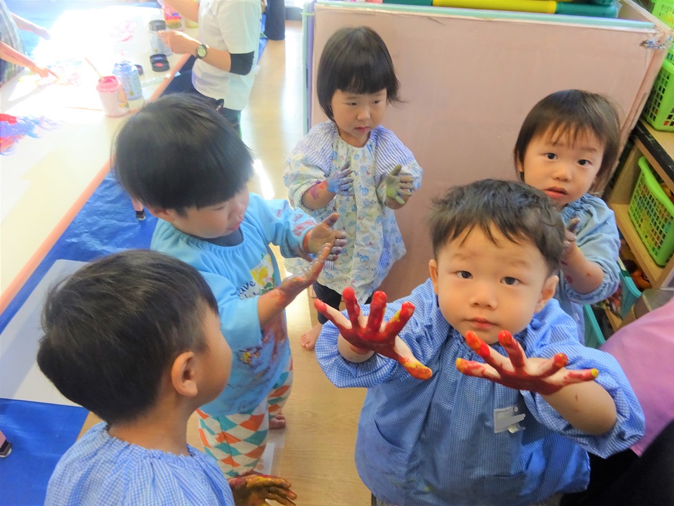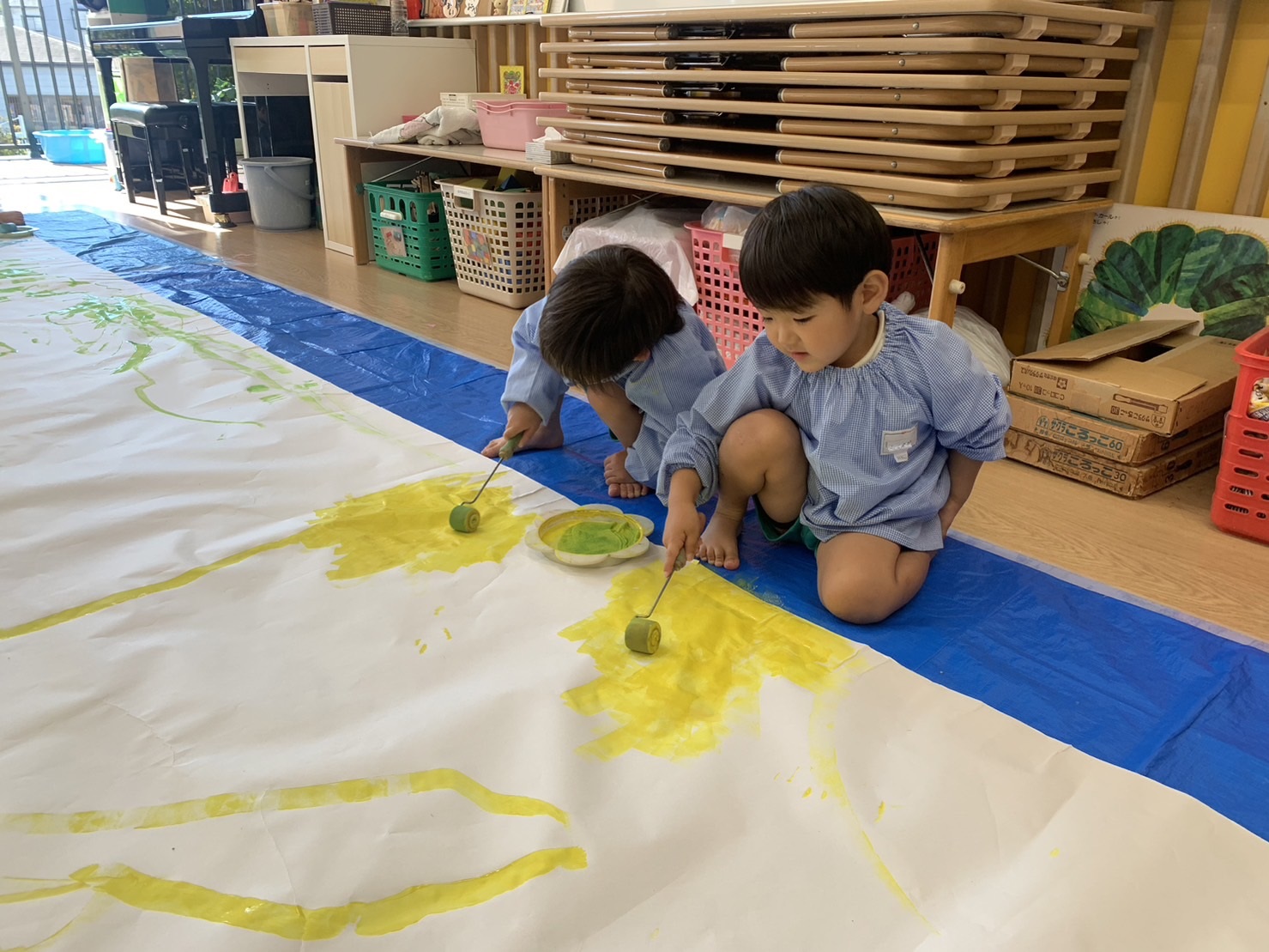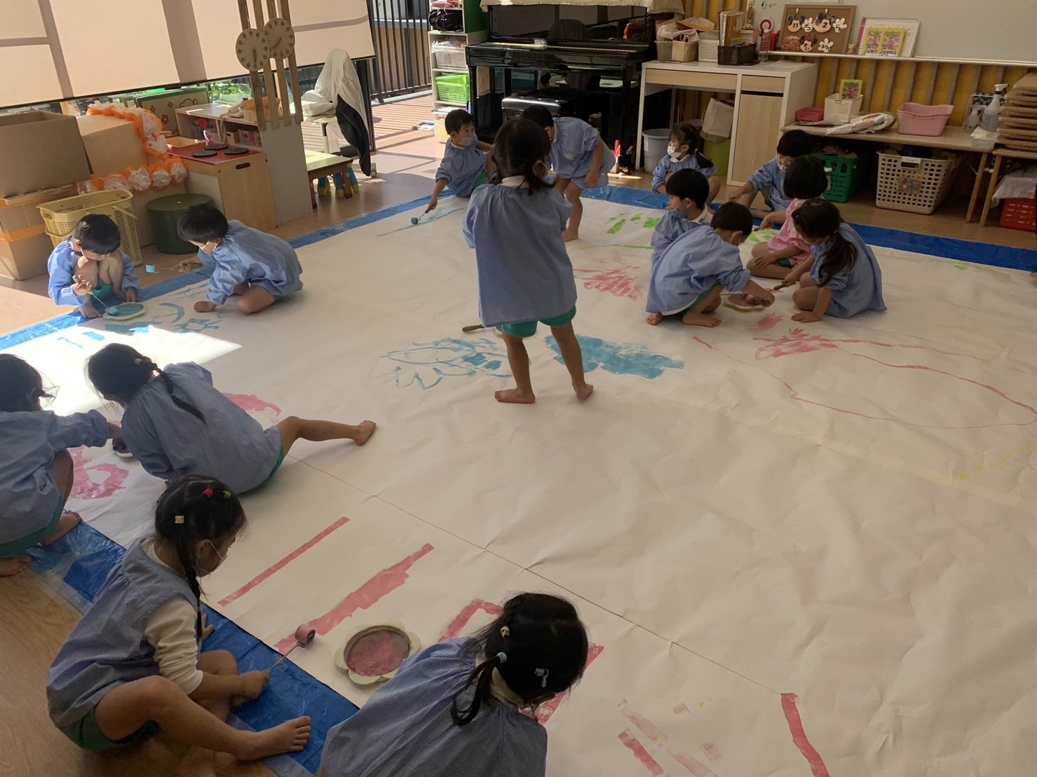 こあら組の保育室では、小さなこどもの手でも破きやすい新聞紙を