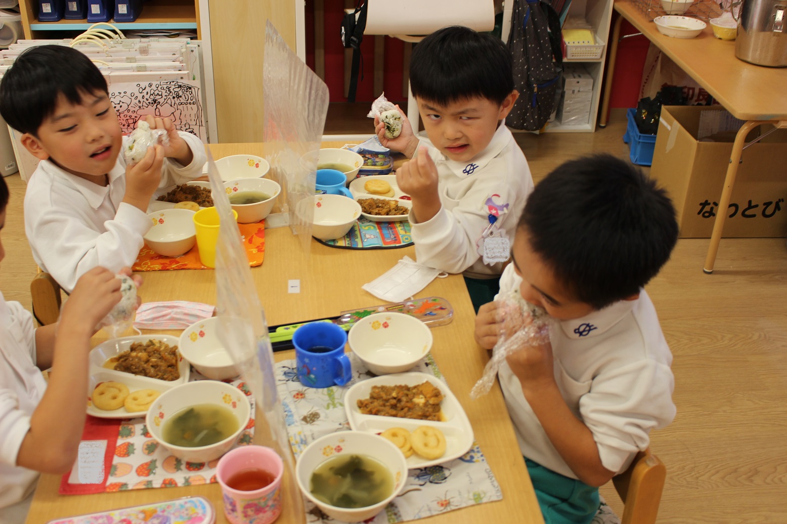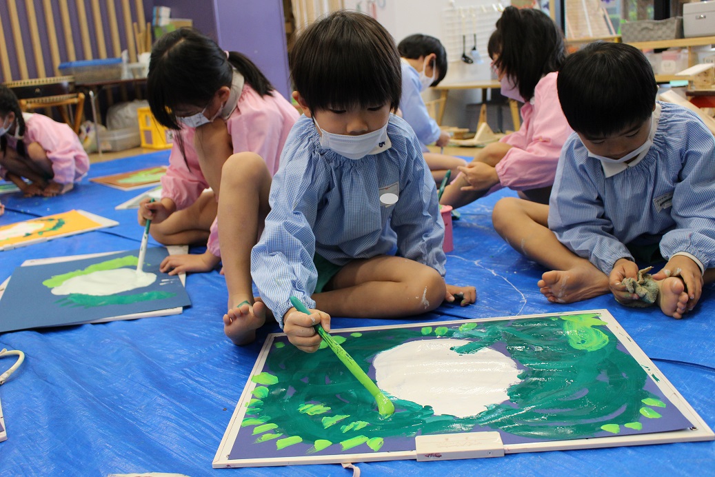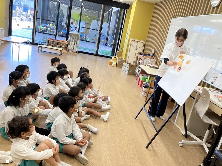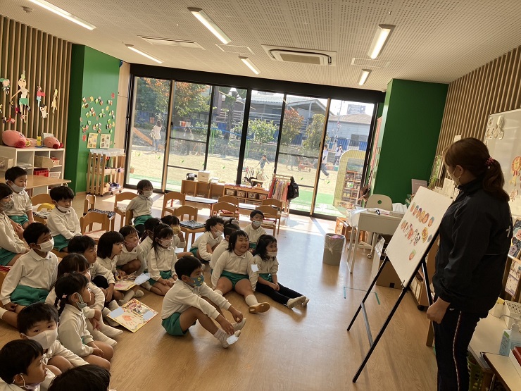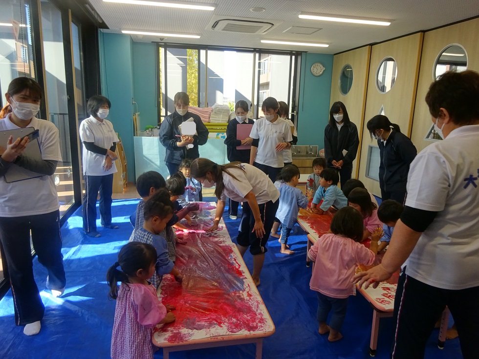 今日から大阪国際大学コミュニケーション学科の学生さん4人が実習にきて子ども達と