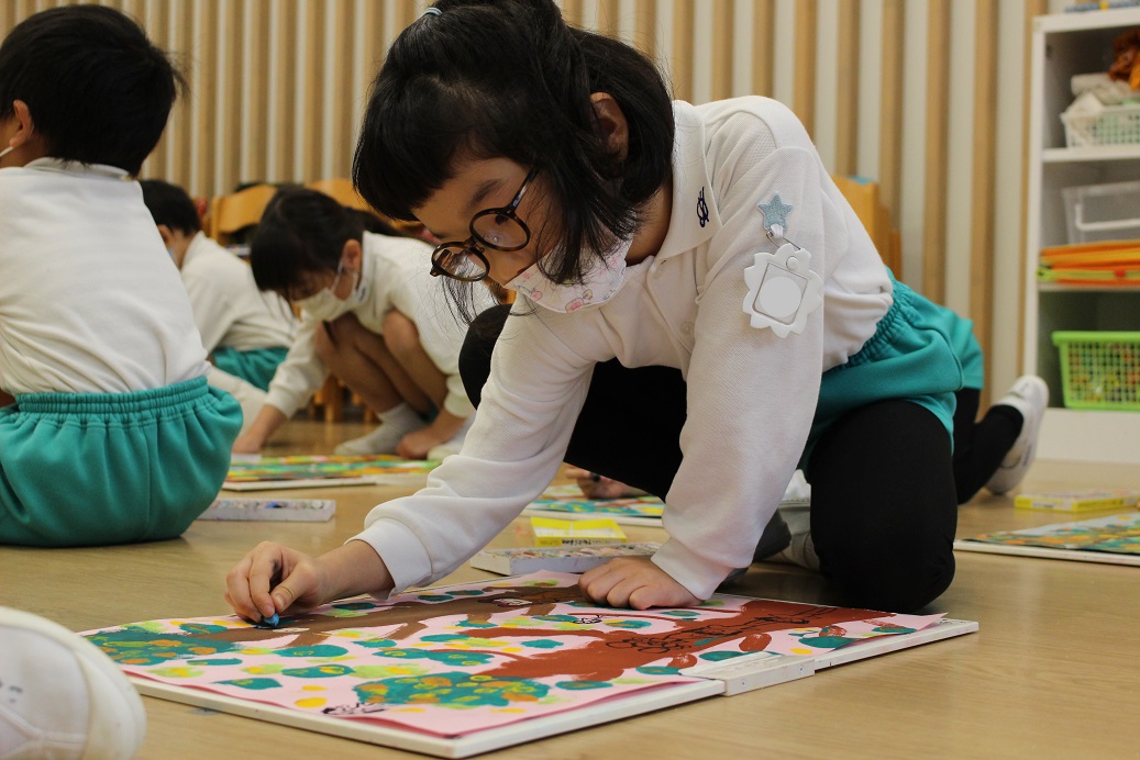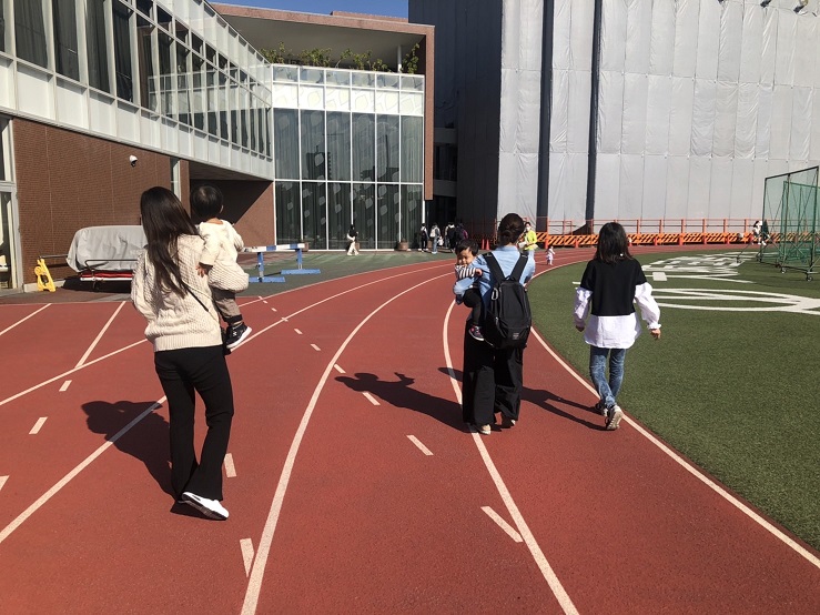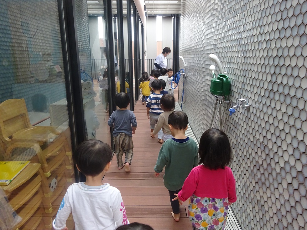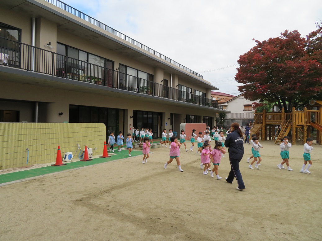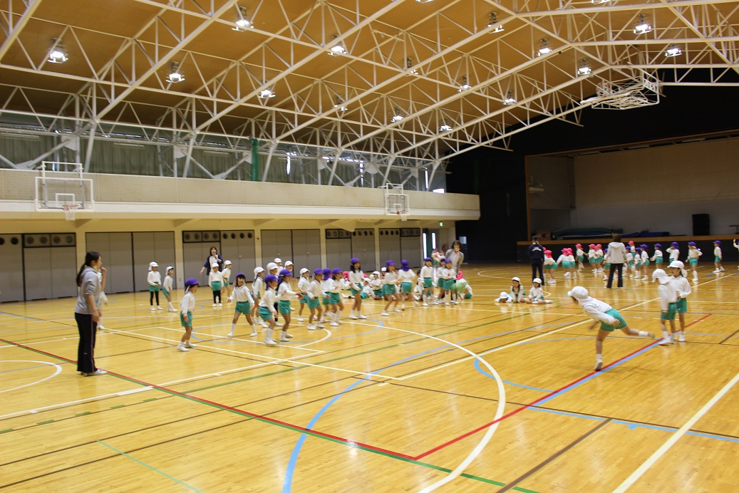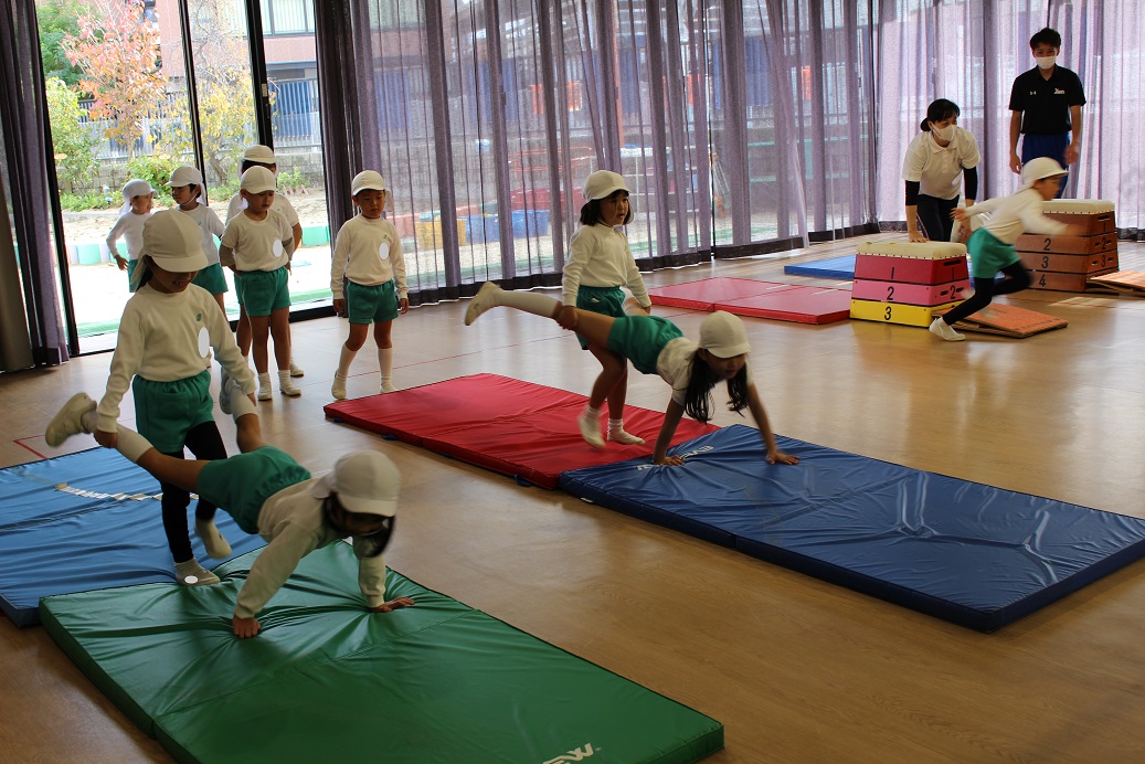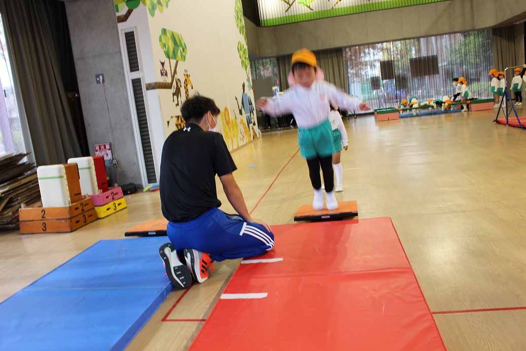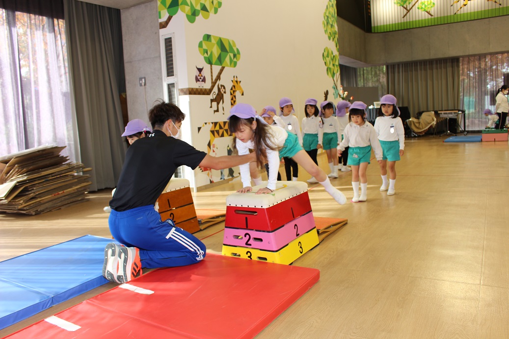 跳び箱を跳ぶ時に手で自分の身体を支えるので、クマさん歩きをしています。