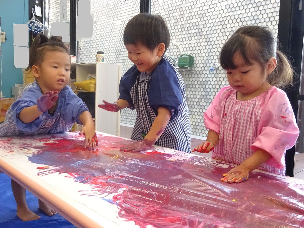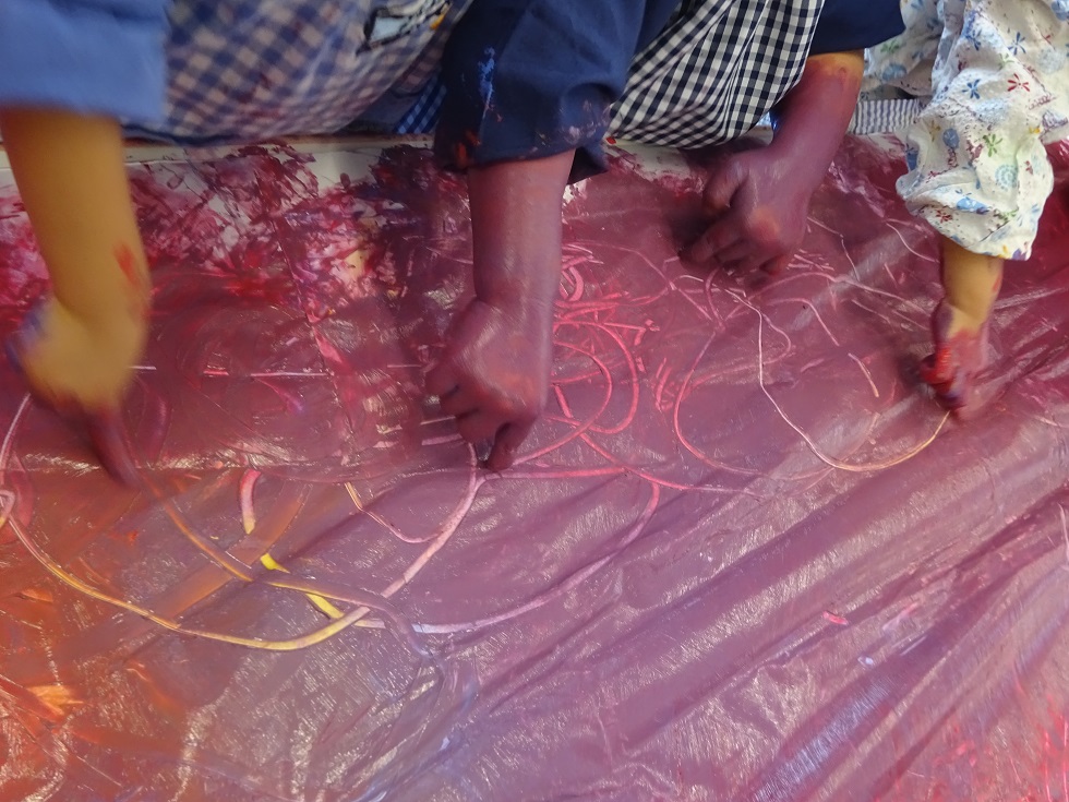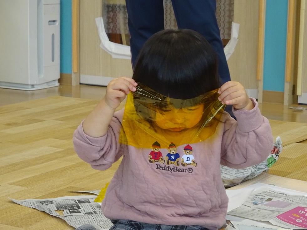 色付きセロファンを見つけたこどもたちは